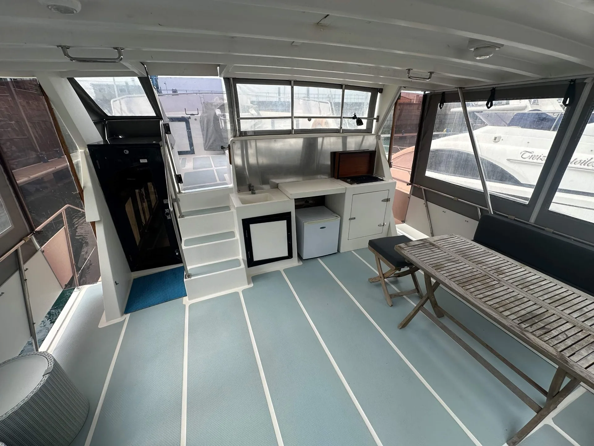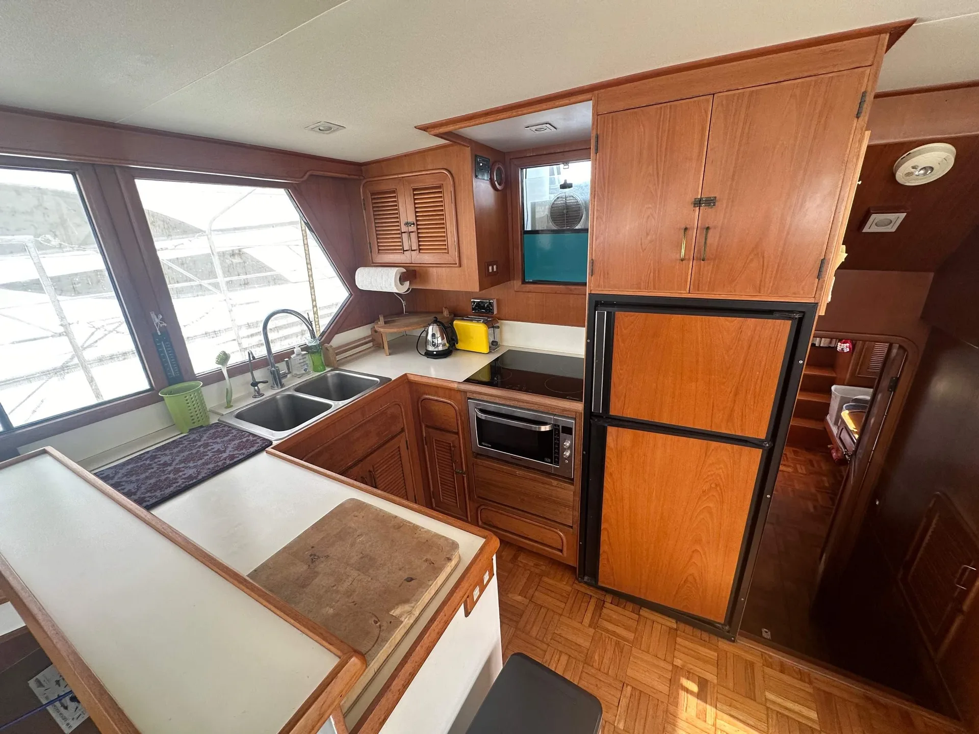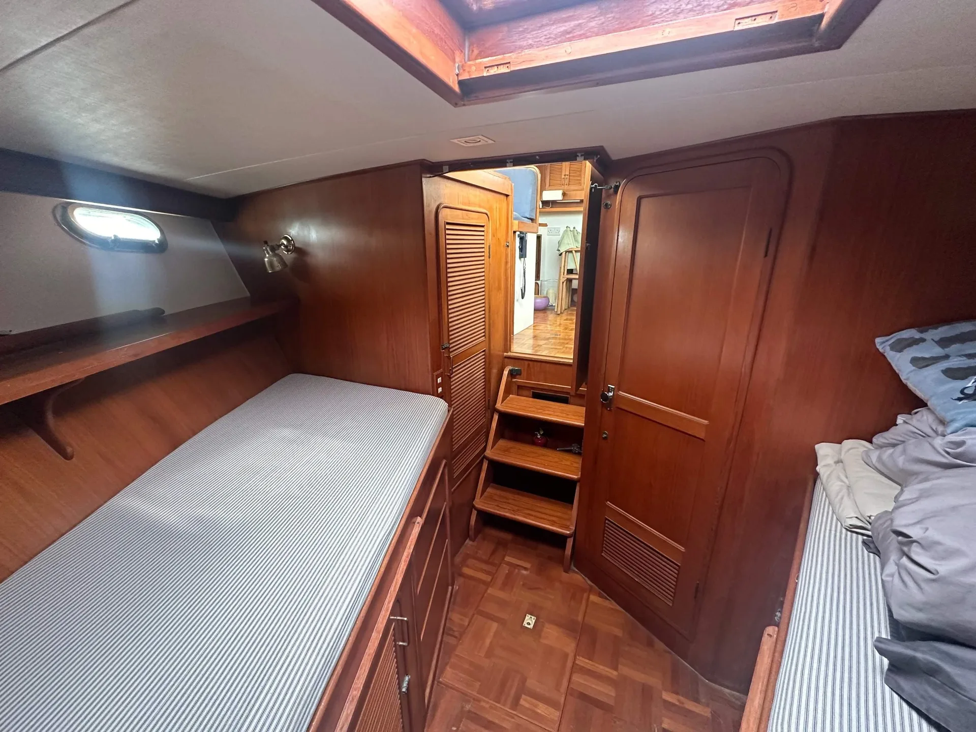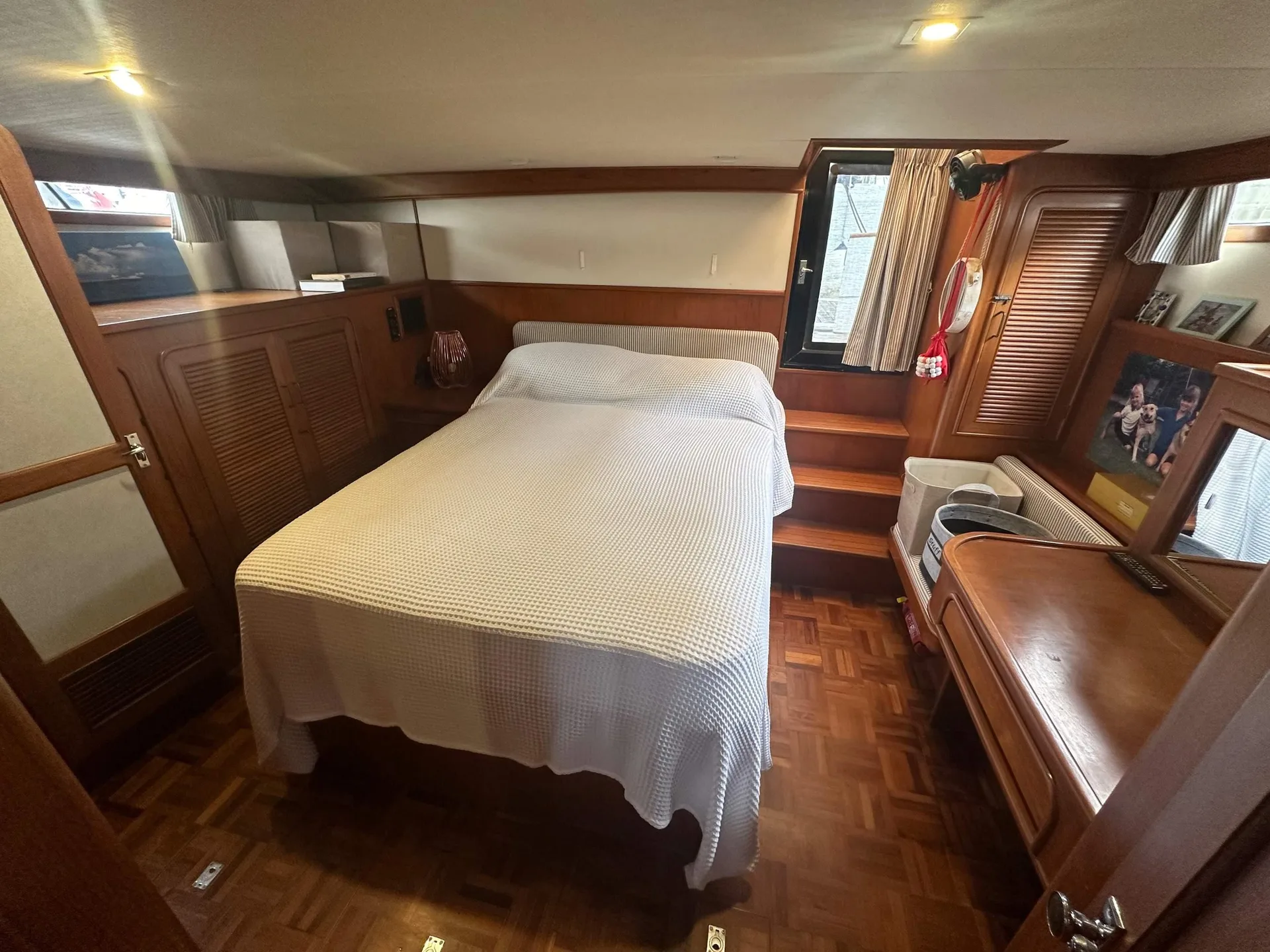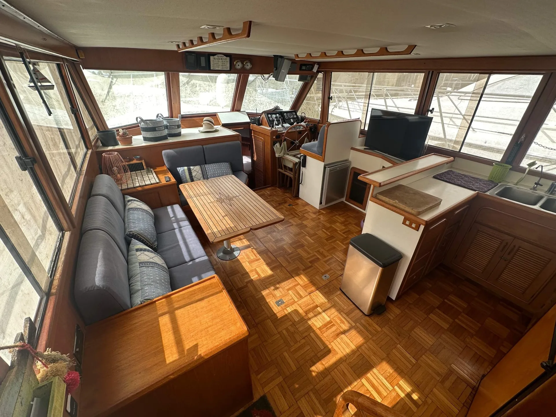 Description: A CLASSIC TRAWLER MOTOR YACHT with semi planing hull, excellent build quality and solid Burmese Teak cabinetry inside.Hull is strengthened with Kevlar in fibreglass mix & can take the ground. British Registered Part 1 in JERSEY. FULL R.C.D. APPROVAL CLASS B OFFSHORE . PORT ENGINE 1060 hours.STARBOARD ENGINE (new 2003) 320 hours. Many upgrades over the years.