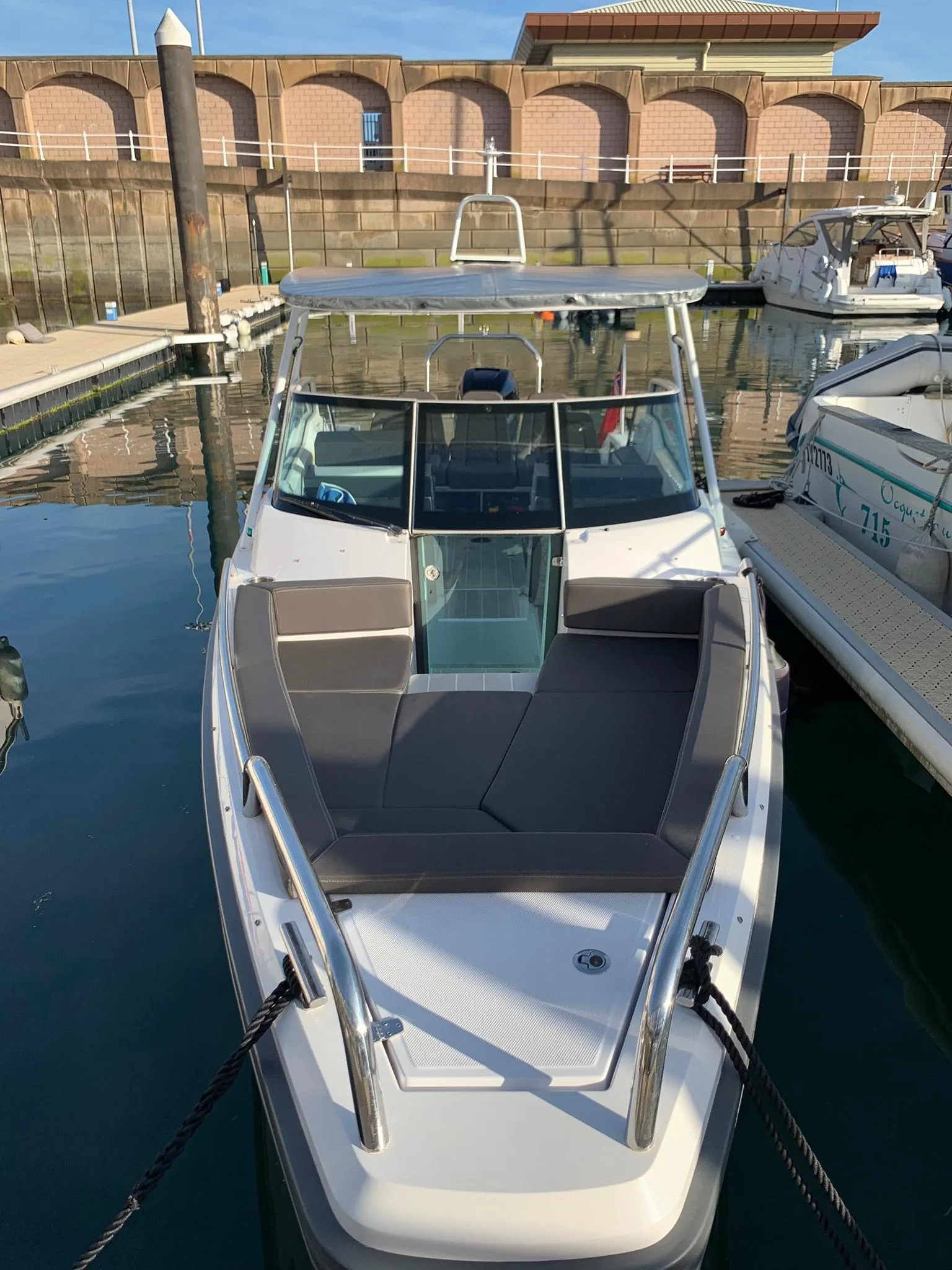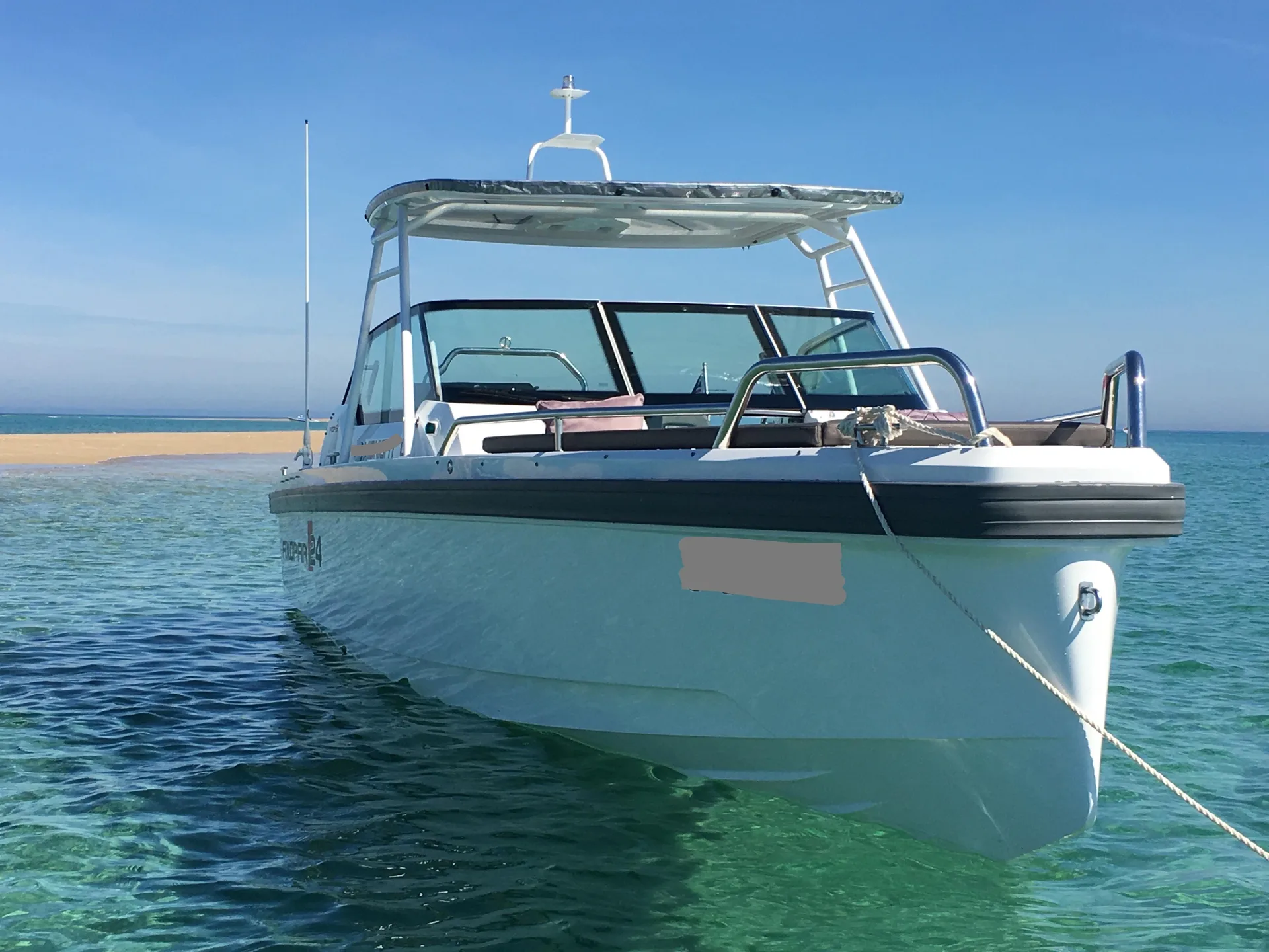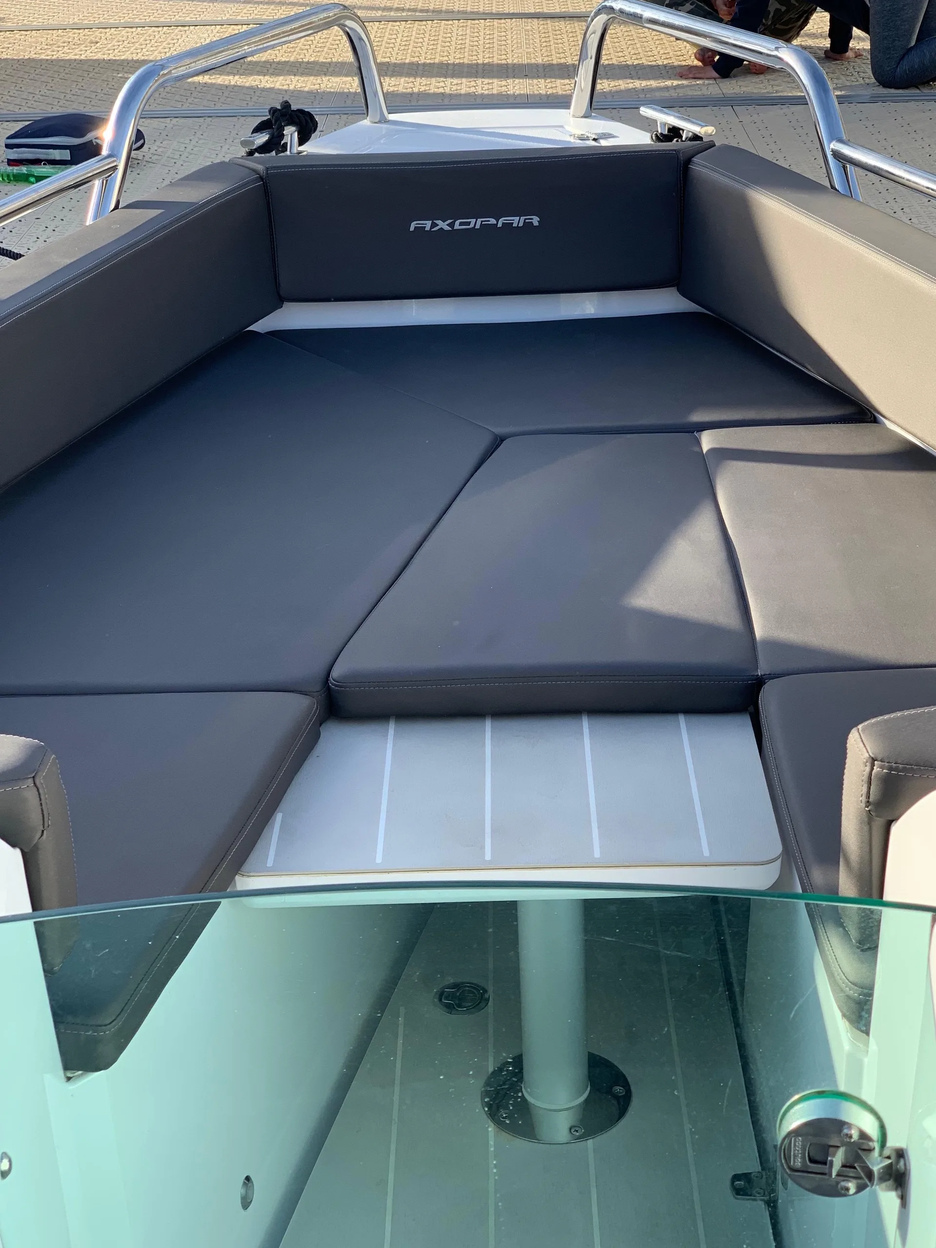 Description: Axopar customers love to be out on the water as much as possible and for the modest additional outlay required for the T-Top version, the assurance of having an extra layer of weather protection is well worth the extra cost. Well maintained with a full service history and recently serviced and anti fouled. Two owners since new and can be viewed through Quay Boats, St Helier, Jersey. The Axopar 24 incorporates a bow section that offers versatile seating or a sunbathing area, comfortable twin sofas in front of the cockpit consoles that also double as berths for two persons and social seating for 5 persons in the cockpit. Two large fender storages are installed on the side deck in the aft, and an optional refrigerator is located under the co-pilot seat. The Axopar 24 T-Top adds a functional sunroof for protection against the sun. For more information or to arrange a viewing please call call Quay.je on +441534888100