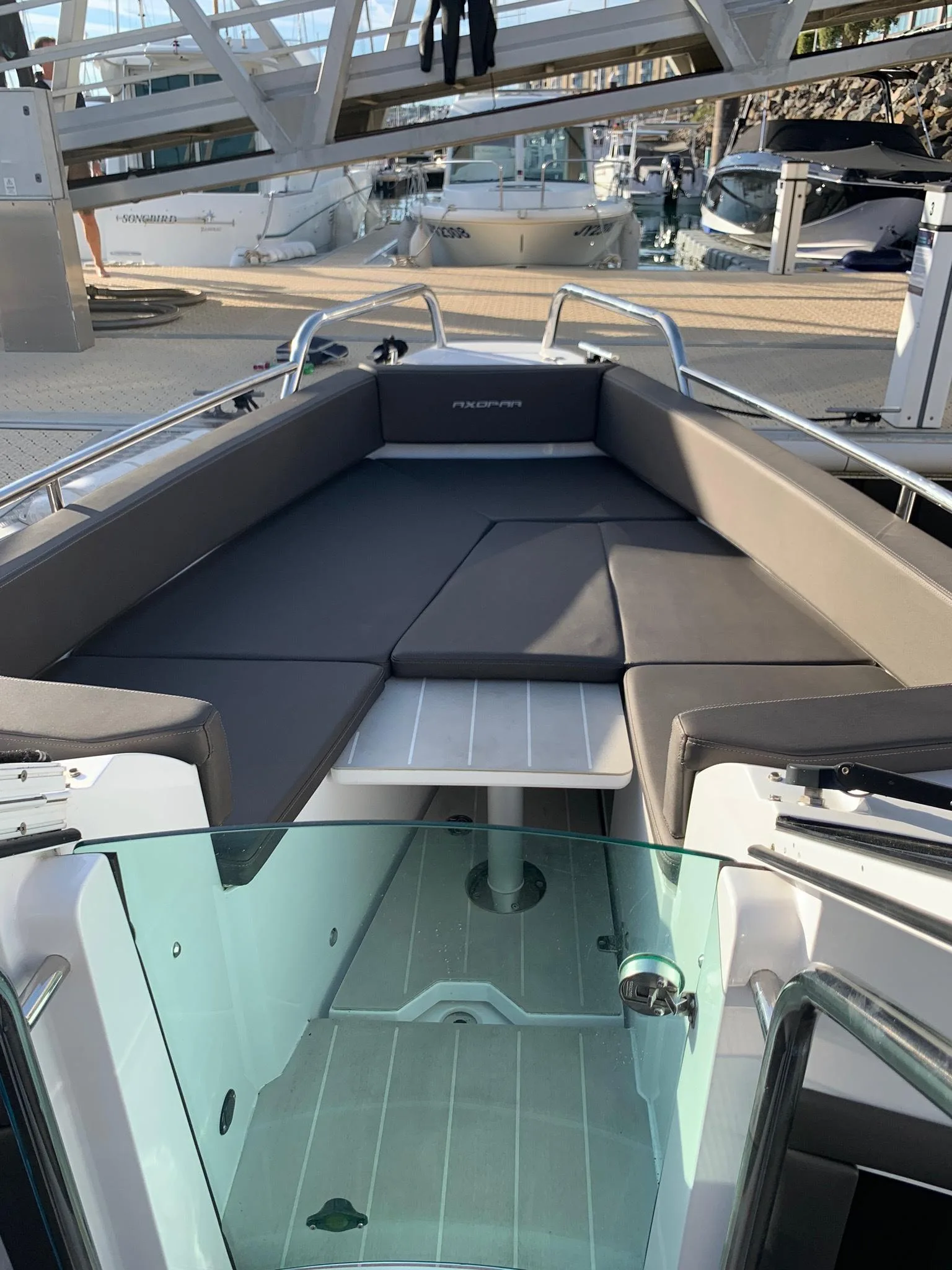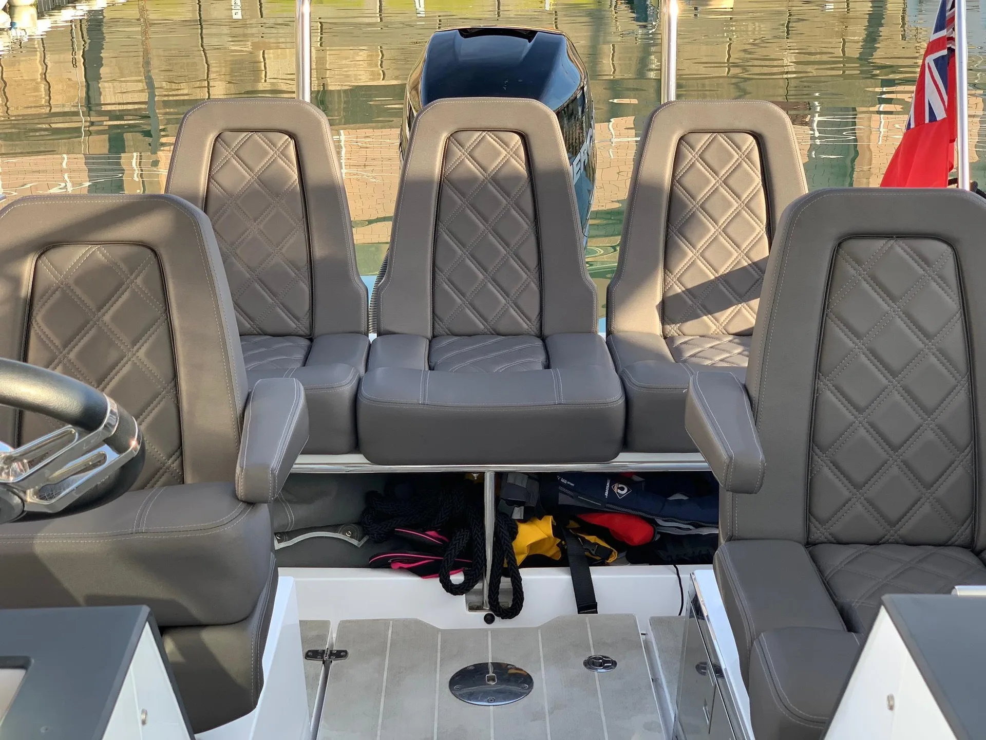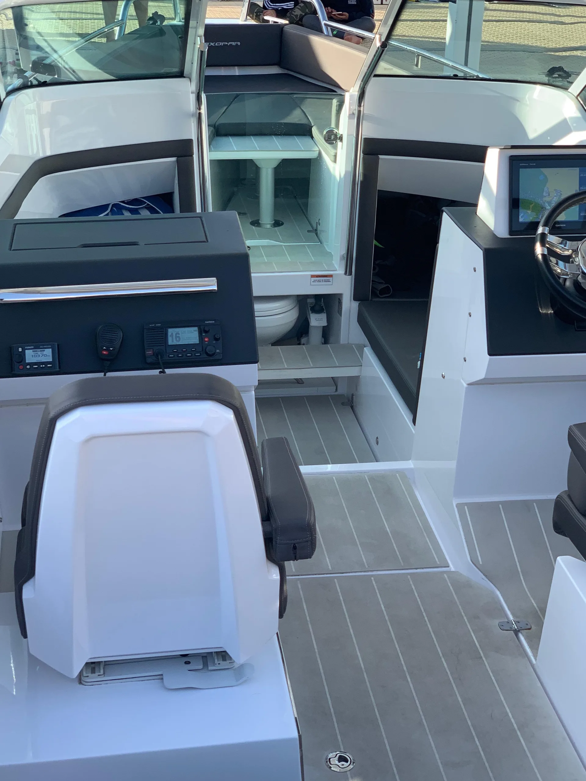 Description: Axopar customers love to be out on the water as much as possible and for the modest additional outlay required for the T-Top version, the assurance of having an extra layer of weather protection is well worth the extra cost. Well maintained with a full service history and recently serviced and anti fouled. Two owners since new and can be viewed through Quay Boats, St Helier, Jersey. The Axopar 24 incorporates a bow section that offers versatile seating or a sunbathing area, comfortable twin sofas in front of the cockpit consoles that also double as berths for two persons and social seating for 5 persons in the cockpit. Two large fender storages are installed on the side deck in the aft, and an optional refrigerator is located under the co-pilot seat. The Axopar 24 T-Top adds a functional sunroof for protection against the sun. For more information or to arrange a viewing please call call Quay.je on +441534888100