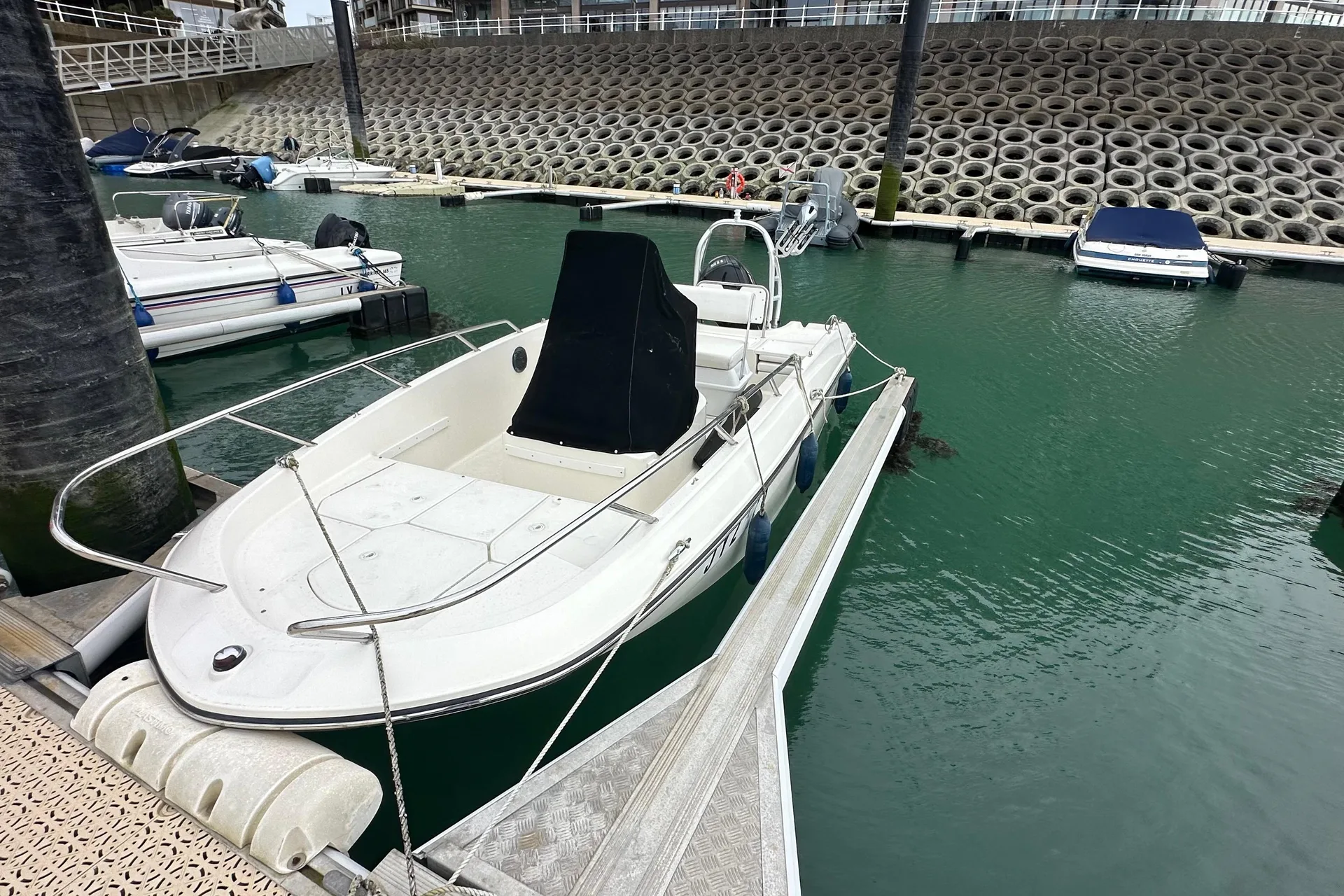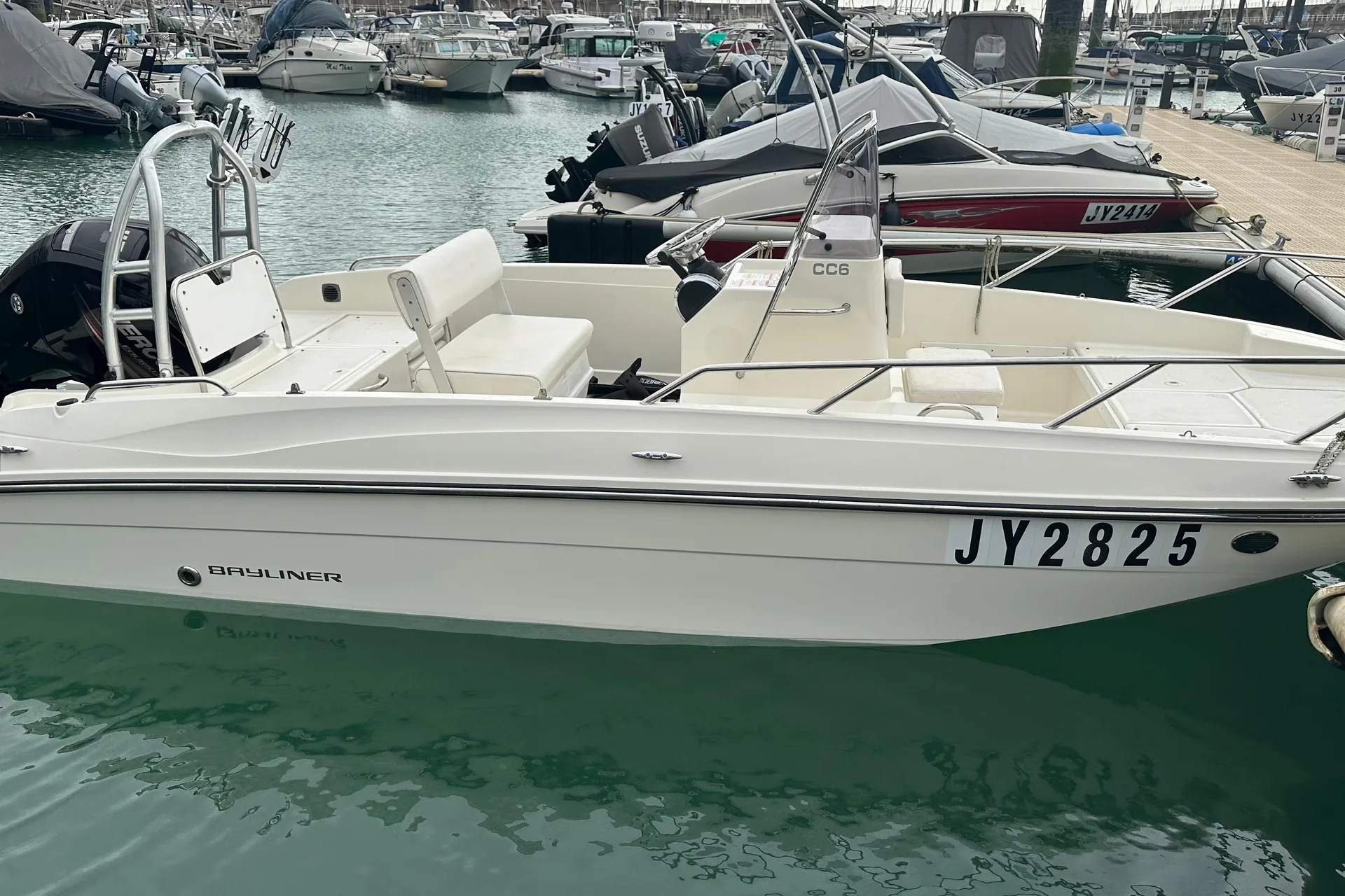 Description: Bayliner CC6 fitted with a 115 hp outboard engine and a wakeboard tower is a versatile 6-metre center-console boat designed for both relaxed cruising and watersports. Its stable hull design provides smooth handling and good balance whether moving or at rest, while the powerful 115 hp engine delivers strong acceleration and speeds approaching the high-30-knot range depending on load and conditions. The open deck layout offers seating for around six people with a central helm, bow seating, and a spacious aft area, making it ideal for family outings or fishing trips. A wakeboard tower adds functionality for watersports by elevating the tow point for smoother pulls and also provides convenient board racks while features like an integrated swim platform, storage compartments, and a self-bailing cockpit make the boat practical and easy to use for a full day on the water.