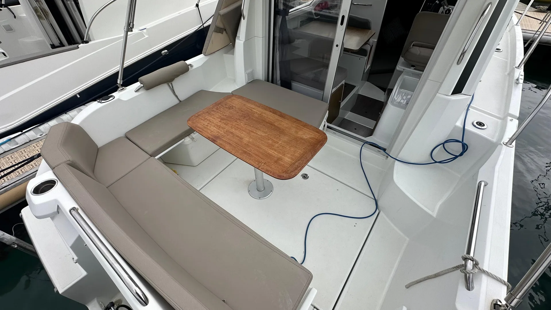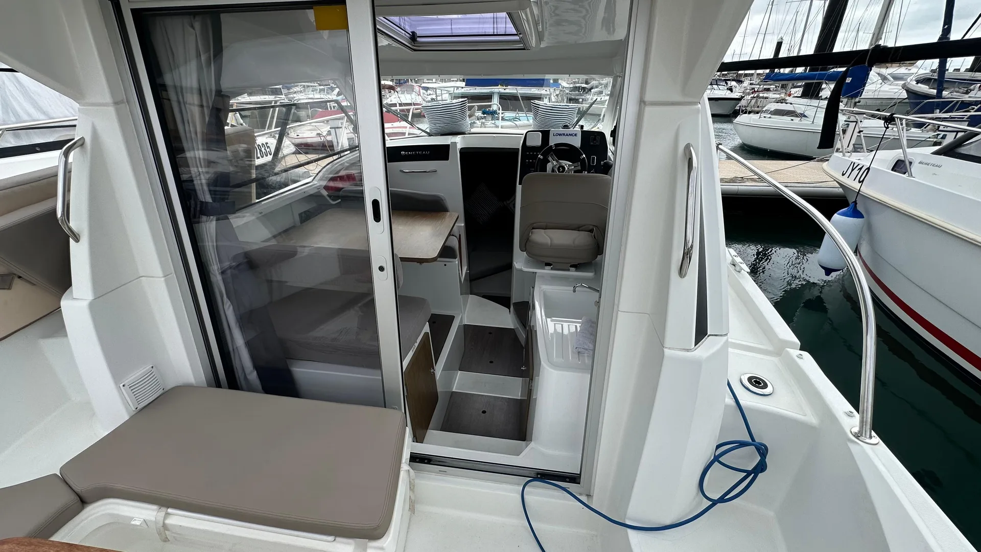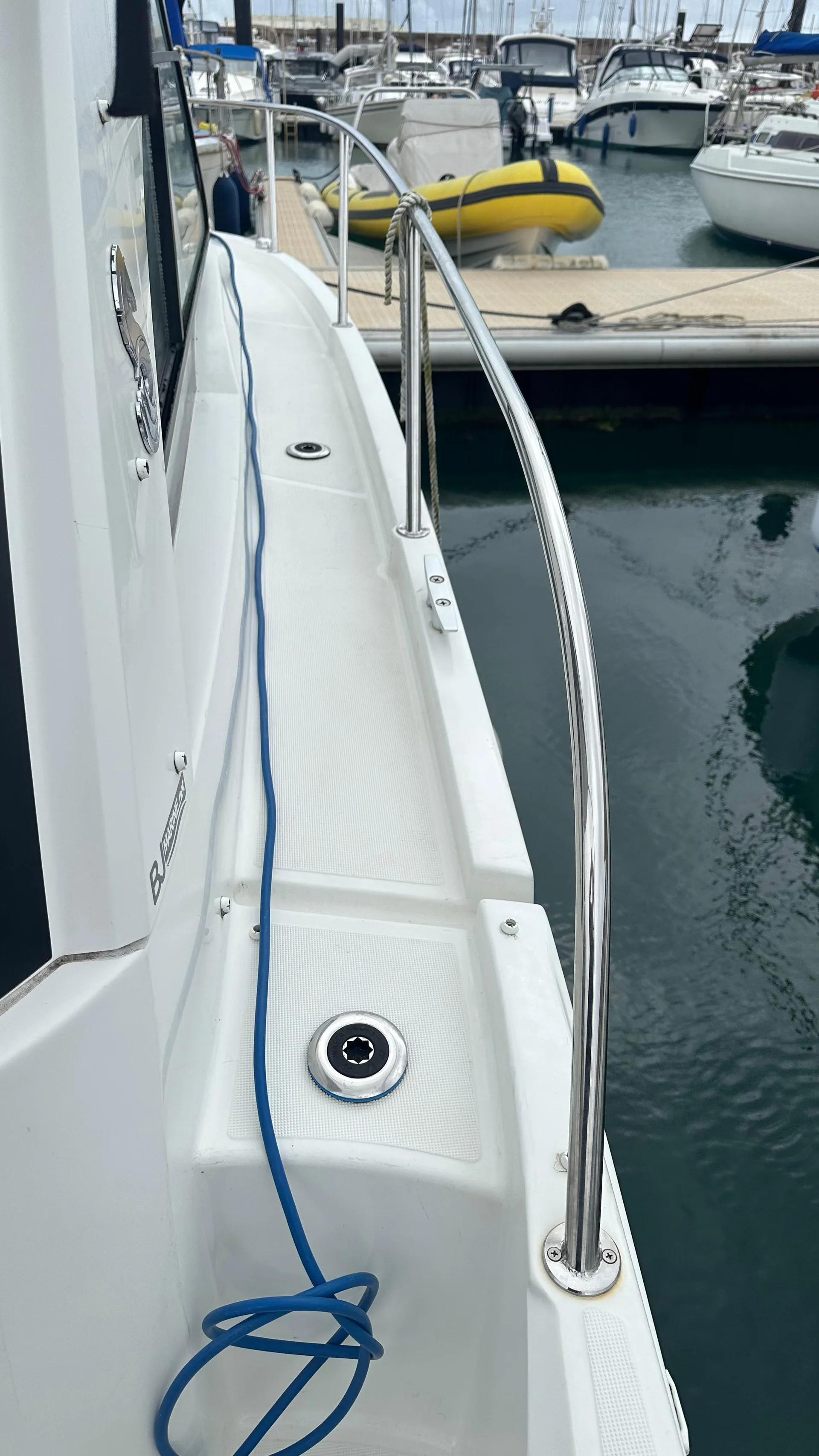 Description: Agile, powerful and very habitable, the Antares 8 oozes character. The ideal boat for exploring new shores, she is wonderful for taking a break for a few days, confident that you are completely safe. The Antares 8 has a new flared-out hull that delivers wonderful driving sensations, while boasting excellent seakeeping. The dynamic V design of the cap clearly announces the boat s stunning aesthetic design. Its clever deck plan offers three different possible cockpit seat layouts.Unique on a boat this size, the Antares 8 s habitability sets it apart from other motor cruisers in this category. The wheelhouse is accessed by a large sliding glass door, sheltering a well-equipped modular living space. There is a real double cabin below the wheelhouse at the bow of the boat, with storage and a shower en suite, so you can stay on board for a few days. With walnut stained woodwork, the boat offers a very contemporary atmosphere. Fully serviced and available now through Quay Boats, St Helier, Jersey