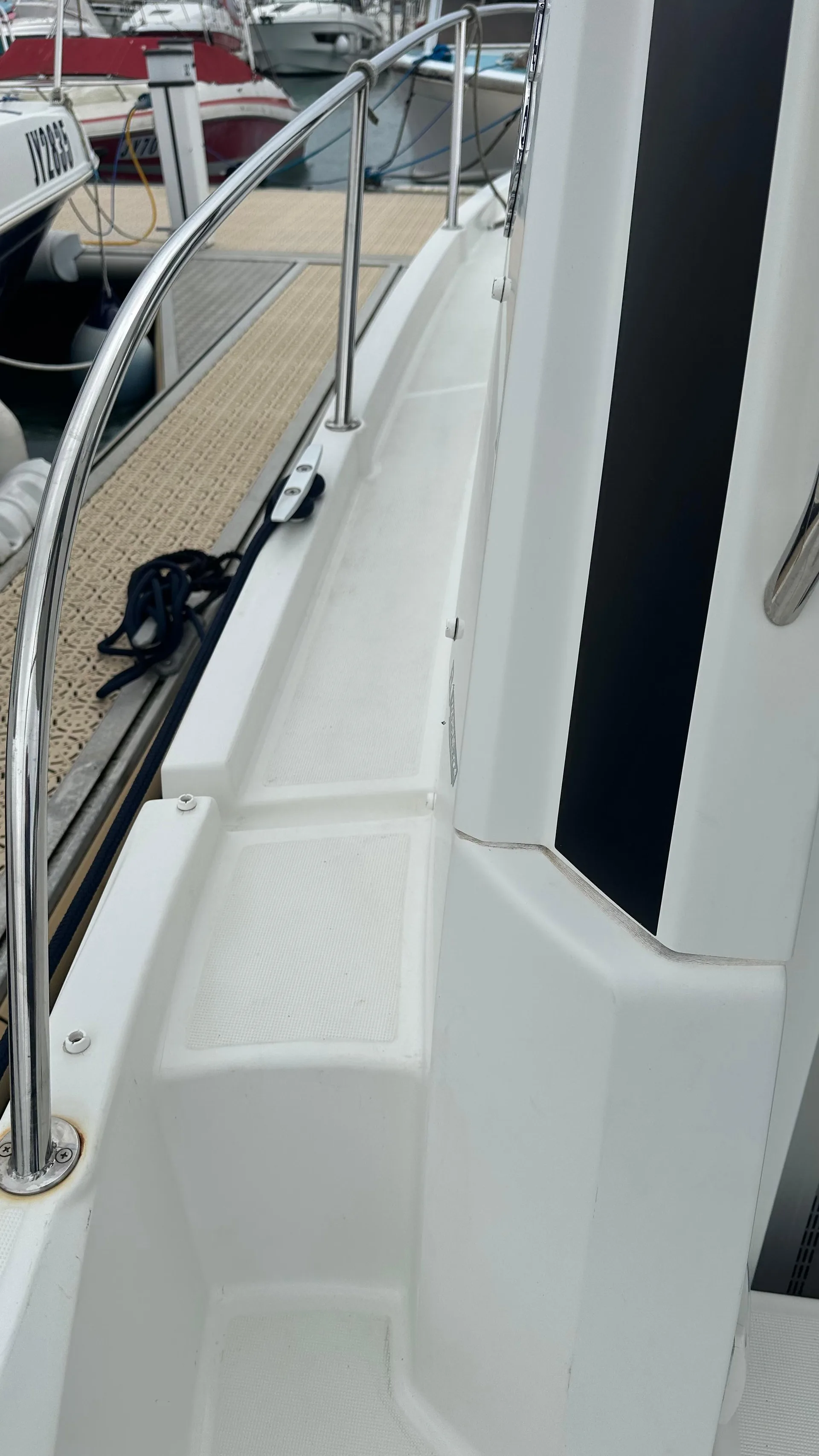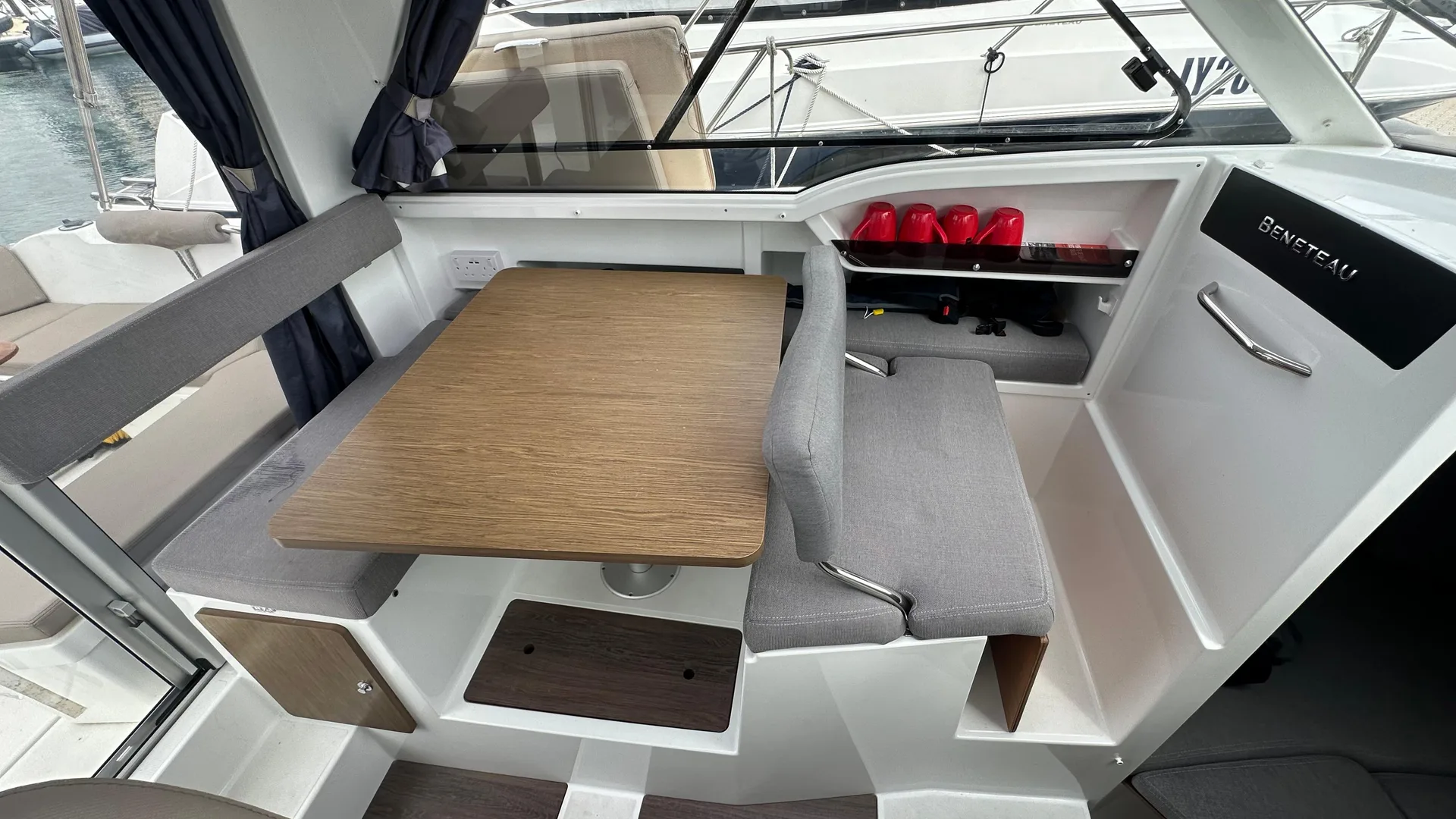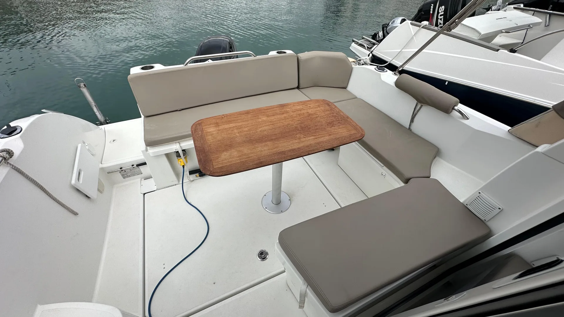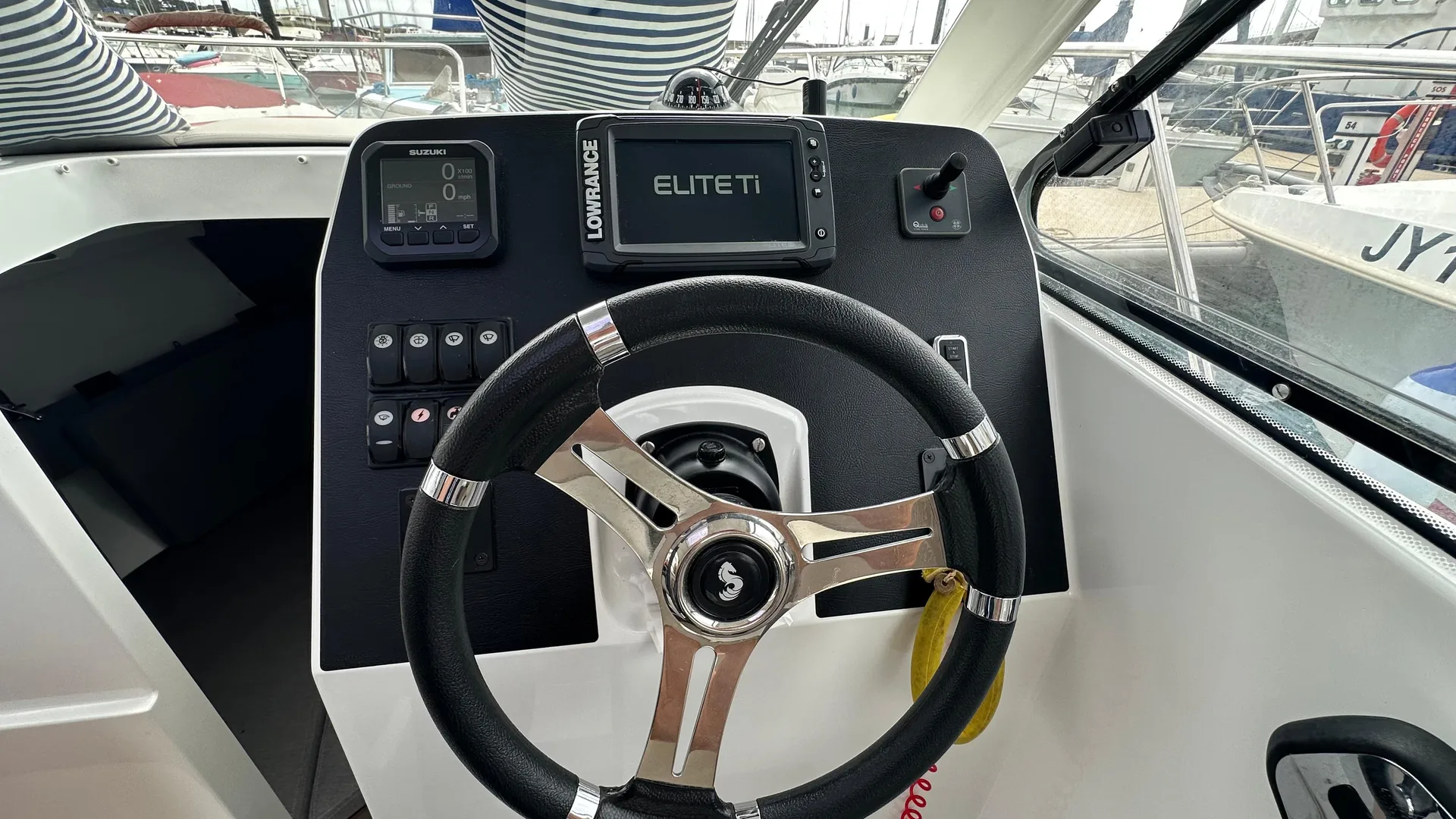 Description: Agile, powerful and very habitable, the Antares 8 oozes character. The ideal boat for exploring new shores, she is wonderful for taking a break for a few days, confident that you are completely safe. The Antares 8 has a new flared-out hull that delivers wonderful driving sensations, while boasting excellent seakeeping. The dynamic V design of the cap clearly announces the boat s stunning aesthetic design. Its clever deck plan offers three different possible cockpit seat layouts.Unique on a boat this size, the Antares 8 s habitability sets it apart from other motor cruisers in this category. The wheelhouse is accessed by a large sliding glass door, sheltering a well-equipped modular living space. There is a real double cabin below the wheelhouse at the bow of the boat, with storage and a shower en suite, so you can stay on board for a few days. With walnut stained woodwork, the boat offers a very contemporary atmosphere. Fully serviced and available now through Quay Boats, St Helier, Jersey