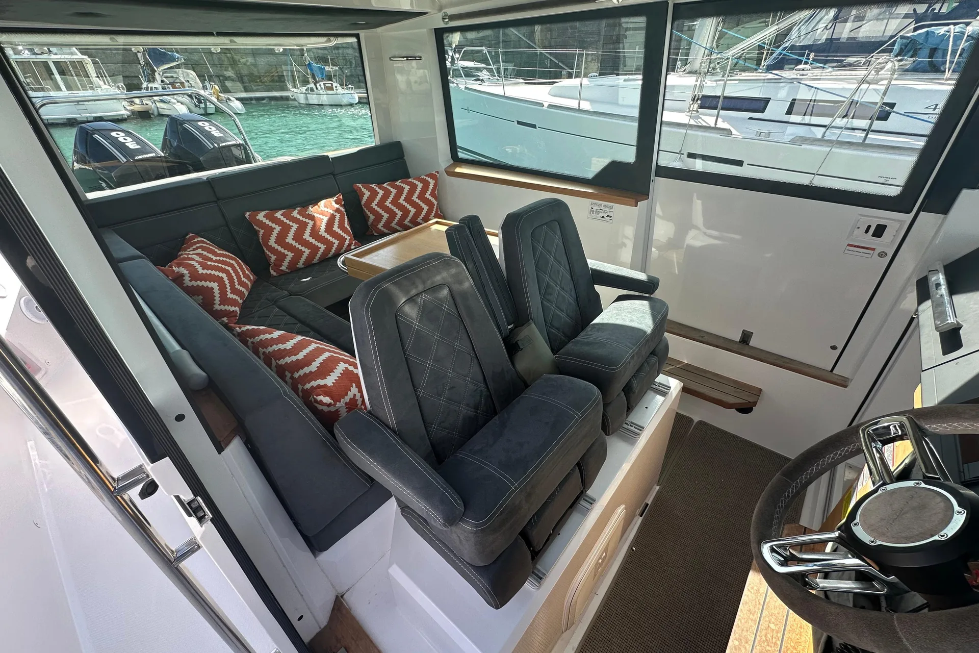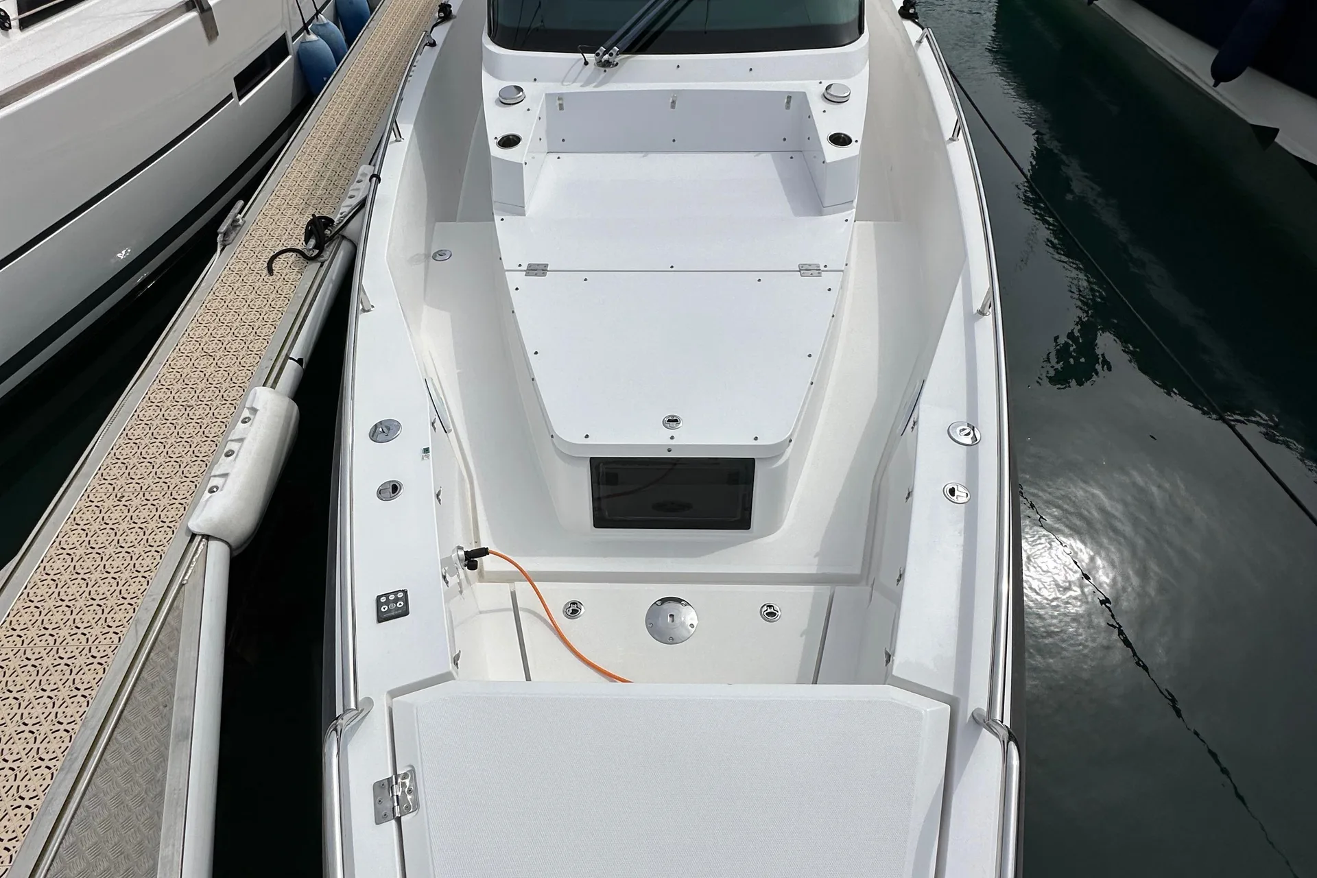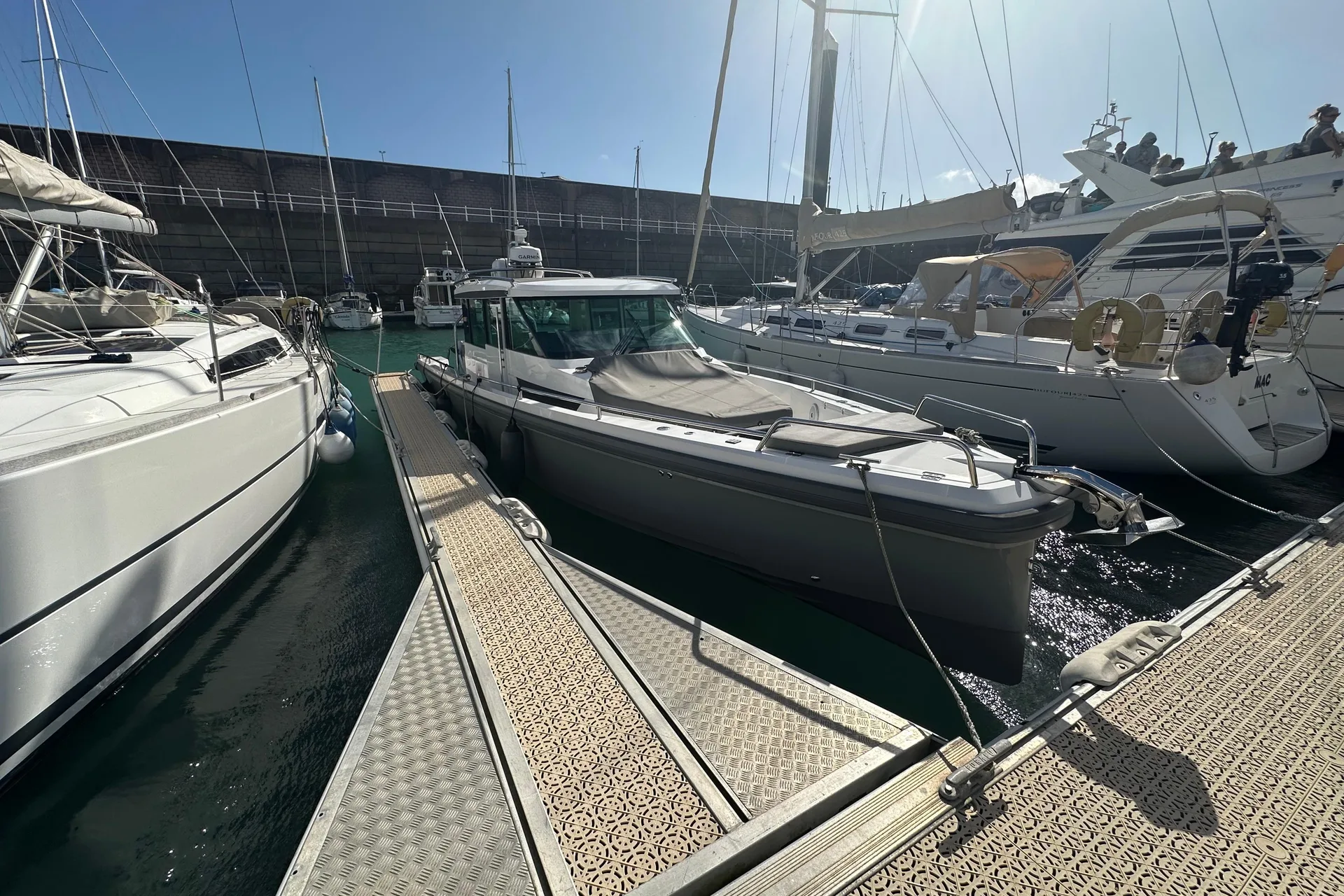 Description: The Axopar 37 SC model is a stylish, modern cabin cruiser with maximum versatility and plenty of room. It offers ample accommodation for four persons with a light and airy enclosed cabin for 2 persons and the top of the aft cabin also doubles as a second bed or sunbed. It has a spacious walk around deck with a social sunbathing area on the fore deck and easy deck access through the twin sliding doors so you can also indulge in plenty of on deck water activities. The Axopar is well known for it's hull design and handing offshore chop and big swell and now here is the ultimate Sport Cruiser .Enjoy panoramic views from the comfort of the cabin while protected from the weather, whether you are cruising the seas, enjoying the warm summer sun or entertaining guests you ll love the Axopar 37 AC.