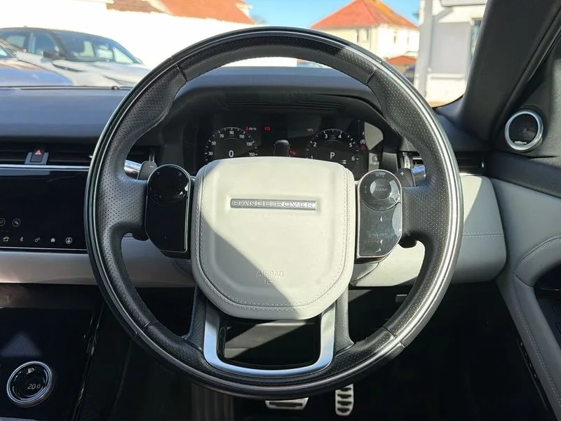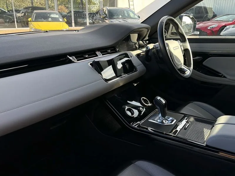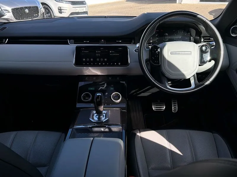 • 360 degree parking aid • Adaptive cruise control • Android Auto • Apple car play • Blind spot assist • Bluetooth connectivity • Brake pad wear indicator warning light • Clear exit monitor • Driver condition monitor • Duo touch pro • Electronic power assisted steering (EPAS) • Head up Display • InControl remote • Interactive Driver display instrument cluster • Land Rover InControl apps • Lane keep assist • Navigation pro system • Park assist - Parallel, perpendicular and parking exit • Powered tailgate/boot lid • Pro services and wifi hotspot • Push button starter • Rear traffic monitor • Rear view camera • Smart settings • Traffic sign recognition with adaptive speed limiter • Voice control system • Digital Audio Broadcast radio-DAB • Meridian sound system with 380W subwoofer and 10 speakers • Steering wheel mounted controls • Automatic headlight levelling • ClearSight interior rear view mirror • Electric windows with one touch open/close and anti trap • Evoque and R-Dynamic badge • Fixed panoramic sunroof with powered sunblind • Flush deployable exterior door handles • Front fog lights • Headlight power wash • Heated rear window with timer • Heated washer jets • Heated windscreen • Illuminated metal treadplates in loadspace and row 1 with First Edition script and non illuminated metal in row 2 • Matrix LED headlights with signature DRL, intelligent high beam assist, signature Hi-Line tail lights and animated directional indicators • Metallic paint • Narvik black contrast roof with exterior mirror caps • No badge - Removes powertrain badge and specification pack badge • Power fold, auto-dimming, heated door mirrors with memory and approach lights • Privacy glass • Rain sensing windscreen wipers • Rear fog lights • Rear wing door • Shadow atlas bonnet and tailgate script • Tailgate spoiler • Third brake light • 14 way electric heated front seats with memory, fore/aft, recline/height/tilt, 4way lumbar + manual headrest adj with rear centre armrest • 40:20:40 split folding rear seats • Black gearshift paddles • Bright metal pedals • Configurable Ambient interior lighting • Duo-tone grained leather upholstery • Ebony morzine headlining • Electrically adjustable steering column with memory • Extended leather upgrade • First Edition carpet mats • Heated steering wheel • Isofix system on outer rear seats • Overhead lighting console • Overhead stowage for sunglasses • Passive front head restraints • Perforated soft grain leather steering wheel with Atlas bezel • Rear air vents • Rear centre headrest • Sunvisors with illuminated vanity mirrors • Twin front cupholders with cover • Twin sliding front centre armrest • Two zone climate control • All terrain progress control • Efficient Driveline • Large fuel tank • Passive suspension • Terrain Response 2 Auto • Power socket pack 1 - Evoque • R-Dynamic exterior pack - Evoque • 3 rear 3 point seatbelts • Anti-lock braking system (ABS) • Customer configurable autolock • DSC - Dynamic Stability Control • Electronic brake force distribution • Electronic parking brake • Electronic traction control • Front and rear seatbelt reminder • High speed emergency braking • Hill descent control • Hill launch assist • Low traction launch • Power operated child locks • Roll stability control • Six airbags - Driver and passenger airbags/driver knee airbag/front side airbag and curtain airbags • Torque vectoring brake • Tyre pressure monitoring system • Alarm • Immobiliser • Intrusion sensor • Keyless entry • Locking wheel nuts • Gradated linear dark aluminium trim finisher with First Edition script • All season tyres • Tyre repair system