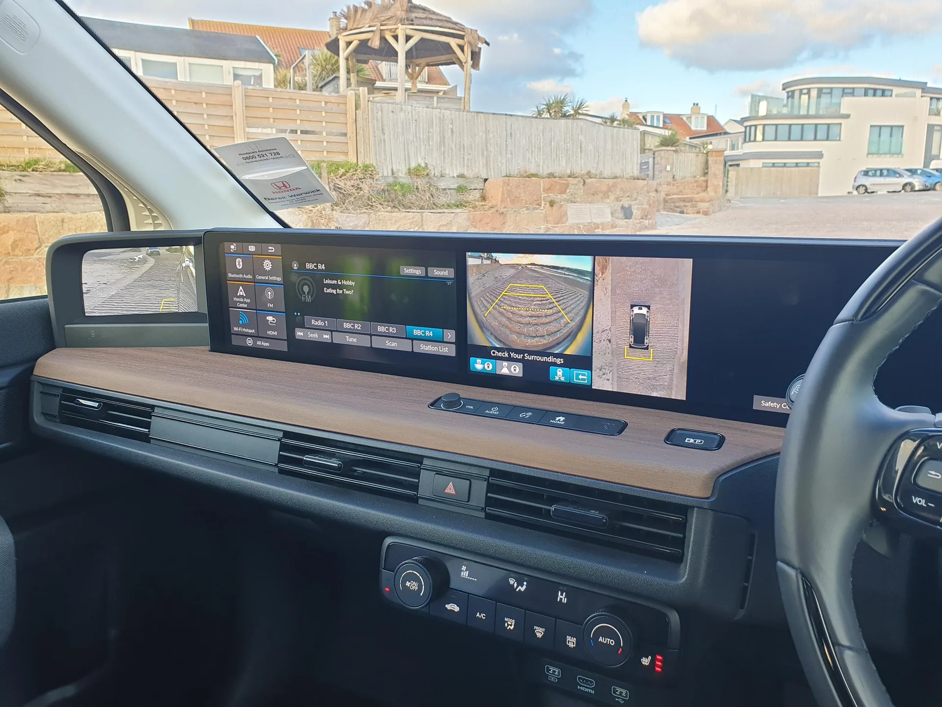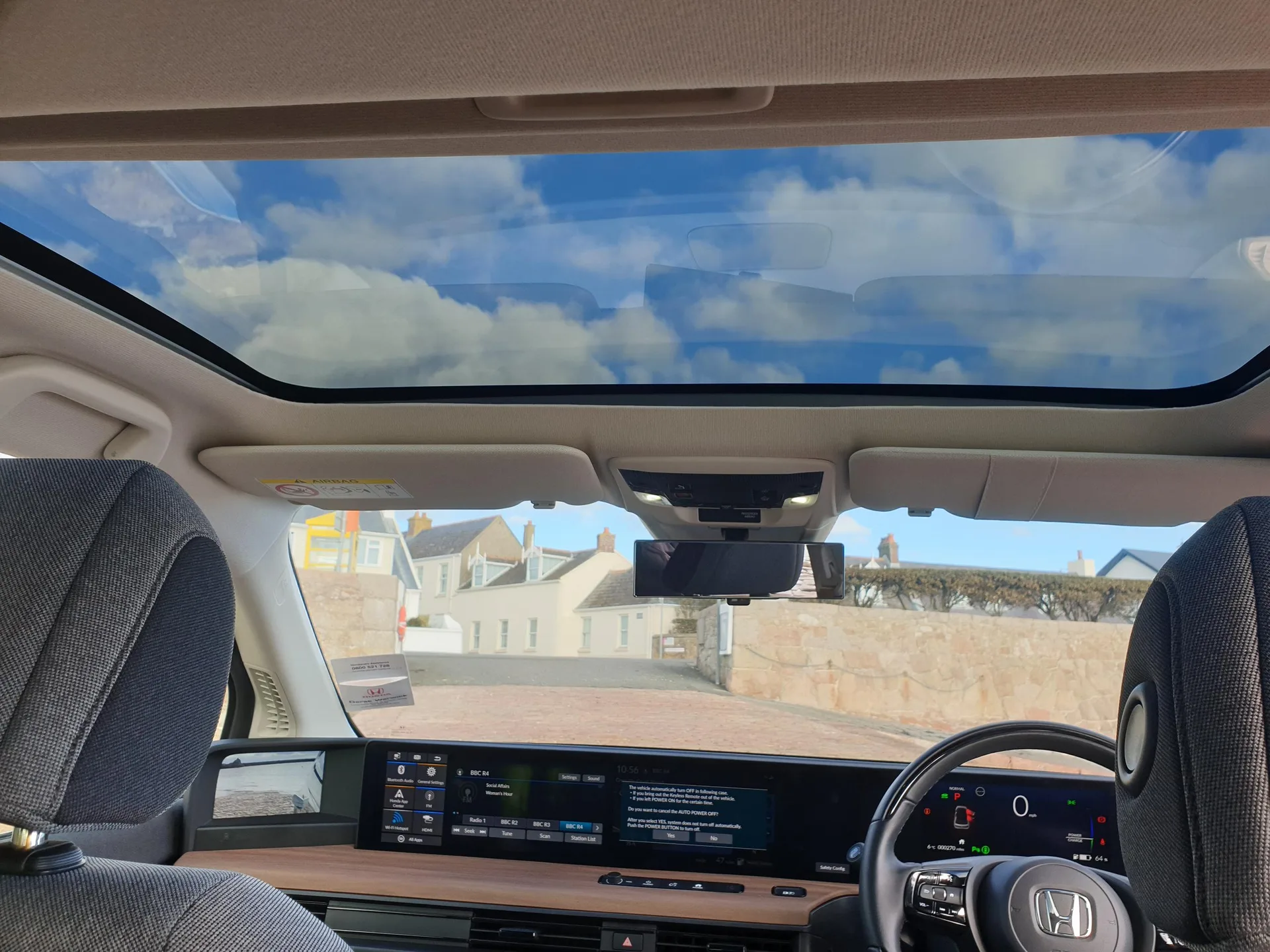 Key features: - Adaptive cruise control - BLIS (Blind Spot Information System) with dual power heated blind spot mirrors - Bluetooth hands free telephone connection - eCall emergency call system - Electric power steering wheel with variable gear ratio steering - Emergency stop signalling system - Forward collision warning - Front and rear parking sensors - Honda parking pilot - Intelligent speed limiter - Lane departure warning system - Lane keep assist - Lead car departure notification system - Low speed following - Multi-information display - Rear view camera - Road departure mitigation - Traffic sign recognition - 2x USB sockets in front - 2x USB sockets in rear - 376w Premium power audio system with 8 speakers - DAB audio - HDMI socket - Honda dual screen (2x12.3") - Steering wheel mounted audio controls - Subwoofer - 3rd brake light - Automatic coming/leaving home lighting function - Automatic LED headlights - Automatic rain sensing wipers - Body colour door handles - Door mirror with centre camera mirror system - Door mirror with multi view camera mirror system - Door mirror with side camera mirror system - Electric front and rear windows - Front windscreen de-icer - Glass antenna - Heated windshield - High beam assist - HONDA e emblem - LED daytime running lights - LED front fog lights - LED rear lights - Panorama glass roof - Privacy glass - Rear side wing doors - Rear spoiler - Rear wiper - 2 seat bench in 2nd row - Ambient light in roof - Black interior door handles - Cargo hooks - Climate control air conditioning - Fabric interior panels - Footwell ambient interior light for driver and passenger - Front accessory power socket - Front map lights - Front seat manual lumbar support for driver - Heated front seats - Heated steering wheel - Height adjustable front seats - Illuminated sunvisor with vanity mirror - Isofix points - Leather steering wheel - Meter illumination light - Rear air vents - Rear headrests - Rear reading lights - Single front passenger seat - Tilt/telescopic adjustable steering wheel - Tonneau cover - Trunk light - Under trunk charging cable storage - ABS+EBD+Brake assist - Airbags - driver and front passenger - Anti-whiplash front headrests - Collision mitigation braking system - Collision mitigation throttle control - Deflation detection system - Driver SRS airbag - Electronic parking brake - Front and rear seat belt with emergency locking retractor - Front side airbags - Hill start assist - Low speed safety system - Passenger SRS airbag cut-off device - Rear door child safety locks - Regenerative braking system - Side curtain airbags - Honda super locks - Immobiliser - Remote central locking with 2 remote folding keys - Security alarm - Selectable door unlock - Smart entry + Smart start - Ultrasonic sensor and tilt sensor - Window key fob - Tyre repair kit