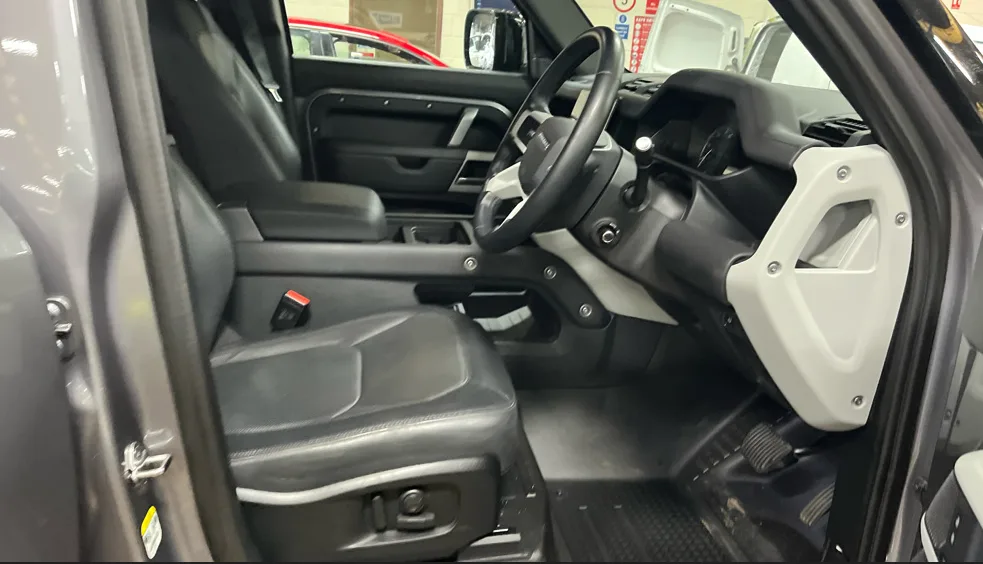 Experience the best of a Land Rover Defender 110 with this exceptional PHEV model, boasting up to 30 miles of pure electric range and a powerful engine. Finished in Eiger Grey metallic, this SUV offers all-terrain capability and comfort. With features like air suspension and a heated steering wheel, it's perfect for family activities or daily use.