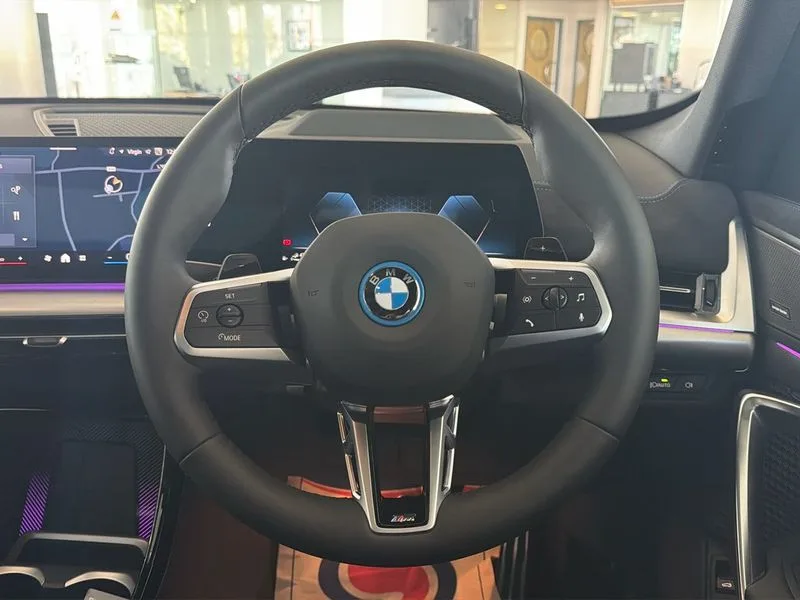 • Attentiveness assist • Automatic start/stop function • BMW Operating system 9 with BMW Maps, real-time traffic information, in-car experiences, remote services and smartphone integration • BMW Teleservices • Brake pad wear indicator • Condition based service • Connected eDrive Services • Drive off assistant • Electrically opening/closing tailgate with opening/closing with remote control and contactless opening and closing • Flat air vents on instrument panel in high gloss black, adjustable slats with elements in pearl chrome • iDrive controller • Language version English • My Modes • Personal Profile - automatic lock when driving away selectable • Servotronic PAS • Tyre puncture warning system • Widescreen display • BMW Personal eSim • DAB Digital radio • Badge on engine compartment lid and tailgate • Body colour door mirrors • Dynamic brake lights • Electric adjustable heated door mirrors • Electric windows - front and rear, with open/close fingertip control, anti-trap facility and comfort closing • Exterior mirror including electric fold in function • Folding door handles integrated flush with surface • Follow me home headlights • Front and rear bumper panel with M specific design, in body colour with inserts in black high gloss • Front door exit lights • Heated rear window • High gloss shadowline • Invisible exhaust tailpipe • Key with M identification • LED 3rd brake light integrated in rear roof spoiler • LED daytime running lights • LED number plate light • M Extended high gloss shadowline exterior trim • M identification on the sides • M lights shadowline • M roof rails high gloss shadow line • M specific radiator grille in satinated aluminium • M spoiler in black high gloss • Matt black roof strips • Model inscription on right tailgate • Rain sensor including auto headlights activation • Rear side wing doors • Rear wiper • Sill cover in body colour • Trailer stabilisation logic • Window washer nozzle for rear view camera • Windscreen wipers front with heated washer nozzles • 12V - Power sockets with front centre console and luggage compartment • 2 bag hooks in luggage compartment • 2 cup holders in front • 2 front reading lights • 2 rear centre reading lights • 2 x USB Type C ports for charging in front centre console + 1 x USB Type C ports for charging in rear centre console • 3 rear headrests • 3 seat bench in 2nd row • 3 upper retaining strap clips integrated into rear panels of seat backrests • 4 grab handles • 40:20:40 split folding rear seats • Ambient interior lighting • Anthracite headlining • Anthracite Velour front and rear floormats • Bottle trays in all doors • Child seat ISOFIX attachment for two outer rear seats and front passenger seat with anchorage points • Clothes hook rear • Driver and front passenger heated seats • Dual zone automatic air conditioning • Footrest and pedals in black plastic • Front and rear door pockets • Front and rear footwell lighting • Front armrest with integrated control panel • Front centre console storage compartment • Front centre console trim in black high-gloss • Front/rear adjustable head restraints • Glove compartment • Interior door handle recess light on all doors • Light on right in luggage compartment • M sport leather steering wheel • Manual steering column height and depth adjustment • Middle centre console storage compartment • One piece parcel shelf opens together with tailgate and removable • Rear armrest in door trim panel • Single front passenger seat • Sport leather multifunction steering wheel with thumbrests and operation of instrument display, audio, telephone and driver assistance • Storage compartment lighting in centre console and storage tray in centre stack • Storage compartment net in left side trim panel • Storage compartment with folding cover under centre console armrest cushion • Storage tray in right side trim panel • Sun visors with illuminated vanity mirrors • Tilt adjustment incl. cargo function of 2nd row of seats • Vanity mirror lights • 11 kW AC charging power • eDrive exterior sound • EU6 emissions management • Fast charging cable professional mode 3 for public charging • Gear selector switch with toggle operation • M Adaptive suspension • Performance Control • Petrol Particulate Filter • Steptronic transmission with double clutch and gear shift paddles • xDrive intelligent four wheel drive system • ABS/EBD • Automatic hold function • Automatic Stability Control (ASC) • BMW emergency call • Braking readiness • Cornering brake control (CBC) • Crash Sensor - activates hazard/interior lighting + unlocks doors • Driver/Front Passenger airbags • Driver/front passenger side airbags • Dry braking • Dynamic brake control • Dynamic stability control + (DSC+) • Electromechanical parking brake • Energy recovery system • First aid kit • Front and rear brake discs • Front and rear head airbags • Front passenger airbag deactivation • Integrated brake system • M Seatbelts • PC iBrake PostCrash approach control warning with light braking function • Rear door child safety locks • Three point seat belts in all seats • Tyre pressure monitor • Warning triangle • Alarm system with tilt sensor, monitoring doors, bonnet interior and tailgate • Closing system with central locking • Locking wheel bolts • Luxury instrument panel • Tyre repair kit plus