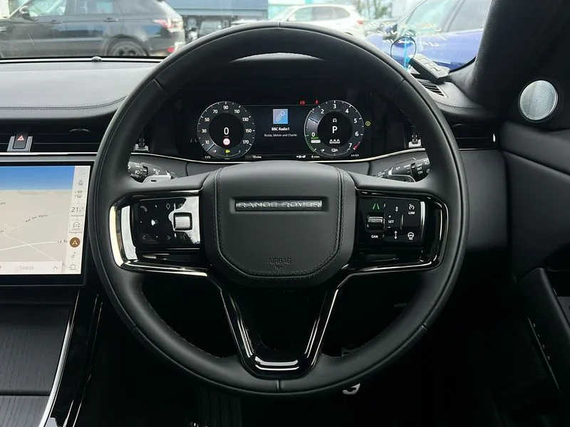 • 11.4" touch screen • 3D 360 degree surround camera with wade sensing • Adaptive cruise control • Android Auto • Apple car play • Blind spot assist • Bluetooth connectivity • Brake pad wear indicator warning light • Driver condition monitor • eCall emergency system • Eco mode • Electronic power assisted steering (EPAS) • Front and rear parking sensors with auto brake • InControl remote • Interactive driver display • Land Rover InControl apps • Lane keep assist • Pivi pro connected includes diamond pivi variant, smart settings, connected navigation pro, nuance speech licence • Powered tailgate/boot lid • Rear collision monitor • Rear traffic monitor • Tailgate • Traffic sign recognition with adaptive speed limiter • Voice control system • Wireless device charging • Digital Audio Broadcast radio-DAB • Steering wheel mounted controls • Acoustic laminated windscreen • Auto headlights • Auto high beam assist • Automatic headlight levelling • Electric windows with one touch open/close and anti trap • Flush deployable exterior door handles • Front and rear recovery eyes • Heated rear window with timer • Heated washer jets • Heated windscreen • LED 3rd brake light • LED headlights with signature DRL and LED tail Lights • Power fold, auto-dimming, heated door mirrors with approach lights and auto dimming driver side • Rain sensing windscreen wipers • Rear animated directional indicators • Rear fog lights • Rear side wing doors • Rear wiper • Tailgate spoiler • Winter wiper park position • 12 way driver memory and 10 way passenger electric front seats with 2 way manual headrest + 4 way lumbar support • 40:20:40 split folding rear seats with centre headrest and armrest • Bright metal pedals • Carpet mats • Chrome tread plates with range rover branding Includes stainless steel loadspace scuff plate with etched graphic • Customer configurable single point entry • Front and rear cupholders • Heated front seats • Heated steering wheel • Isofix system on outer rear seats • Manually adjustable steering column • Overhead lighting console • Overhead stowage for sunglasses • Passive front head restraints • Rear air vents • Rear head restraints • Satin chrome gearshift paddles • SE Grained leather upholstery • Single passenger seat • Standard steering wheel with Moonlight Bezel • Sunvisors with illuminated vanity mirrors • Twin sliding front centre armrest • All terrain progress control • Electric rear axle drive • Large fuel tank • Passive suspension • Public charging cable • Terrain Response 2 • Power socket pack 2 - Evoque • 3 rear 3 point seatbelts • Anti-lock braking system (ABS) • Brake hold function • Customer configurable autolock • DSC - Dynamic Stability Control • Electronic brake force distribution • Electronic parking brake • Electronic traction control • Emergency braking • Front and rear seatbelt reminder • Hill descent control • Hill launch assist • Low traction launch • Occupant protection assist • Passenger seat occupant detector • Power operated child locks • Roll stability control • Six airbags - Driver and passenger airbags/driver knee airbag/front side airbag and curtain airbags • Torque vectoring brake • Tyre pressure monitoring system • Alarm • Immobiliser • Intrusion sensor • Keyless entry • Locking wheel nuts • All season tyres