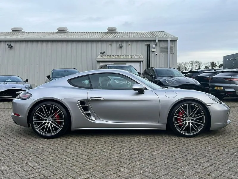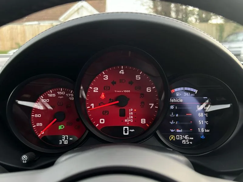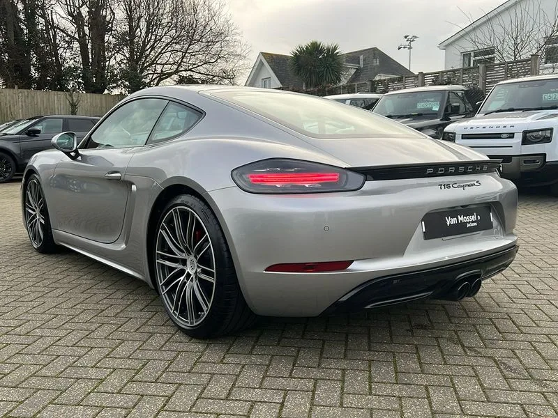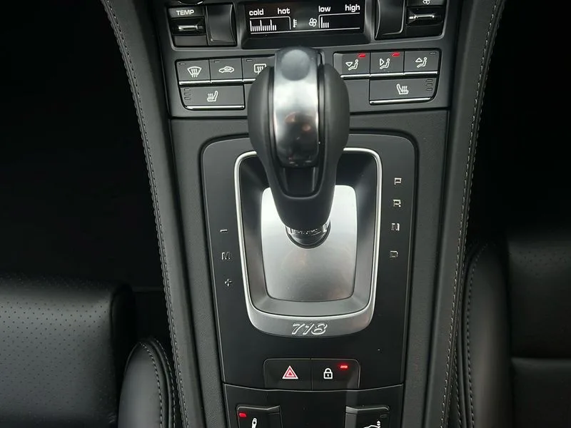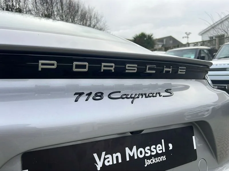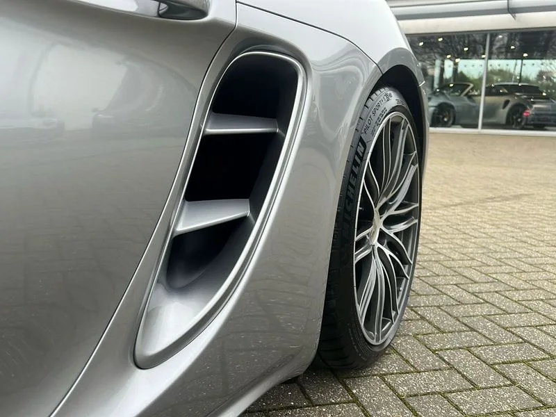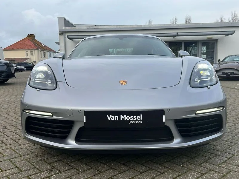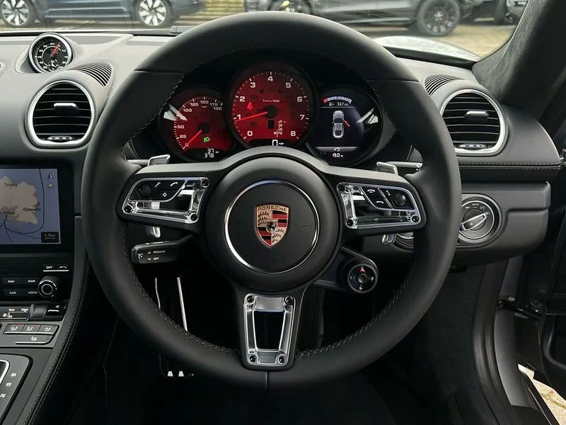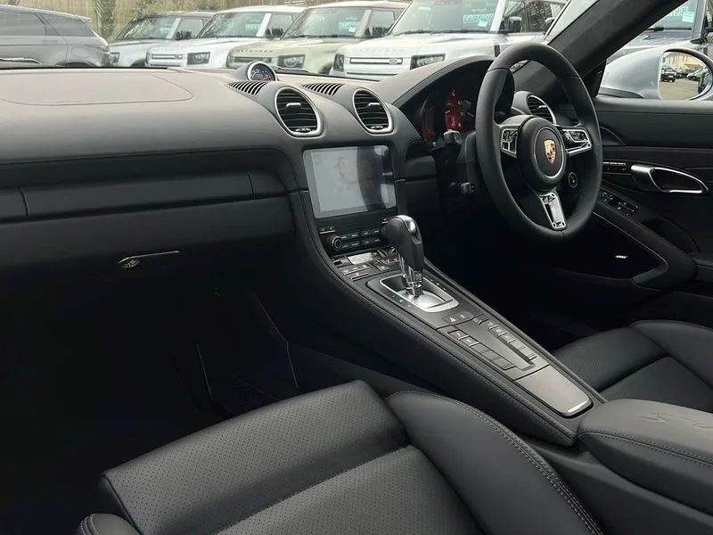 • Auto start and stop system • Digital displays for vehicle speed, chosen gear, odometer, trip odometer and clock • eCall emergency call system • Instrument cluster with central rev counter and high-resolution 4.6 inch colour display • Porsche Communication Management (PCM) including online navigation module, mobile phone preparation, audio interfaces and voice control system • DAB Digital radio • Integrated 4G/LTE compatible SIM including data for the Porsche Connect Services • Integrated compatible SIM including Porsche Connect Services • Navigation incl porsche + Apple Carplay, connect module, wireless internet access, carfinder, remote vehicle status, remote service and vehicle track • Wifi and music streaming • Auto deploying rear wing • Automatic headlight activation including welcome home lighting • Automatically extending rear boot spoiler • Body colour bumpers • Body colour door handles • Electrically adjustable heated exterior mirrors on door waist rails, aspherical on driver's side • Green tinted heat insulating glass • Grey top tinted windscreen • Heated rear windscreen • Intelligent lightweight body in Aluminium/Steel composite construction • LED 3rd brake light • Power windows with one touch operation and door seal protection • Rain sensor • Rear boot • Separate auxiliary lights in the front end with LED indicators and position lights • Twin tract sports exhaust system with central twin tailpipe in stainless steel • Wide opening rear hatch with heated screen • Windscreen washer system with two wiper speeds and washer jets • 12V sockets in passenger footwell and centre console storage compartment • 718 logo on gear lever • Additional smooth finish leather with door panel armrest and centre console main storage compartment • Adjustable fan with air recirculation and defroster functions • Ascending centre console with uncovered storage compartment and closed storage compartment • Clothes hooks on front seat backrests • Footwell illumination • Front and rear luggage compartments • Front headrests • Heated seats • LED reading lights, orientation, ignition lock, additionally luggage compartment and glove compartment lighting • Lockable glovebox • Seat centres in race tex, side bolsters and headrests in leather • Single front passenger seat • Smooth finish leather on steering wheel rim, gear lever and door handles • SPORT button to activate dynamic driving settings for engine, transmission (with PDK) • Storage compartments in each doors • Two individual cup holders (Passenger side, integrated into dashboard trim strip) • 3-way catalytic converters and on-board diagnostics for monitoring emission control system and coated particulate filter • 4 valves per cylinder • 64 litre fuel tank • Aluminium block and cylinder heads • Direct fuel injection (DFI) • Gasoline particulate filter • Integrated dry-sump lubrication with an on-demand oil pump • Porsche Doppelkupplung (PDK) • Porsche Stability Management (PSM) with ABS, advanced brake functions • Rear wheel drive • Turbocharger with variable turbine geometry (VTG) and intercooler • Two seater vehicle with mid mounted engine • VarioCam Plus variable valve timing and switchable valve lift • Water cooled with thermal management • 3 point automatic seatbelts • ASR • Electrically controlled parking brake • Front and rear lightweight spring strut axle • Front seatbelt pretensioners + load limiters • Full size driver and passenger airbags • Passenger airbag deactivate switch • Porsche side impact protection doors with thorax airbag in outer backrest side bolster and head airbag for driver/passenger in door panel • Tyre pressure monitoring system • Alarm system with interior surveillance • Anti-theft wheel bolts • Dashcam preparation • Engine immobiliser with in key transponder, central locking and remote control • Tyre repair kit