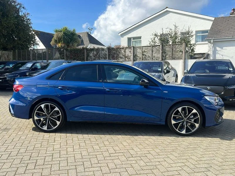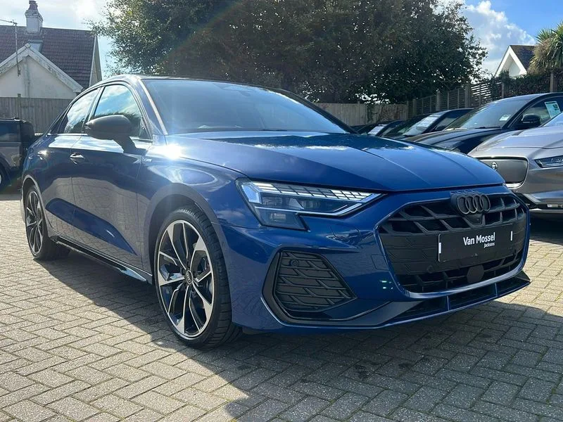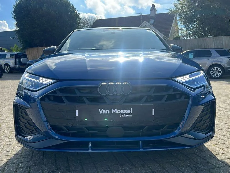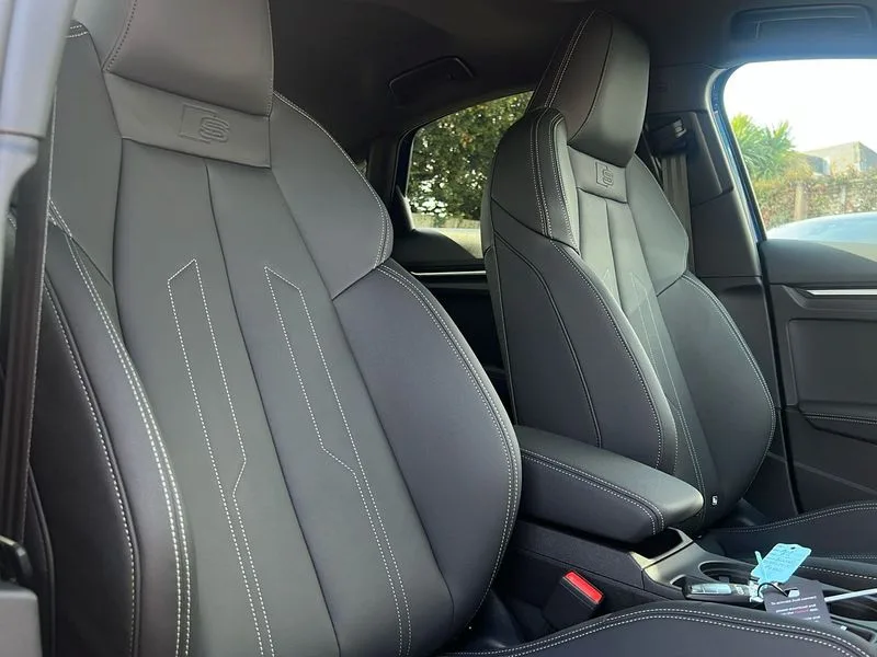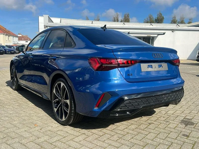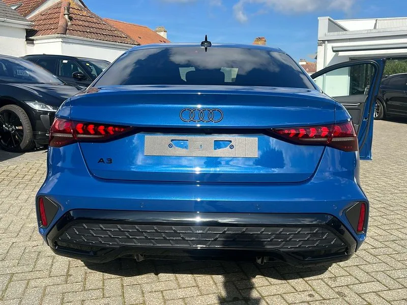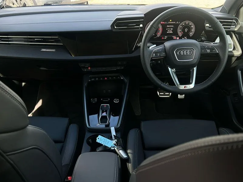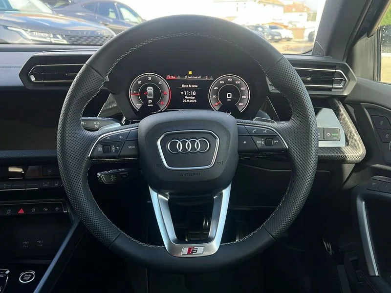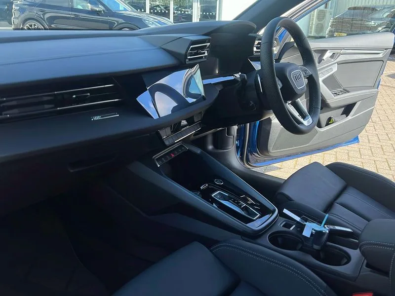• Audi drive select (Auto, Comfort, Dynamic, Efficiency and Individual) • Audi smartphone interface • Audi Virtual Cockpit - 10.25" digital and colour instrument cluster • Automatic start/stop system with recuperation • Bluetooth interface • Camera based traffic sign recognition • Collision avoidance assistant • e-Call (emergency call) • Electromechanical power speed sensitive steering • Lane departure warning system • MMI Navigation Plus with high resolution 10.1" colour touch screen display • Service indicator • Trip computer • Voice control system with natural language interaction • 2xUSB-C connection with data and charging functions • CD player • DAB Digital radio • 3rd brake light • Acoustic glass windscreen • Audi beam uses LEDs to project the Audi logo onto the ground as you exit your A3 • Auto dimming frameless rear view mirror • Electrically adjustable/heated/folding/auto dimming door mirrors with integrated LED indications + kerb view function for passenger side • Front electric windows • Illuminated door sills with aluminium inserts at the front with S logo • LED daytime running lights • Light and rain sensors • Model and engine designation badges at rear • Privacy glass - dark tinted rear window, rear door and side windows • Rear boot • Rear electric windows • Rear side wing doors • S roof spoiler • 12V socket and storage compartment in front centre console • 3 seat bench in 2nd row • 3 spoke flat bottomed leather multifunction sport steering wheel with gear shift paddles • 4 way electrically adjustable lumbar support for driver and front passenger • 60/40 split folding rear seat bench • Black cloth headlining • Dual zone electronic climate control • Front and rear centre armrest in artificial leather • Front and rear headrests • Front/rear floor mats • Height and reach adjustable steering wheel • Interior lighting - glove compartment light and right hand side • Luggage compartment floor covering • Manual boot compartment lid • Single front passenger seat • Stainless steel pedals and front footrest in black • Twin leather upholstery with front sports seats S embossed logo • Diesel particulate filter • Sports suspension • Aluminium interior elements pack - A3 • Black styling pack - A3 Saloon/Black edition • LED interior lighting pack - A3 Saloon • Technology pack pro with 360 camera - A3 Saloon/TDI • 3x3 point rear seat belts • Driver and front passenger airbag with passenger airbag deactivation • Electronic Stabilisation Control (ESC) including ABS, ASR and EDL • First aid kit with warning triangle and 2 safety vests • Front side airbags with head airbags and interaction airbag • Pre-sense front with pedestrian and cyclist detection • Seatbelt monitoring • Tyre pressure loss indicator • Anti theft alarm • Anti-theft wheel bolts • Electronically operated child locks • Immobiliser • Remote control central locking • Aluminium air vent surrounds • Dark spectrum aluminium inlays, accent surfaces in the dashboard and centre console in platinum grey silk effect paint finish • 19" 5 arm trapezoid design alloy wheels in matt grey with diamond cut finish