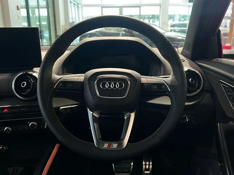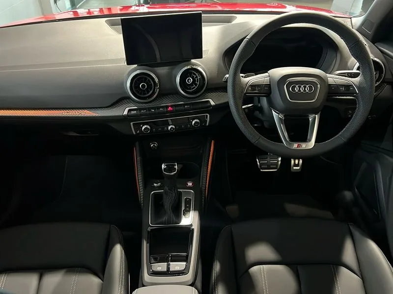 • 3D map display • Adaptive cruise control with active lane assist/emergency assist • Audi connect navigation and infotainment includes innovative services • Audi connect remote and control connects your vehicle to your smartphone • Audi drive select: S tronic - power steering assistance + engine + gearshift (modes: comfort, auto, dynamic, efficiency, individual) • Audi side assist including rear cross-traffic assist and audi pre sense basic • Audi smartphone interface - Apple carplay/Android Auto, USB connect, 2xSDXC card readers, voice control for navi, telephone, music and 3rd party apps • Audi virtual cockpit • Automatic start/stop system with recuperation • Bluetooth interface includes bluetooth audio streaming • Camera based traffic sign recognition • Distraction and Fatigue warning • E-call • Instrument dials with S logo • Jukebox hard drive memory for music (10GB) • Lane departure warning • MMI navigation plus with 8.8" touchscreen • Natural voice recognition • Park assist system including front parking sensors • Phonebox light with wireless charging • Power operated tailgate • Progressive steering • Rear parking sensors • Reversing camera • Traffic jam assist with emergency assist • DAB Digital radio • SONOS premium sound system • USB type C port • Audi beam • Auto dimming rear view mirror • Black window trims • Brake lights, tail lights, reversing lights, and rear number plate lights in LED technology • C-Pillar blade in Brilliant black • Electrically adjustable, folding, auto dimming and heated door mirrors with integrated LED side indicators • Exterior mirror caps in Brilliant black • Front windscreen with grey tinted sunband • LED daytime running lights • LED third brake light • Matrix headlights with LED rear lights, dynamic rear indicators, cornering lights • Privacy glass - dark tinted rear and rear side windows from B-pillar backwards • Quattro decals on rear side flank • Rear side wing doors • Rear wiper • S design body styling - SQ2 front bumper, S design underbody protection, SQ2 rear diffuser • S design radiator grille with horizontal struts and SQ2 logo • S specific dual-branch black tailpipes, with twin tailpipes on both the left and right in black • Sport bumpers in manhattan grey • Variable front intermittent wipers • Wheel arch trims in manhattan grey • 12V socket in front • 3 seat bench in 2nd row • 3 spoke leather trimmed multi function steering wheel with paddleshift features S badging • 4-way electric lumbar support for front seats including manual seat height adjustment for both front seats • 40/20/40 split folding rear seat bench with centre armrest and cupholder • Black carpets • Black cloth headlining • Dual zone electronic climate control • Fine Nappa leather upholstery with S embossed logo • Front and rear head restraints • Front centre armrest • Front sport seats • Front/rear floor mats • Heated front seats • Height/reach adjust steering wheel • ISOFIX child seat mounting in front passenger and rear outer seats • Single front passenger seat • Stainless steel pedals • Quattro all wheel drive • S sport suspension lowered by 20mm • Black styling pack - Q2 • Extended interior upholstery pack - SQ2 • Storage and luggage compartment pack - Q2 • Technology Pro pack - SQ2 • 3x3 point rear seatbelts • 6 airbags - Front, curtain and front side airbags • Brake calipers painted black with S logo at the front • Electromechanical parking brake • Electronic stabilisation control including ABS, ASR and EDL • Front passenger airbag deactivation • Hill hold assist • Pre-sense front with pedestrian recognition • S model enhanced braking system • Seatbelt monitoring • Tyre pressure warning light with visual and acoustic warning • Warning triangle and first aid kit • Anti theft wheel bolts • Electronically operated child locks • Remote central door locking • Thatcham category 1 alarm • Aluminium interior element • Black dashboard • Gloss black centre console • Illuminated format design inlays • 19" 5 double spoke design alloy wheels in gloss white with diamond cut finish • Tool kit
