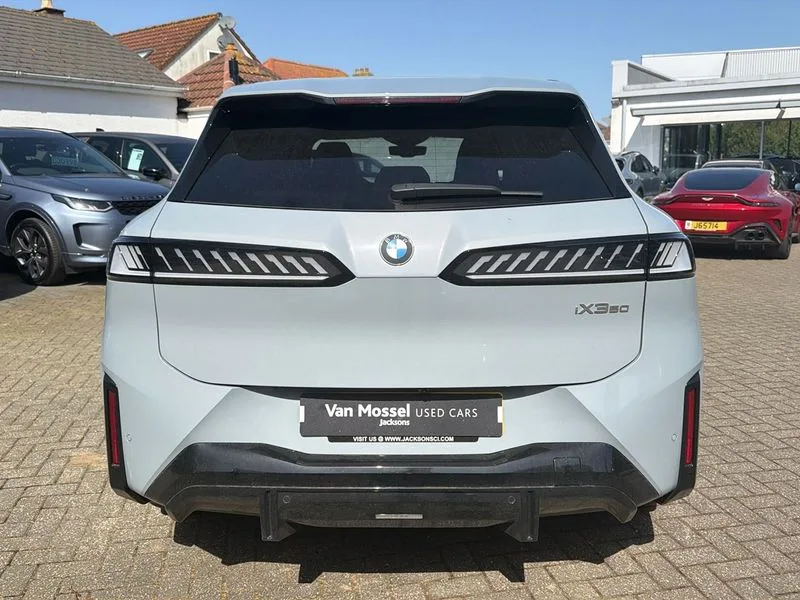 • BMW 3D Head up display • BMW Dynamic performance control • BMW Panoramic iDrive • BMW Teleservices • Brake pad wear indicator • Cold appearance identical • Condition based service • Connected drive services • My mode - Personal,sport,efficient,silent modes • Open storage compartment on rear centre console • Power assist steering • RNC (Road Noise Cancellation) • Road priority warning • Rollback prevention • DAB tuner • Dual USB-C port at the back of the rear centre console (2 x 15 watts), without data transfer • Harman Kardon HiFi loudspeaker system/13 speakers/365 watt/2x door woofer/5x midrange speaker/5x tweeter/1x subwoofer/Surround sound • Open storage compartment for mobile phones including dual USB-C ports (45 watts) • Automatic tailgate operation with soft close function • Body colour door handles flush mounted, retractable and electrically operated, including illuminated outline • Clear transparent headlight diffusing lens • Dynamic turn signal lights • Expanded driver's side exterior mirror with automatic dimming,electric folding,adjustable,auto parking function,Illuminated, including logo projection • Frameless rear view mirror with automatic anti dazzle function • Glass 3D kidney Shadowline • L-shaped tail light signature across the entire width of the rear light • LED daytime driving lights • LED Headlights • LED rear lights • LED side lights • LED third brake light • Manual headlight range control • Mirror base triangle blade in black high gloss • Mirror caps in high gloss black • Number plate integrated into rear bumper, illuminated • Rear fog light • Rear side wing doors • Rear window heating • Rear wiper • Redesigned BMW badge on the front and rear • Redesigned BMW front, glass 3D kidney,area graphics, integration of front camera including cleaning nozzle and mid-range radar • Reversing light • Roof trim strips in black high gloss including attachment points for roof rack • Side graphic with trim strips in black high gloss • Side sill trim in grained black • Side window frame, B-pillar panel and C-pillar panel in black high gloss • Storage compartment under the bonnet • Two stage high beam assistant • Wet arm wipers • Window recess cover concealed for a more monolithic appearance • Windscreen wipers • 12V socket • 2 cup holders in front • 3 rear seats • 3 zone automatic air conditioning • 6 way electric seat adjustment with memory • Ambient light with translucent instrument panel and dynamic lighting • Anthracite headlining • Black floor mats • Centre console control centre including manual volume control • Centre console storage tray • Driver and front passenger heated seats • Driver and front passenger sun visor • Driver seat backrest width adjustment • Electric interior door handles • Fold-out 20% centre armrest in the rear, including 2 cup holders, also suitable for smartphones • Footrests and pedals in plastic • Front and rear head restraints • Front centre armrest with storage compartment • Illuminated ambient front footwell lighting • Illuminated ambient lighting for door trim inlay panels and door pockets • Illuminated ambient lighting of the storage compartment in the centre console of the first row of seats • Illuminated front door panel exit light • Illuminated front vanity mirror lights left and right • Illuminated glove compartment • Illuminated indirect ambient lighting of fresh air vents in the instrument panel • Illuminated indirect lighting for cup holder • Illuminated luggage compartment light • Illuminated reading light and spot lighting for the first and second row of seats • Luggage compartment removable panel • M Sport seats for driver and front passenger,Electric forward/back,seat angle,lumbar support with massage function,7 massage program • Open throw tray below centre console • Roof switch cluster • Single front passenger seat • Smart Island door • Switch for fore and aft seat adjustment including menu entry button and door lock • Through loading system with 40/20/40 split folding rear seat • Wireless charging tray • AC charging professional 22kW • Automated charging socket flap, electric • Bidirectional charging with EHC Professional • DC charging • Electric drive unit • Fast charging cable professional mode 3 for public charging • High voltage battery • Intelligent charging flap • Remote access charging • Standard suspension • BMW ConnectedDrive pack - iX3 • BMW Iconic glow exterior pack - iX3 • Driving assistant pack - iX3 • Driving assistant plus pack - iX3 • M Sport exterior parts/M Sport Pro pack - iX3 • M Sport interior parts pack - iX3 • 3x3 point rear seat belts • Acoustic protection for pedestrians • Airbag deployment is controlled with respect to the intensity and scope • Airbags - driver and front passenger • Auto hold function • Automatic release of the parking brake when driving off • BMW emergency call • Brake drying • Brake standby • Child locks on rear doors • Child safety seat fasteners for front passenger seat • Driver central airbag • Dynamic brake control • Electromechanical parking brake • Front and rear brake discs • Head airbags • Integrated braking system • Isofix child safety seat fasteners on outside seats left and right • M seat belts • M sport brake in red high gloss painted callipers with monochrome M inscription • Manual passenger deactivation with camera-based occupant recognition • Occupant detection • Side airbags for driver and front passenger • Tyre pressure monitoring system • Warning triangle and first aid kit • Audible alarm and visual alarm system with anti-theft alarm system • Comfort access system with BMW digital key plus • Locking wheel bolts • Interior design BMW M trim • Tyre repair kit plus including tyre sealant