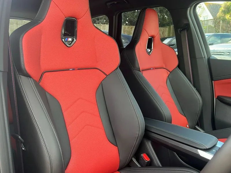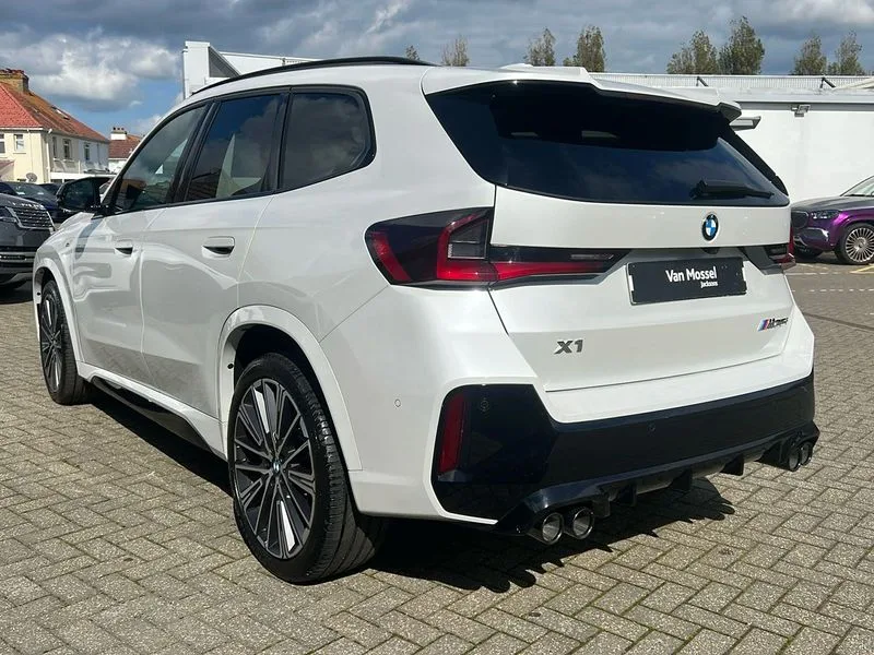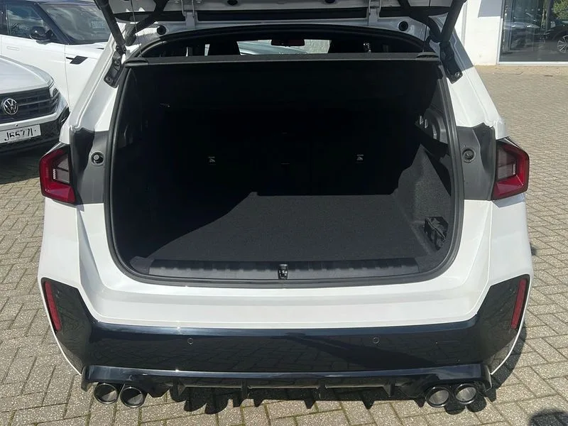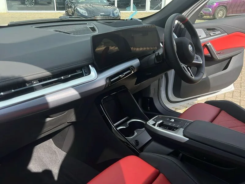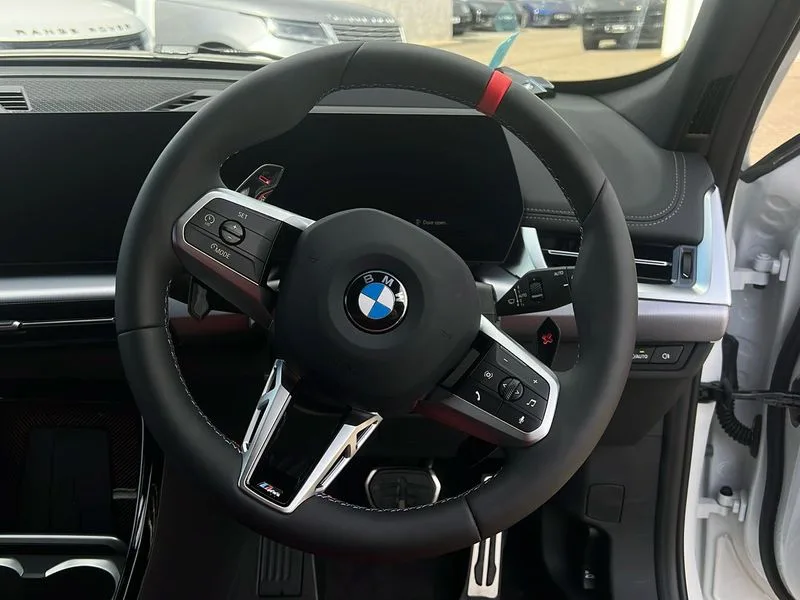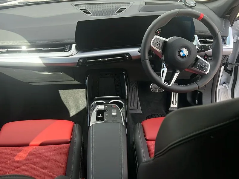 • BMW M35i xDrive 5dr [Tech/Pro Pack] Step Auto finished in Mineral White Metallic with Coral Red/ Black Veganza Perforated Leather Sports Seats • **Factory Fitted Options** • M Sport package Pro • Technology Plus Pack • 20' BMW Individual Light Alloy multi-spoke style • Heated Steering Wheel • Sliding Rear Seats • Panoramic Glass Sunroof • Electric Memory Seats • Driving Assistant Professional • Attentiveness assist • Automatic start/stop function • BMW Operating system 9 with BMW Maps, real-time traffic information, in-car experiences, remote services and smartphone integration • BMW Teleservices • Brake pad wear indicator • Condition based service • Connected eDrive Services • Drive off assistant • Electrically opening/closing tailgate with opening/closing with remote control and contactless opening and closing • iDrive controller • Language version English • My Modes • Personal Profile - automatic lock when driving away selectable • Servotronic PAS • Tyre puncture warning system • Widescreen display • BMW Personal eSim • DAB Digital radio • Harman/Kardon surround sound audio system • 4 exhaust tailpipes with tailpipe trims in pearl chrome • BMW M radiator grille with twin vertical bars in black high gloss including M badge • Dynamic brake lights • Electric adjustable heated door mirrors • Electric windows - front and rear, with open/close fingertip control, anti-trap facility and comfort closing • Folding door handles integrated flush with surface • Follow me home headlights • Front and rear bumper panel with M specific design, in body colour with inserts in black high gloss • Front door exit lights • Heated rear window • High gloss shadowline • Key with M identification • LED 3rd brake light integrated in rear spoiler • LED daytime running lights • LED number plate light • M Extended high gloss shadowline exterior trim • M lights shadowline • M mirror caps in black high gloss • M roof rails high gloss shadow line • M signature on front right/ left side panel • M spoiler in black high gloss • Model badge X1 on left tailgate, motorisation on right • Model inscription on right tailgate • Rain sensor including auto headlights activation • Rear side wing doors • Rear wiper • Roof mouldings in vehicle colour • Side sill trim panel in M styling • Sill cover in body colour • Sun protection glass • Trailer stabilisation logic • Windscreen washer nozzle for rear view camera • Windscreen wipers front with heated washer nozzles • 12V - Power sockets with front centre console and luggage compartment • 2 bag hooks in luggage compartment • 2 cup holders in front • 2 x USB Type C ports for charging in front centre console + 1 x USB Type C ports for charging in rear centre console • 3 rear headrests • 3 seat bench in 2nd row • 3 upper retaining strap clips integrated into rear panels of seat backrests • 4 grab handles • 40:20:40 split folding rear seats • Ambient interior lighting • Anthracite headlining • Anthracite Velour front and rear floormats • Bottle trays in all doors • Child seat ISOFIX attachment for two outer rear seats and front passenger seat with anchorage points • Clothes hook rear • Driver and front passenger heated seats • Dual zone automatic air conditioning • Front and rear door pockets • Front and rear footwell lighting • Front centre console storage compartment • Front/rear adjustable head restraints • Glove compartment • Interior door handle recess light on all doors • Light on right in luggage compartment • M sport leather steering wheel • M Sport seats • Manual steering column height and depth adjustment • Middle centre console storage compartment • One piece parcel shelf opens together with tailgate and removable • Rear armrest in door trim panel • Single front passenger seat • Sport leather multifunction steering wheel with thumbrests and operation of instrument display, audio, telephone and driver assistance • Storage compartment net in left side trim panel • Storage compartment with folding cover under centre console armrest cushion • Storage tray in right side trim panel • Tilt adjustment incl. cargo function of 2nd row of seats • Vanity mirror lights • Aluminium lightweight construction • Double VANOS • EU6 emissions management • High precision injection • Larger Fuel Tank • M Adaptive suspension • Performance Control • Petrol Particulate Filter • Reinforced crankshaft drive • Steptronic transmission with double clutch and gear shift paddles • Twin scroll turbocharger with Valvetronic • xDrive intelligent four wheel drive system • ABS/EBD • Automatic hold function • Automatic Stability Control (ASC) • BMW emergency call • Braking readiness • Cornering brake control (CBC) • Crash Sensor - activates hazard/interior lighting + unlocks doors • Driver/Front Passenger airbags • Driver/front passenger side airbags • Dry braking • Dynamic brake control • Dynamic stability control + (DSC+) • Electromechanical parking brake • Energy recovery system • First aid kit • Front and rear brake discs • Front and rear head airbags • Front passenger airbag deactivation • Integrated brake system • M Seatbelts • PC iBrake PostCrash approach control warning with light braking function • Rear door child safety locks • Three point seat belts in all seats • Tyre pressure monitor • Warning triangle • Alarm system with tilt sensor, monitoring doors, bonnet interior and tailgate • Closing system with central locking • Locking wheel bolts • Luxury instrument panel • Tyre repair kit plus