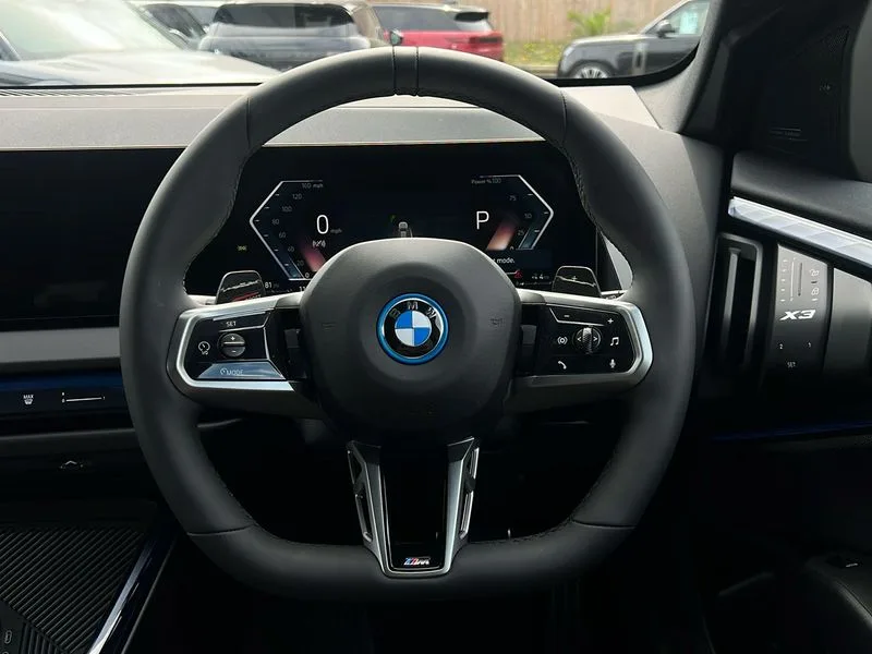• Active Guard • Attentiveness assist • BMW Live Cockpit Professional nav system including 12.3" instrument display + 12.3 high resolution control display • BMW Online services • BMW Teleservices • Brake pad wear indicator in front and rear • Check Control warning system for monitoring of lights and door/luggage compartment open warning • Condition based service - BMW service history, electronic service booklet, integrated owner's handbook • Connected drive services • Electric boot lid • Front/rear Parking distance control • iDrive touch controller with 8 favourite buttons • Instrument cluster with speedometer with mph readout, tachometer, fuel gauge and oil temperature gauge • Lights on warning by audio warning signal when ignition is switched off • Oil sensor for level and grade, warning by check control system • On board computer - average speed+fuel consumption, service interval, clock/date, odometer/trip meter, outside temperature display and ice warning • Optimum shift indicator • Personal Profile - automatic lock when driving away selectable • Run flat indicator • Stop/start system • Variable sports power steering with drive performance control Sport+ mode • BMW professional radio/CD/MP3 • DAB tuner • Acoustic glazing • Automatic windscreen wipers and automatic headlight • Black finish on B pillars • Body colour door handles • Body colour electric adjust heated aspherical door mirrors • Body colour roof mouldings • Body coloured bumpers • Direction indicator, side repeaters, integrated in exterior mirrors • Dynamic brake lights • Exhaust tailpipes - dual, round, split left and right with chrome finisher • Fingertip control / anti-trap function on electric window • Folding wing mirrors with auto dimming • Follow me home headlights • Front and rear bumper system with replaceable deformation elements • Front and rear electric windows • Gloss chrome tailpipes finishers • Green tinted heat insulating glass • Heated windscreen washer jets • High beam assistant • High gloss black shadow line roof rails • High gloss shadowline exterior trim in decorative moulding side frame/recess cover/guide rail/B, C pillars/mirror frame and triangle with mirror base • High level 3rd brake light incorporating LED Technology • Interior rear view electrochromatic mirror with automatic anti dazzle function • LED tail lights • Lightweight engineering • M aerodynamic bodystyling • M Sport entry door sill strips • Model designation • Rain sensor • Rear side wing doors • Rear wing door • Rear wiper • Shark fin antenna • Side exterior M designation badges • Visible VIN plate • Welcome lighting • Windscreen wipers with adjustable interval • 12V power point in luggage area • 12V power socket in front centre console • 2 x USB Type C ports for charging and data transmission (front centre console) and 2 x USB Type C ports for charging (rear centre console) • 3 rear headrests • 3 seat bench in 2nd row • 3 zone automatic air conditioning • 4 lashing points to secure luggage • 40:20:40 split folding rear seat with loading system • Ambient lighting • Anthracite headlining • Automatic interior light when door is opened/ignition switched off or via remote key • Floor mats in velour • Foldable storage floor with compartment • Four grab handles integrated in roof lining • Front and rear bottle holders integrated into door trim storage compartments • Front and rear side armrests integrated into door trim • Front centre armrest with storage compartment • Front footwell lights • Front head restraints • Front passenger seat • Front sports seats • Front/rear courtesy lights with soft on/off dimming • Front/rear reading lights • Heated front seats • Isofix rear child seat preparation • Leather gear knob • Lockable glove compartment • Luggage area underfloor compartment • Luggage compartment lighting • M sport leather steering wheel • Multifunction steering wheel • Parcel shelf removeable and storable under boot floor • Reach and rake adjustable steering column • Rear centre armrest with 2 cupholders • Removable / retractable luggage cover • Slope adjustable rear seats • Storage compartment in rear centre console and front/rear door trims • Sun visors with vanity mirrors and ticket pocket • Toolkit located in luggage compartment • Two front cupholders with removable oddments tray/lid • eDrive exterior sound • Fast charging cable professional mode 3 for public charging • Incorrect fuelling protection • Multi-link rear suspension • Sport automatic transmission with gearshift paddles • Connected pro pack - X3 • ADB - Automatic Differential Brake • Anti-lock braking system (ABS) with brake assist • Automatic Stability Control (ASC) • Battery safety cut-off • BMW emergency call • Brake drying • Brake energy regeneration • Braking pre-tensioning • Child locks on rear doors • Cornering brake control (CBC) • Crash Sensor - activation of central locking release, hazard warning light and interior lighting • Deactivation of fuel pump in the event of a crash • Driver and front passenger front and side airbags with passenger deactivation and ITS front and rear head airbags • Driver and front passenger knee airbag • DSC+ • Dynamic brake control • Dynamic Traction Control - DTC • Electromechanical parking brake • Hill descent control • Hill start assist • Seatbelt security check for front seats • Side impact protection • Three point seatbelts to all seats with front and outer rear pyrotechnic belt tensioners and seat belt force limiters • Two tone horn • Tyre pressure sensor • Ventilated front and rear disc brakes • Warning triangle and first aid kit • Central locking switch for all doors, fuel filler cap and luggage compartment • Electronic engine immobiliser • Locking wheel nu