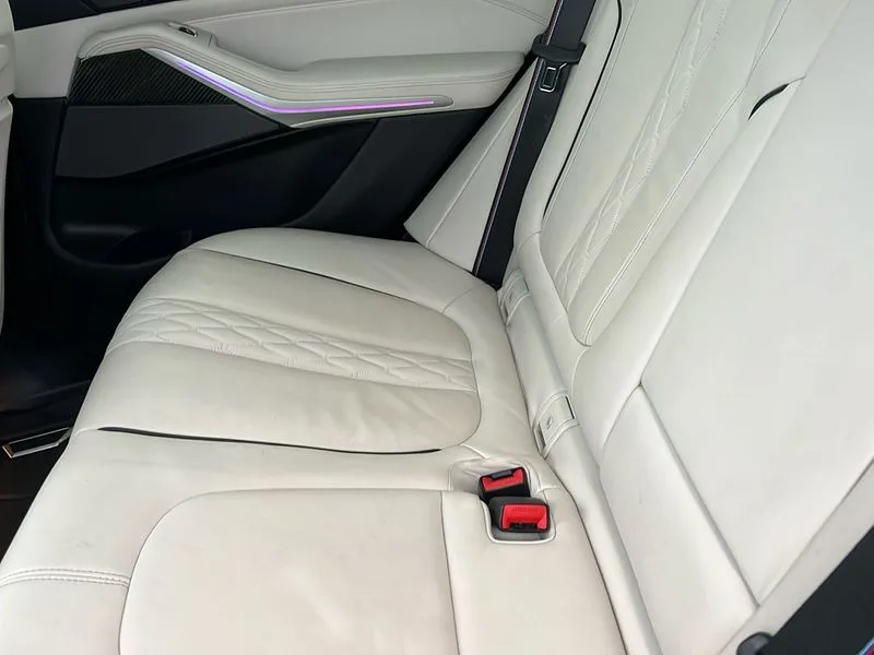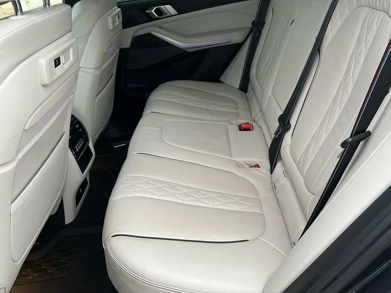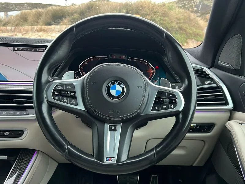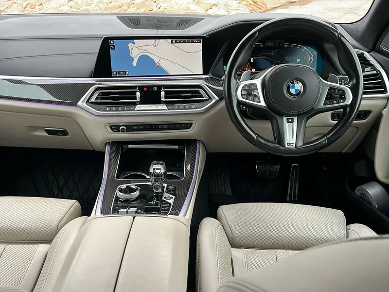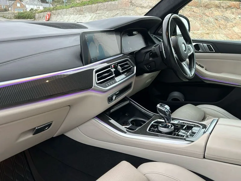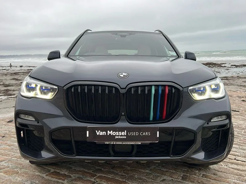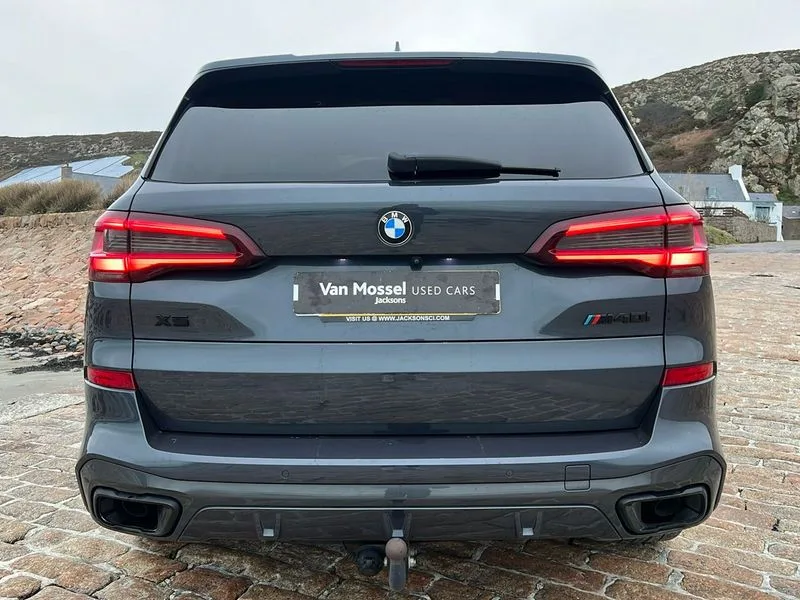 • 20GB hard disc drive (HDD) memory • Active guard plus • Attentiveness assist • Automatic tailgate with top hinged section open and manual bottom hinged section • BMW ConnectedDrive online services • BMW digital live cockpit professional - 12.3" digital instrument panel and 12.3" CID, with touch/voice command • BMW Drive recorder • BMW gesture control • BMW legal emergency call • BMW Teleservices • Brake force display • Brake pad wear indicator warning light • Enhanced bluetooth hands free facility with Telephony wireless charging • Front/rear park distance control • Galvanised plastic keyfob • Head up Display • iDrive touch controller with shortcut buttons • Infinity symbol with line graphic on reset of average consumption • Lights on warning • Oil sensor for level and grade • On board computer inc. average speed, fuel consumption, liquid crystal Info display, journey computer, outside temperature display, personal profile • Parking assistance plus with ultrasound based assistance system, reversing assistant, lateral parking aid and surround view system • Service interval indicator • Speed limit info display • Wi-Fi hotspot • DAB Tuner enables digital radio reception • Favourite buttons • USB connection, USB type A 1.5A in cupholder, USB Type C 3A in centre armrest • Active Air Stream kidney grille with high-gloss chrome • Adaptive air flap control bar in high-gloss black • Automatically dimming rear view mirror • Body colour bumpers • Body colour door handles • Dynamic brake lights with LED technology • Exhaust tailpipes - single, left and right with Chrome finisher • Follow me home headlight function • Front and rear electric windows with open and close fingertip control, anti trap facility and comfort closing • Heated windscreen washer jets • High gloss black outer and central air intakes on front bumper with pearlescent chrome finish • High gloss black Side elements • LED daytime running lights • LED fog lights • LED rear lights • M aerodynamic body styling • M designation on left and right front side panels • M Sport exhaust system • Pearlescent chrome front grille bars • Rain sensor with automatic headlight activation and windscreen wiper control • Satin aluminium side window graphic • Sun protection glazing • Third brake light in rear spoiler • Variable intermittent rear wash/wipe • Welcome light carpet • X5 on left tailgate • xDrive designation on right tailgate • 12V - Power sockets with 2x centre console and 1x luggage compartment • 40:20:40 split folding rear seats • Ambient interior lighting with 6 pre-designed selectable lights including dynamic function • Centre and rear interior light • Child seat ISOFIX attachment with rear outer seats includes top tether • Electric front seat adjustment with driver and front passenger memory function • Electrical steering column with adjustable height and length with activation and control on the steering column • Foldable rear centre armrest with 2 cupholders and storage compartment • Front and rear cupholders x 2 • Front and rear door pockets • Front and rear door sill inlays with illuminated BMW M designation • Front and rear side armrest integrated into door trim • Front footwell lights • Front reading lights • Light inside glove compartment • Lockable glove compartment • Luggage compartment floor panel with integral storage tray • Luggage compartment lighting • M leather steering wheel • M specific key • M specific pedals • M specific steering wheel • M specific velour floor mats • Make-up mirror lights • Multifunction controls for leather steering wheel • Multifunctional hooks • Rear head restraints • Seat back with flap pocket • Securing rings in luggage compartment • Storage bins on all doors • Storage tray and compartment with cover in centre console • Sunvisors with illuminated vanity mirrors • Toolkit located in luggage compartment • Adaptive 2-axle air suspension • Double VANOS • Double wishbone front axle • Drive performance control with ECO PRO comfort + sport mode • Eight speed steptronic sport automatic transmission and gearshift paddles on the steering wheel • High precision injection • Petrol Particulate Filter • Safety battery terminal clamp • Turbocharger with Valvetronic • Connected Package Professional - X5 • Expanded exterior mirror pack - X5/X5 M • Non-smokers pack - X5 • Active protection • Airbags - driver/front passenger, rear and side, first and second row seats head airbags, front passenger seat airbag deactivation + knee airbag • Anti-lock braking system (ABS) • Automatic Stability Control (ASC) • Brake drying • Brake energy regeneration • Brake fade compensation • Braking pre-tensioning • Cornering brake control (CBC) • Crash sensor activating central locking release, hazard warning lights, fuel cut off, interior lighting + activation of safety battery terminal clamp • Deformation zones - front and rear with door reinforcements and bumpers up to 2.5 mph • DSC - Dynamic Stability Control • Dynamic brake control • Dynamic Traction Control - DTC • Electromechanical parking brake with automatic drive away release and auto hold function • Electronic brake force distribution • Front and rear seatbelts with seatbelt stopper, seatbelt tensioner for front and outer rear seats and belt force limiter • Front head restraints with anti-whiplash • Height adjustable front seatbelts • Hill start assistant • Integrated brake system • M Sport braking system in blue high gloss + blue painted brake calipers with M designation • M sport seatbelt • Mechanical child proof lock on rear doors • Passive protection for pedestrians • Seat occupancy detection for driver and passenger side • Side impact protection • Three 3 point inertia reel seatbelts • Two tone horn • Tyre pres