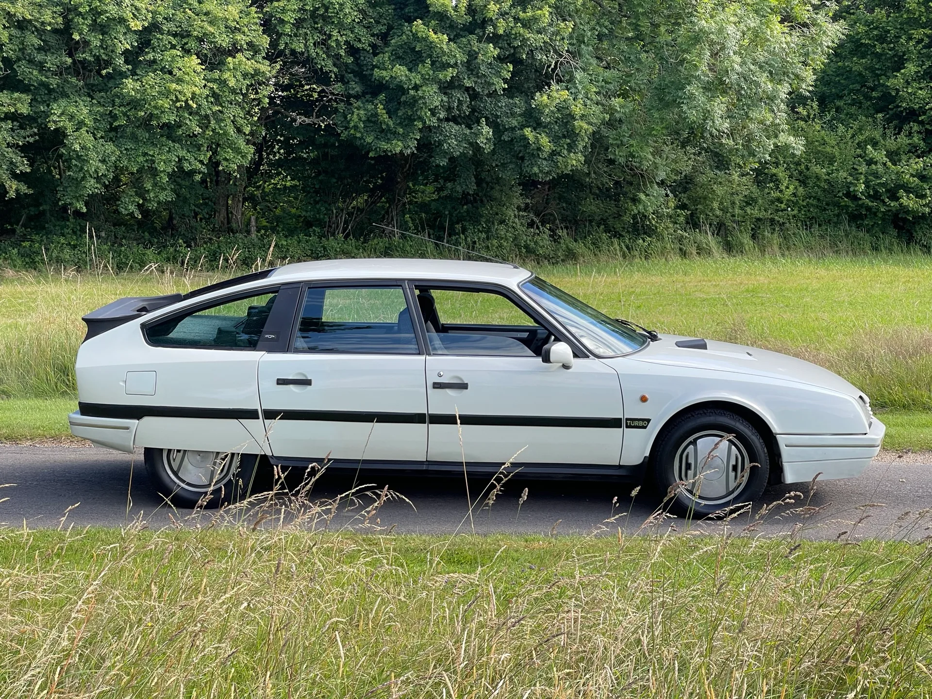 Overview **Overall Comments** This is a very original Series 2 CX, fitted with the most powerful engine variant available and, being in very good condition, offers a supremely comfortable means of high speed travel. If desired, a second spares car and stock of spares are available separately. The car is currently located in Dorset should viewing wish to be arranged by appointment. **Body** The body of the car is sound and solid with just a little light corrosion in the driver’s door, boot lid and bonnet. The white paintwork and colour matched bumpers present well and generally look good but could warrant some attention to return to a really smart condition. The underside of the car is in a generally good condition – it has had previous repairs carried out, but these appear well executed. The CX has its original ‘Turbo’ alloy wheels and the tyres have plenty of tread remaining. **Mechanical** The vehicle is in good mechanical health and drives very well. It has had recent work on the hydraulic system – with 6 new (GTi specification) spheres fitted – and the hydro-pneumatic suspension rises quickly and quietly. The battery was replaced in 2022. New (correct Michelin) front tyres fitted this year and fresh MOT certificate in May 2024. **Interior** The interior is generally very good. It has grey herringbone cloth upholstery with both seats and carpeting in a good condition. The dashboard is unmarked and excellent. The headlining however, has started to sag and warrants attention. Asking Price £ 9,950 History The legendary Citroën DS would always be a hard act to follow, but the new CX model quickly received accolades on its launch at the1974 Paris Motor Show. The sleek, aerodynamic lines and sharp Kamm-type tail were designed by Robert Opron, bearing some resemblance to the earlier, smaller, GS model. The mechanical specification was typically advanced, combining Citroën's hydro-pneumatic self-levelling suspension and speed-sensitive power steering (first seen on the Citroën SM). The car sold in good numbers in Europe and won the title of European Car of The Year in 1975. Series 2 vehicles appeared in 1985 with a slightly more aggressive look, the main difference being the use of plastic bumpers. The interior was modified but retained the distinctive driver’s console with ‘fingertip’ control layout. The CX models were powered by a range of inline four cylinder engines, which grew from an initial capacity of 2 litres up to 2½litres, with the highest performance option being the GTi Turbo, which had a claimed output of close to 170bhp and top speed in excess of 130mph. Production of the range ended in 1991. This Series 2 GTi Turbo was first registered in January 1987 and has been well looked after during its life, with 5 previous owners recorded and the mileage of a little under 89,000 believed genuine, given the service records held.