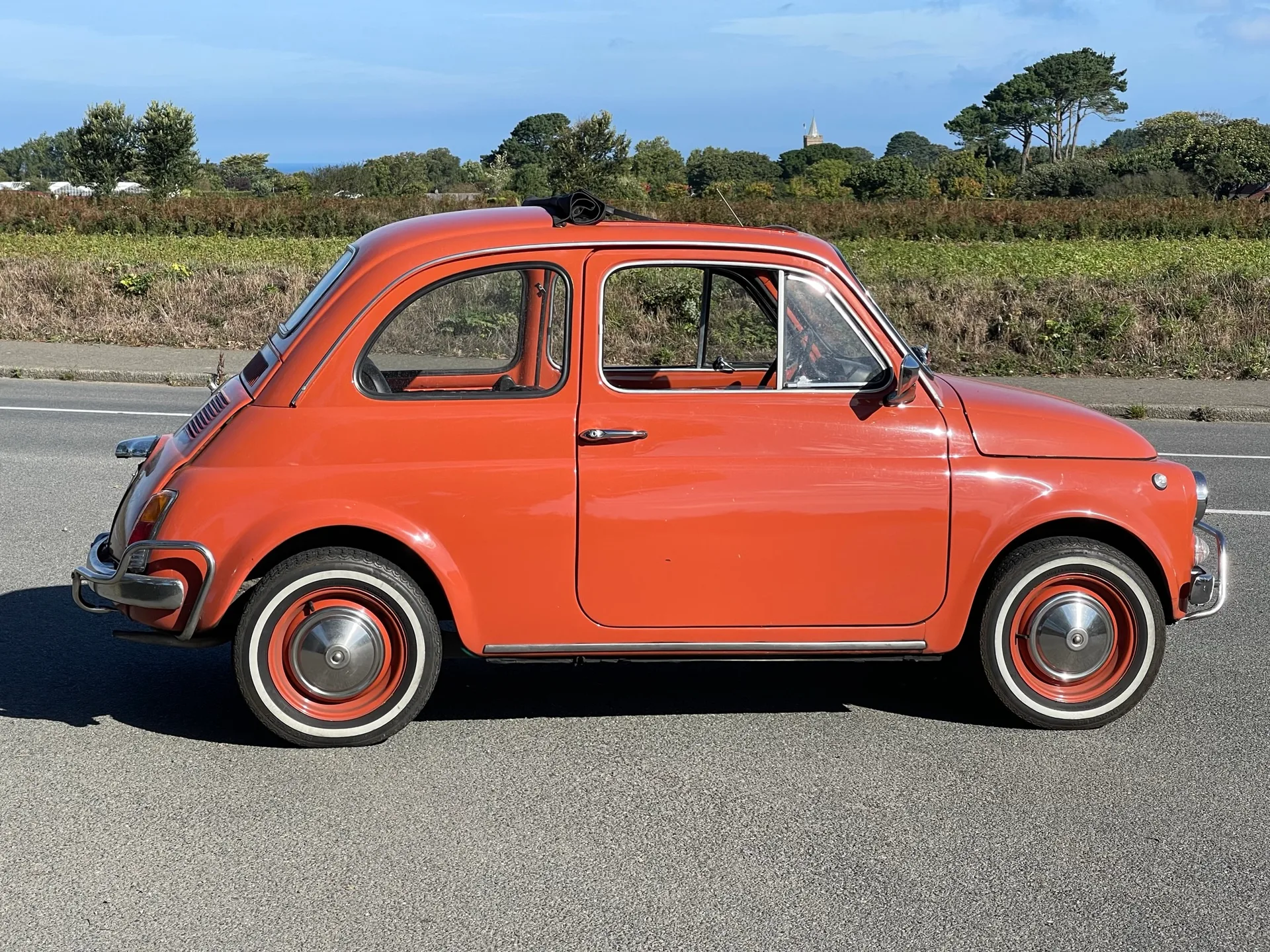 Overview **Overall Comments** A charming example of a cute, eye-catching Italian classic in excellent driving condition. Although an older restoration, the Fiat still looks outstandingly smart. It is ready for a new owner to use, enjoy and cherish. The car is Guernsey registered (current number 22494). We can assist with (worldwide) shipping and importation processes if required. **Body** Comprehensive bodywork repairs were completed in 2009 and the Fiat had a full respray and a new sunroof fitted. We have invoice details of the restoration work carried out together with some supporting photos. The Coral Red paintwork looks very good to this day and the appearance has been enhanced by the recent replacement of some brightwork - namely bumpers and light bezels. Usefully, modern LED driving lights are discreetly fitted to the front of the car, as are wing mirrors for both near and offside. **Mechanical** Running very well, the Fiat is mechanically sound and a joy to drive. The engine rebuild carried out in 2009 was comprehensive – including the fitment of new crankcases and a rebore. More recently the car has had a new dynamo and voltage regulator; a new battery and been fitted with electronic ignition. **Interior** To compliment the new interior fitted as part of the restoration work, the last owner added extra acoustic insulation to the cabin; driver and passenger inertia reel seatbelts; an electric screen washer and a reversing camera. The interior remains in excellent condition throughout. Asking Price £ 9,950 History Possibly one of the most iconic of all Italian cars and universally recognised, the Fiat 500 was launched in 1957. Needing to be affordable, economical and practical for its home market, the car was minimalist in all respects – size (under 10 feet long, yet seating 4); performance (a tiny 2-cylinder, 500 cc engine mounted in the rear and providing just 13 bhp) and fittings (fabric roof; metal dashboard). It was an immediate hit and had a production run of 18 years, up until 1975 with a little over 3.8 million made. In addition to the 2-door saloon variant there was a 3-door panel van, the Furgoncino and an estate car, the Giardiniera. As might be expected, the car evolved throughout its production life but retained an almost identical appearance to the first model. Through 500D, 500F, 500L and 500R designations the engine grew in size (but not a lot); the interior fittings improved, as did some of the body style (most notably the move away from rear-hinged, ‘suicide’ doors to more conventional front-hinged doors). The Fiat 500L offered here was first registered in Torino, Italy in November 1971. The ‘L’ or ‘Lusso’ model was a mildly improved version of the standard ‘F’ model. No mechanical changes of note, other than the fitment of radial tyres, the changes were to exterior brightwork and a more luxurious interior specification - luxurious being perhaps a rather grand description in this instance! The floor was now carpeted rather than simple rubber mats and some storage space was provided with a centre tunnel tray and improved door pockets. A new integrated instrument binnacle (with a fuel gauge!) was fitted in a matt black finished dashboard. The car moved from Italy to Guernsey in 1994 and through the hands of a couple of local owners. In 2009 the 500 was the subject of a full restoration, with bodywork and running gear renovation carried out by marque expert R. Proietti Ltd. of London and a full engine rebuild executed by a well-respected Guernsey-based engineer. Since that time it has been kept in tip-top condition, receiving regular maintenance and any additional attention as required.