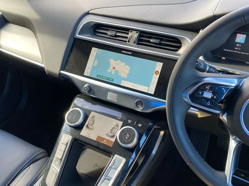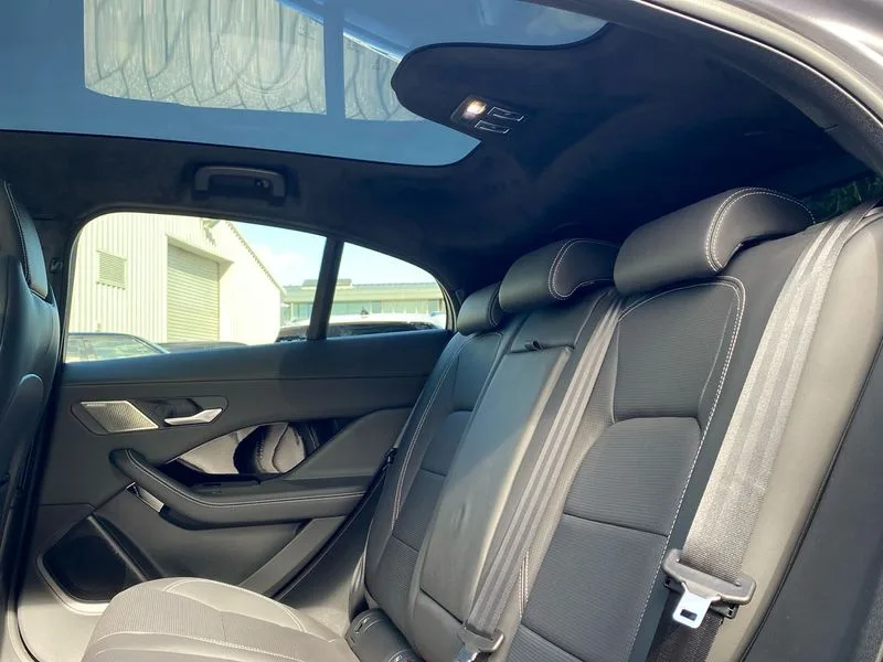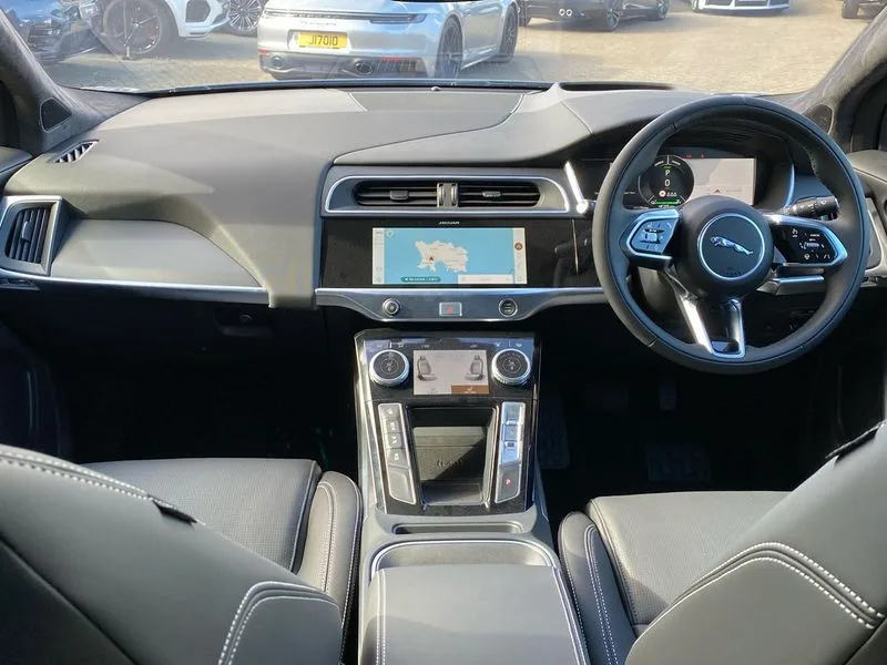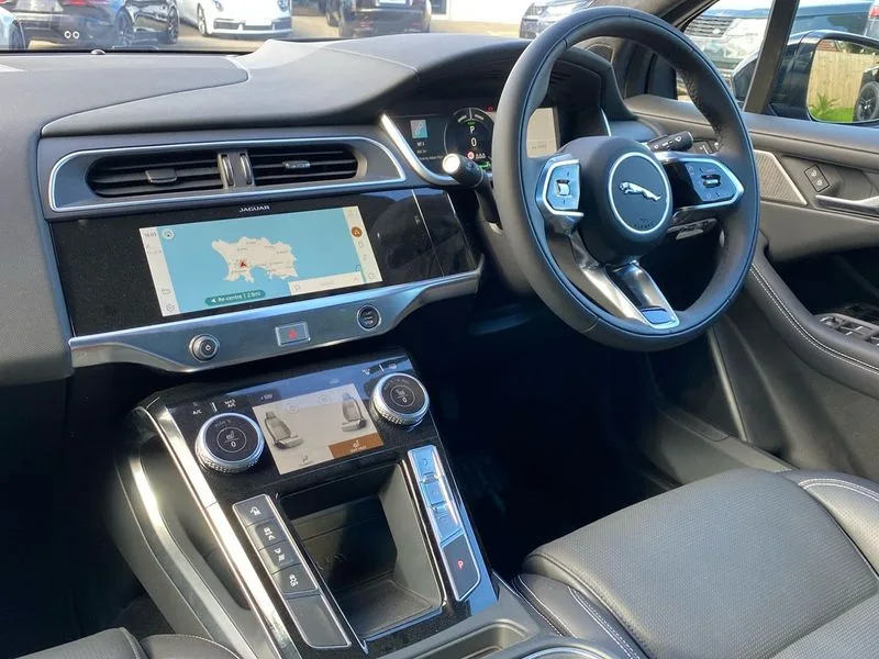 • Ebony Wdsr/Lt Oyst Sprt Ebny/Ebny • Twin Front Cupholders Covered • Glove Box Cooled • FRONT FOG LAMPS • Headlamp Power Washers • Black Painted Roof • Grey • Blind spot assist • Bluetooth connectivity • Brake pad wear indicator • Driver condition monitor • E-call • Head up Display • InControl remote • Interactive driver display • Lane keep assist • Low power mode • Navigation system • Outside temperature gauge • Range for route • Rear collision monitor • Rear traffic monitor • Software over the air • Speed proportional electronic power assisted steering (EPAS) • Start up sequence with movement in dials and lighting • Traffic sign recognition with adaptive speed limiter • Trip computer • Voice control system • Wireless Apple CarPlay/Android Auto • Wireless device charging • 10" PiVI pro duo • Digital Audio Broadcast radio-DAB • Pivi pro connected • 3 flash lane change indicators • Acoustic laminated windscreen • Active vanes • Automatic headlight levelling • Automatic headlights • Body colour bumpers • Body coloured accents • Body coloured side cladding and rear diffuser • Electric heated/power fold memory door mirrors with approach lights and auto dimming driver side • Electric windows with one touch open/close and anti trap • Fixed panoramic glass sunroof • Flush exterior door handles • Follow me home headlights • Front shield grille • Graphite atlas matte finish front air cheeks • Heated front windscreen • Heated rear window with timer • Heated washer jets • Laminated front and toughened rear side glass • LED tail lights • Privacy glass • R-Dynamic body style • Rain sensing windscreen wipers • Rear bike carrier preparation kit • Rear fog lights • Rear side wing doors • Rear wiper • Screw-in rear recovery eye • Solar attenuating rear windscreen • Solar attenuating windscreen • Third brake light • 12V power socket in loadspace • 12V power sockets • 3 rear headrests • 3 seat bench in 2nd row • 40:20:40 split folding heated rear seats with centre armrest • Air quality sensor • Ebony Carpet • Electric cabin pre-conditioning • Front storage compartment • Hooks in loadspace • LED rear reading lights • Luggage tie downs in loadspace • Multifunction steering wheel • Overhead lighting console • Premium cabin lighting • Rear cupholder • Single front passenger seat • Storage under rear seats • Sunvisors with illuminated vanity mirrors • 11kW 3 phase AC onboard charger • 7kW single phase AC onboard charger wallbox • Active sound design • All Wheel Drive (AWD) • Configurable dynamics • Home charging cable Mode 2 • Jaguar charging • Open differential with torque vectoring by braking • Public charging cable Mode 3 • Timed charging • Online pack with Data plan - I-Pace • 3x3 point rear seatbelts • 6 airbags - Driver/front passenger airbags, front and rear curtain airbags and front side airbags • ABS • All surface progress control (ASPC) • Anti-whiplash front headrests • DSC - Dynamic Stability Control • Electric parking brake (EPB) • Emergency brake assist • Emergency braking • Enhanced brake regeneration • Front and rear seatbelt reminder • Hill launch assist • Low traction launch • Power operated child locks • Tyre pressure monitoring system (TPMS) • Global lock and unlock switch on driver door • Intrusion sensor and alarm • Keyless entry • Lock only switch on front passenger door • Locking wheel nuts