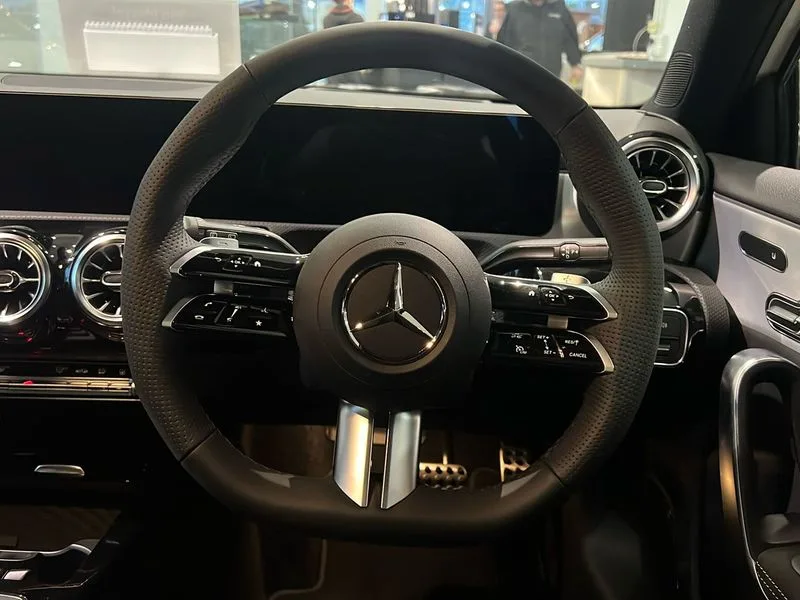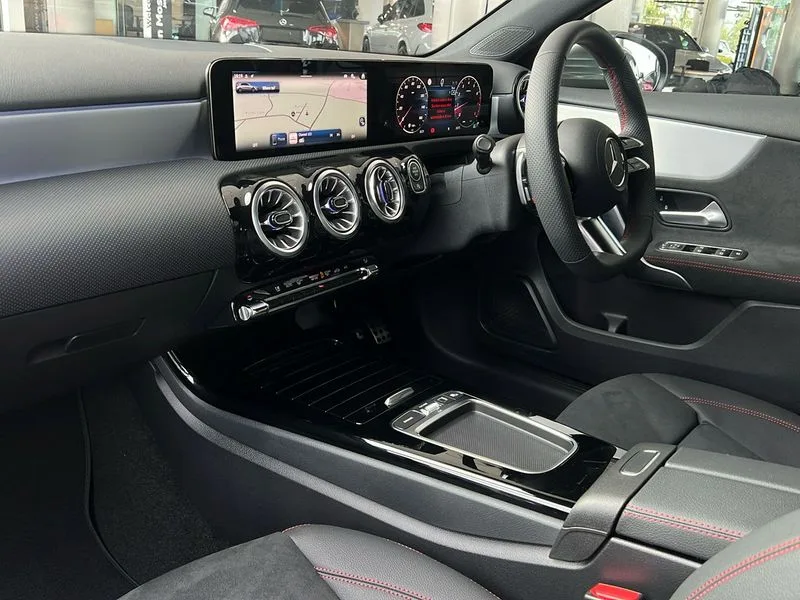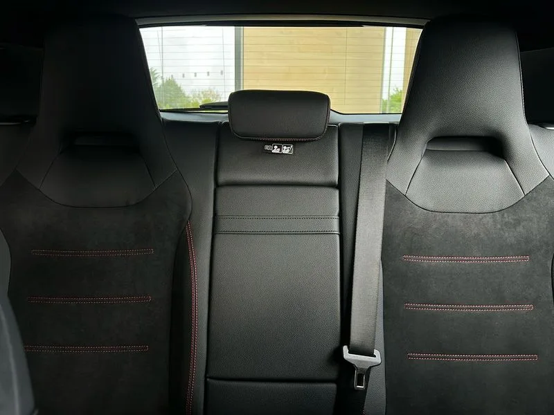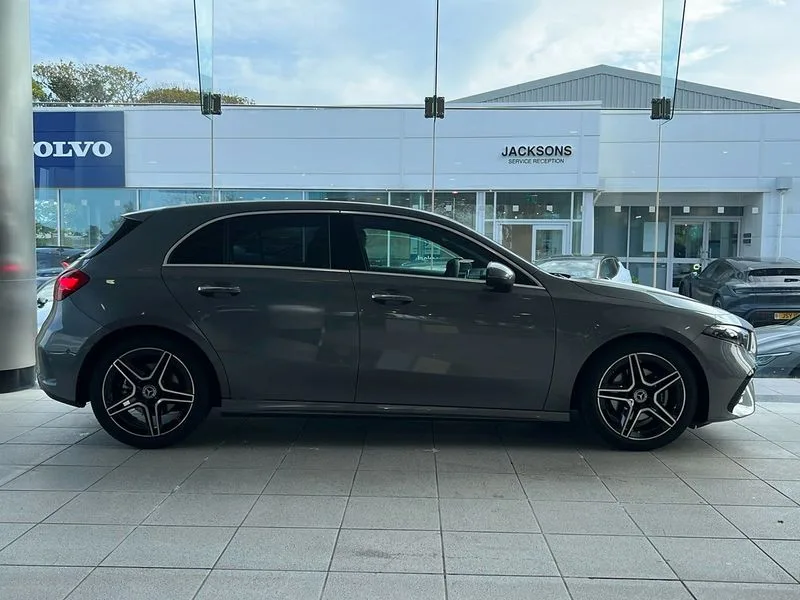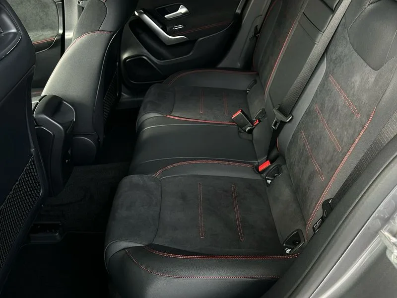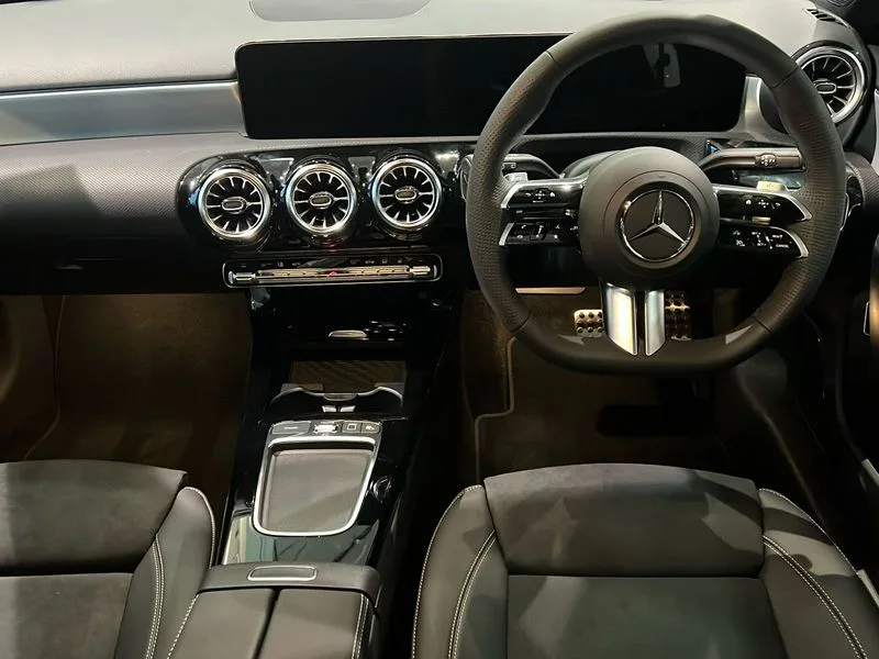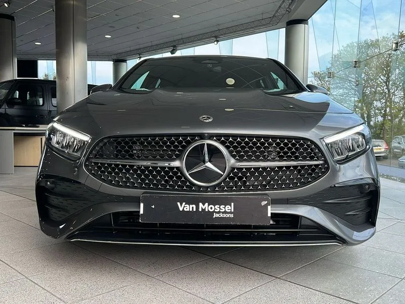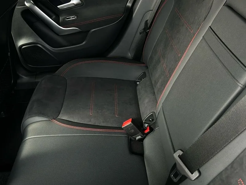 • 10.25 inch touchscreen central media display • 10.25" Digital instrument cluster display screen • Attention assist • Blind spot assist • Brake pad wear indicator warning light • Car wash mode • Cruise control + speed limiter • Direct steering • Direction indicators with lane change function • Dual bluetooth interfaces • DYNAMIC SELECT with a choice of driving modes (ECO, Comfort, Sport and Individual) • ECO start/stop function • Engine start/stop button • Fluid level warning indicator for fuel, oil, coolant and washer fluid • Fluorescent jacket for driver • Hard-disk navigation • Hey Mercedes Voice activation • Lamp failure indicator • Lane keeping system • Mercedes me connect including emergency call system, accident recovery, breakdown and maintenance management • Mercedes me remote services • Outside temperature gauge • Owners manual in English • Pre-installation of private car share • Remote boot closing • Service indicator (ASSYST) • Smartphone integration with Apple CarPlay and Android auto • Speed limit assist • Speed sensitive power steering • Tailgate • Trip computer in multifunction display with current consumption indicator • Wireless charging • DAB Digital radio • MBUX multimedia system • Mercedes Benz sound system (100 W) with 6 speakers • 4 Electric Front and Rear windows • Adaptive brake lights • AMG body styling - AMG front apron with front splitter and AMG rear apron and visible exhaust tailpipe trim elements • Body colour bumpers • Body colour door handles with chrome inserts • Body colour side skirt • Chrome beltline strips • Diamond radiator grille with pins in fine star pattern • Electric adjustable and heated door mirrors with integrated LED side indicators • Exhaust system with 2 visible tailpipe trim elements and rear apron • Headlamp assist automatic headlamp activation • Heated glass rear windscreen + timer control • LED High level third brake light • LED High Performance headlamps including integral LED daytime running lamps and adaptive highbeam assist • LED tail lamp • Privacy glass • Radio aerial • Rain sensing windscreen wipers with two sensitivity settings • Rear fog lights • Rear side wing doors • Rear windscreen wiper • Window line trim strip in chrome • 3 seat bench in 2nd row • 3 Spoke flat bottom leather multi function steering wheel with perforated leather in grip area • 4 way lumbar support • 40:20:40 split folding rear seats • Air conditioning - One zone thermatic automatic climate control with automatically controlled air distribution • AMG floor mats • Artico man-made leather/Microcut microfibre upholstery • Automatic child seat recognition sensor • Black air vents with surround in silver chrome • Black roof lining • Brushed stainless steel sports pedals with rubber studs • Front centre armrest with stowage • Front door sills with Mercedes Benz lettering • Front seat backs luggage nets • Galvanished gear shift paddles on steering wheel • Heated front seats • Height/reach adjustable steering column • Interior lighting - 64 colour Ambient lighting • Interior mirror with reading lamps in black and frameless • Rear armrest with 2 cupholders • Rear head restraints • Seat occupancy sensor for front passenger seat • Single front passenger seat • Sports seats with integrated headrests • Stowage compartment in centre console with retractable cover • Sunvisors with illuminated vanity mirrors • Twin front cupholders • Lowered comfort suspension • Light and sight package - A Class • Mirror package - A Class • Parking pack with 180 degree view - A Class • Seat comfort pack - A Class • USB pack plus - A Class • 3 rear 3 point seatbelts • ABS with Brake Assist • Active bonnet • Active brake assist includes forward collision warning system with autonomous braking • Adaptive brake assist with hold function and hill start assist • Black seatbelts • Bonnet with power domes • Childproof locks manually operated for rear doors and electrically operated for rear power windows • Crash responsive emergency lighting • Driver and passenger head and side airbags • Drivers knee airbag • Dual stage driver/passenger airbags • Electronic parking brake • ESP curve dynamic assist • ESP with ASR • Front and rear seatbelt reminder • ISOFIX and top tether child seat fixing points in two outer rear seats • Tyre pressure monitoring system • Warning triangle and first aid kit • Window airbags • Alarm system/interior protection/immobiliser • Guard 360 degree vehicle protection • Keyless entry lock/unlock • Keyless Go • Remote central locking and crash sensor with emergency opening function • Light longitudinal grain aluminium trim • 18" AMG 5 twin spoke light alloy wheels,aerodynamically optimised, painted in black with high sheen finish • Summer tyres • Tirefit sealant kit