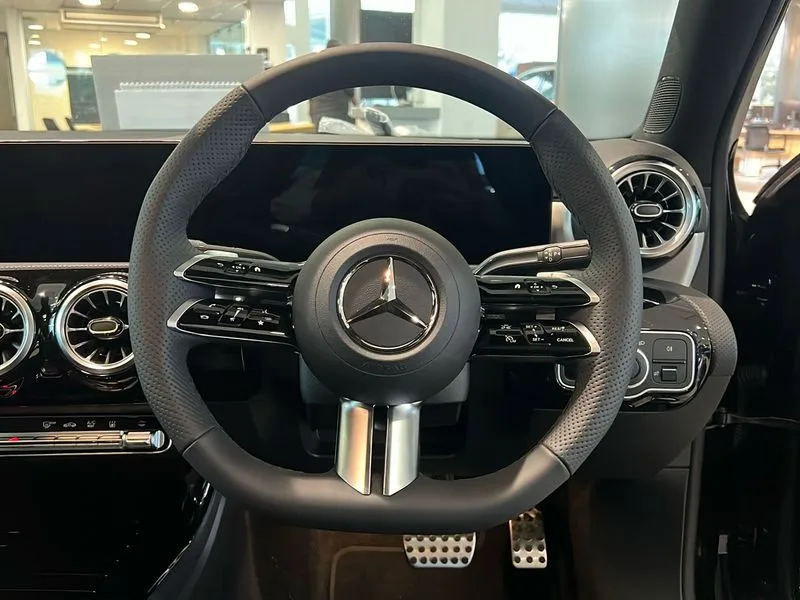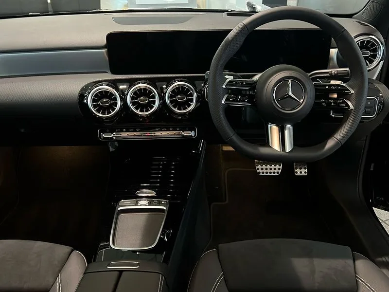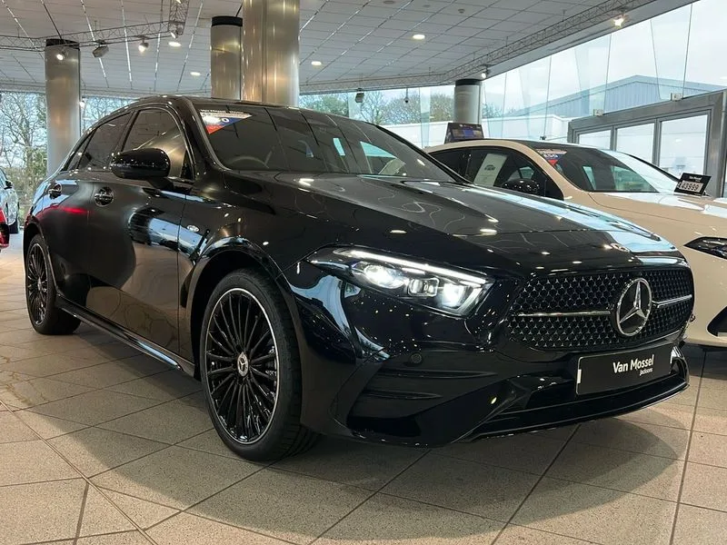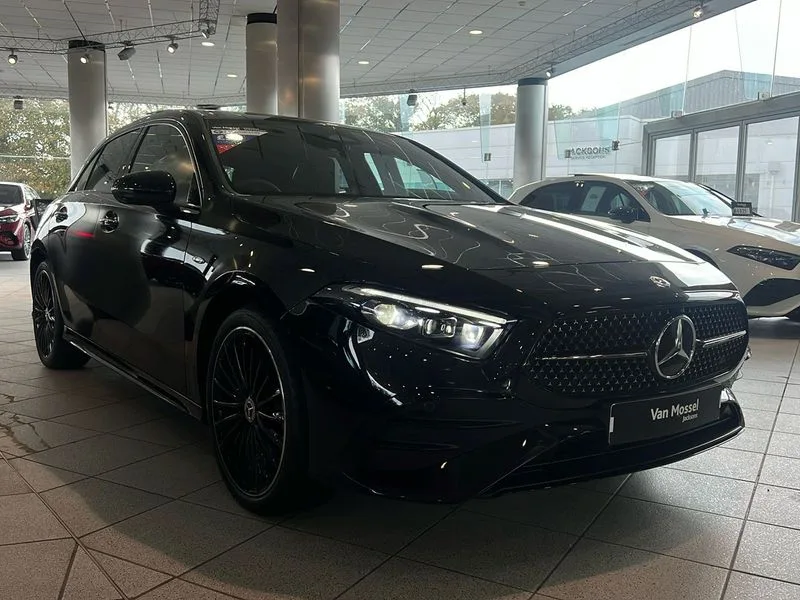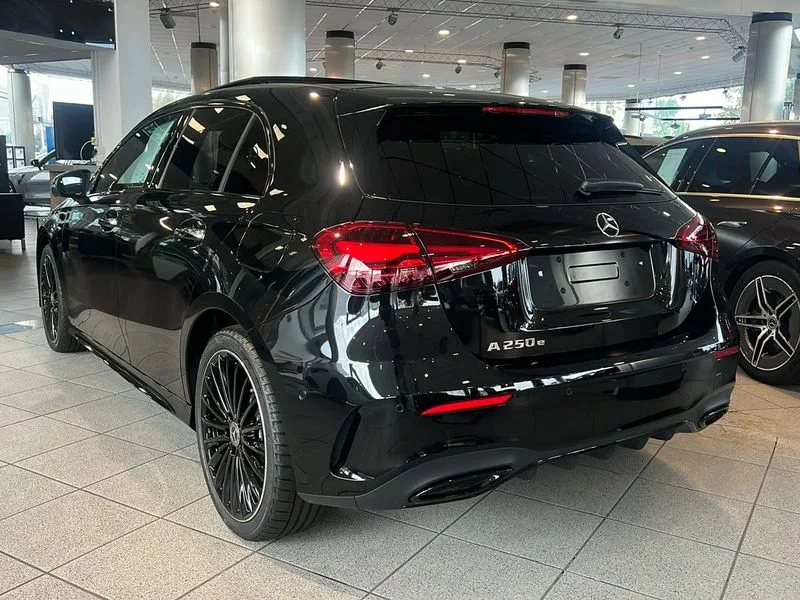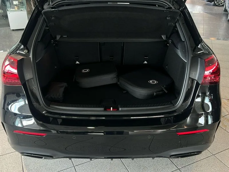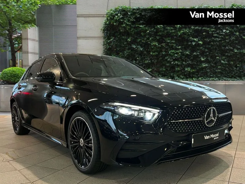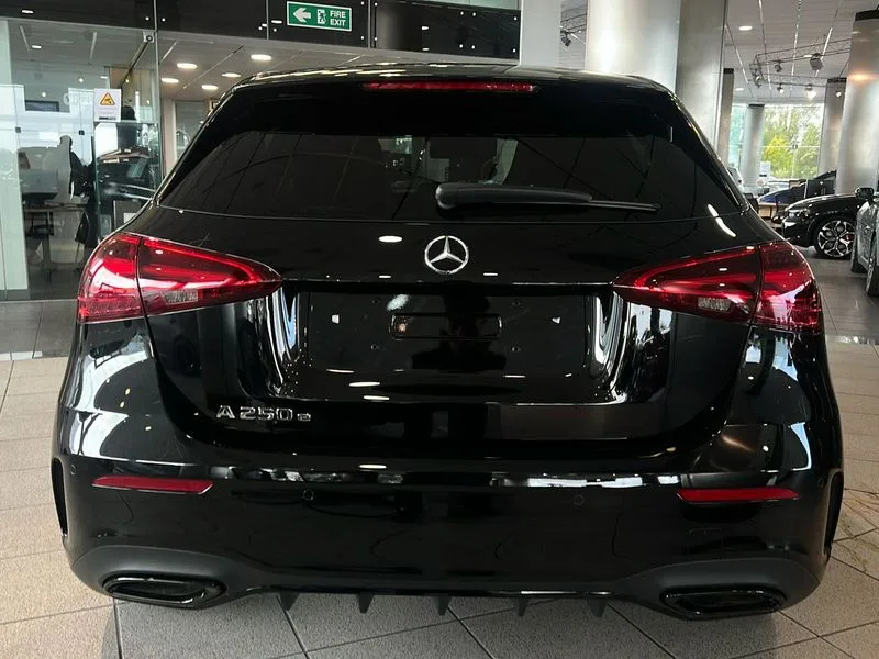 • Mercedes-benz A Class Hatchback A250e AMG Line Premium Plus 5dr Auto - Finished In Cosmos Black Metallic Paint with Black Artico Vegan Leather/ /microcut microfibre Sports Seats • 10.25 inch touchscreen central media display • 10.25" Digital instrument cluster display screen • Acoustic ambient protection • Attention assist • Brake pad wear indicator warning light • Car wash mode • Direct steering • Direction indicators with lane change function • Dual bluetooth interfaces • DYNAMIC SELECT with a choice of driving modes (ECO, Comfort, Sport and Individual) • ECO start/stop function • Engine start/stop button • Fluid level warning indicator for fuel, oil, coolant and washer fluid • Fluorescent jacket for driver • Hard-disk navigation • Head up Display • Hey Mercedes Voice activation • Lamp failure indicator • Mercedes me connect including emergency call system, accident recovery, breakdown and maintenance management • Mercedes me remote services • Outside temperature gauge • Owners manual in English • Pre-installation of private car share • Remote and charging services plus • Remote boot closing • Service indicator (ASSYST) • Smartphone integration with Apple CarPlay and Android auto • Speed sensitive power steering • Tailgate • Traffic sign assist • Trip computer in multifunction display with current consumption indicator • Wireless charging • DAB Digital radio • MBUX multimedia system • Mercedes Benz advanced sound system (225 W) with 10 speakers, 1 central speaker, speakers on doors, a tweeter on door,one sub woofer + boost amplifier • 4 Electric Front and Rear windows • Adaptive brake lights • AMG body styling - AMG front apron with front splitter and AMG rear apron and visible exhaust tailpipe trim elements • Body colour bumpers • Body colour door handles with chrome inserts • Body colour side skirt • Chrome beltline strips • Diamond radiator grille with pins in fine star pattern • Electric adjustable and heated door mirrors with integrated LED side indicators • EQ Hybrid badging • Exhaust system with 2 visible tailpipe trim elements and rear apron • Headlamp assist automatic headlamp activation • Heated glass rear windscreen + timer control • LED daytime running lights • LED High level third brake light • LED tail lamp • Multibeam LED headlamps with adaptive highbeam assist and cornering function • Panoramic sliding sunroof • Privacy glass • Radio aerial • Rain sensing windscreen wipers with two sensitivity settings • Rear fog lights • Rear side wing doors • Rear windscreen wiper • 3 seat bench in 2nd row • 3 Spoke flat bottom leather multi function steering wheel with perforated leather in grip area • 40:20:40 split folding rear seats • Air conditioning - Two zone thermotronic luxury automatic climate control with display • AMG floor mats • Artico man-made leather/Microcut microfibre upholstery • Automatic child seat recognition sensor • Black air vents with surround in silver chrome • Black roof lining • Brushed stainless steel sports pedals with rubber studs • Charging socket • Electrically adjustable front memory seats including lumbar support and backrest inclination • Front centre armrest with stowage • Front seat backs luggage nets • Galvanished gear shift paddles on steering wheel • Height/reach adjustable steering column • Illuminated Mercedes Benz lettering front door sills with changeable cover • Interior lighting - 64 colour Ambient lighting • Interior mirror with reading lamps in black and frameless • Pre-entry climate control • Rear armrest with 2 cupholders • Rear head restraints • Seat occupancy sensor for front passenger seat • Single front passenger seat • Sports seats with integrated headrests • Stowage compartment in centre console with retractable cover • Sunvisors with illuminated vanity mirrors • Twin front cupholders • Charging system - AC charging system rated at 11kW • Charging system - DC charging system rated at 22 kW • Comfort suspension • Mode 2 charging cable for domestic socket with 5m up to 1.8kW • Mode 3 charging cable for wallbox and public charging stations with 4m upto 22 kW • Light and sight package - A Class • Mirror package - A Class • Night pack - A Class • Parking pack with 360 degree camera - A Class • Seat comfort pack - A Class • USB pack plus - A Class • Winter pack - A Class • 3 rear 3 point seatbelts • ABS with Brake Assist • Active bonnet • Adaptive brake assist with hold function and hill start assist • Bonnet with power domes • Childproof locks manually operated for rear doors and electrically operated for rear power windows • Crash responsive emergency lighting • Driver and passenger head and side airbags • Drivers knee airbag • Dual stage driver/passenger airbags • Electronic parking brake • ESP curve dynamic assist • ESP with ASR • Exit warning • Front and rear seatbelt reminder • Grey seatbelts • ISOFIX and top tether child seat fixing points in two outer rear seats • Perforated front brake discs • Radar based regeneration • Tyre pressure monitoring system • Warning triangle and first aid kit • Window airbags • Alarm system/interior protection/immobiliser • Guard 360 degree vehicle protection • Keyless entry lock/unlock • Keyless Go • Remote central locking and crash sensor with emergency opening function • Light longitudinal grain aluminium trim • 19" AMG multi-spoke light alloy wheels,aerodynamically optimised, painted in black with high sheen rim flange • Summer tyres • Tirefit sealant kit