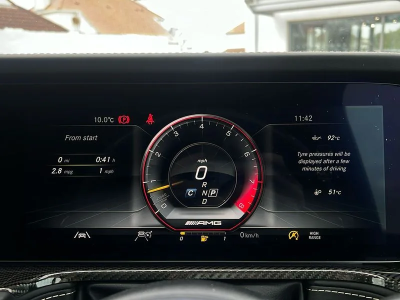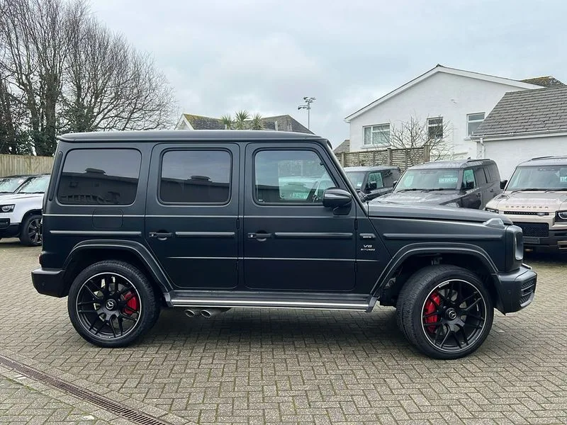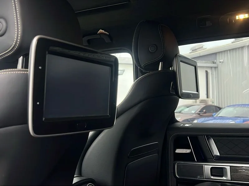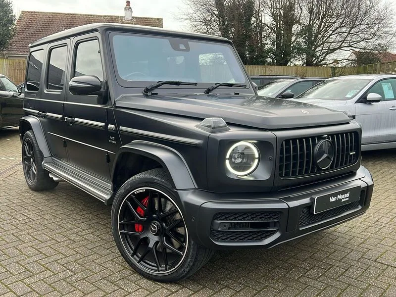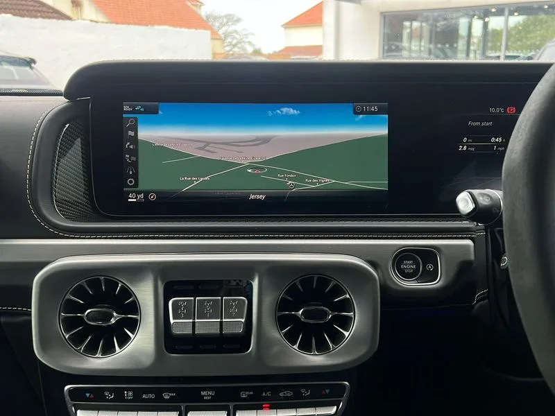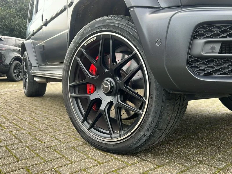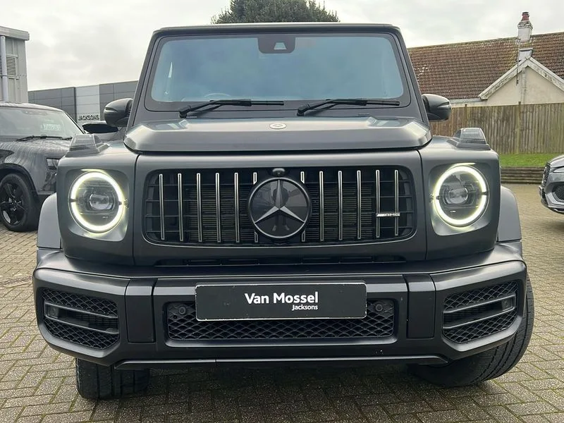 • 360 degree parking camera • Active lane keep assist • AMG DYNAMIC SELECT with ECO start/stop and 5 modes (comfort, slippery, sport, sport+ and manual) • AMG instrument cluster with dual bonded 12.3" widescreen displays • AMG specific IWC design analogue clock • Attention assist • Bluetooth interface for hands free telephone • COMAND online HDD Nav with media interface, radio/CD/DVD/MP3, 12.3" screen, linguatronic voice control • Communications module (LTE) • Mercedes connect me • Mercedes-Benz emergency call • Parking assistance PARKTRONIC • PAS • Preinstallation for rear seat entertainment • Service indicator (ASSYST) • Smartphone integration with Apple CarPlay and Android auto • Touch pad controller for COMAND online • Traffic sign recognition • Trip computer • Aux-in socket • Burmester surround sound system with 16 speakers • DAB digital radio module • 3rd brake light • Adaptive highbeam assist plus - automatic low high beam switching • AMG bodystyling with exclusive Mercedes AMG G 63 front aprons with cooling air intakes and AMG flared wheel arches in vehicle colour • AMG performance exhaust system, selectable ,left and right two chrome trimmed twin tailpipes • Automatic headlamp activation • Automatically dimming rear view mirror • Dark tinted heat insulated glass • Door mirror memory • Door mirrors - Electrically adjustable/heated/integrated indicators, front area lighting and automatically dimming driver's mirror • Electric sunroof sliding, with one-touch opening • Front and rear electric windows • Heated windscreen • LED daytime running lights • LED tail lights • Multibeam LED headlights with anti-dazzle feature • Privacy glass - Dark glass from B-pillar backwards • Rain sensor windscreen wipers • Rear side wing doors • Rear wiper • Running boards • Stainless steel spare wheel cover • Tail lights featuring LED technology • Trailer coupling with ESP trailer stabilisation • V8 BITURBO lettering • 1/3 to 2/3 split folding rear seats • 12V socket in centre console, rear and load compartment • 2 cup holders in front and rear • 3 seat bench in 2nd row • 3 spoke flat bottom AMG performance steering wheel in carbon fibre/DINAMICA microfibre • Ambient lighting with 64 colours and projection of brand logo • AMG floor mats with AMG lettering • AMG metal badge on front seat backrest • AMG steering wheel buttons • Centre armrest between front seats with integrated stowage compartment • Designo dinamica microfibre roof lining in Black • Door centre panels, door trim, armrests in doors with nappa leather • Electric front headrests with memory • Electric front seats with memory function • Electrically adjustable steering column, with automatic adjustment for entry/exit • Front centre armrest with storage compartment • Heated front seats • Heated rear seats • Heated steering wheel • Illuminated AMG door sill panels in brushed stainless steel • Ionisation of interior air including fine particle activated charcoal filter system • Load protection net • Luggage compartment cover • Memory for steering wheel • Rear head restraints • Rubber mat for load compartment • Silver air vents • Silver chrome steering wheel trim with AMG lettering + silver aluminium shift paddles + 12 o clock marking and touch control buttons • Single front passenger seat • THERMOTRONIC automatic climate control • 4MATIC permanent four wheel drive • AMG Ride Control suspension • AMG SPEEDSHIFT 9G Tronic sports transmission with cruise control and variable speed limiter • Differential lock • Electronic selectable low range gearing • Low range gear reduction (Electronically selectable while driving) • Petrol Particulate Filter • Driving assistance pack - G Class • Stowage space pack - G class • 3x3 point rear seatbelts • ABS with Brake Assist • Active brake assist • Adaptive brake with hold finction, priming and dry parking in the wet • Airbags - windowbags • AMG high performance braking system with internally ventilated and perforated brake discs • Driver/Front Passenger airbags • Electronic four wheel traction control • ESP with ASR • Front side airbags • Hill start assist • i-Size and ISOFIX rear child restraint system • Pre-safe system for anticipatory occupant protection • Rear door child safety locks • Rear side airbags • Red painted AMG brake calipers • Seat belts, 3-point design in black • Seatbelt pretensioners • Tyre pressure monitoring system • Anti-theft alarm system/interior protection with tow-away protection and interior monitoring systems • Immobiliser • Keyless Go access/ignition system • Remote central locking • AMG carbon fibre trim • Full size spare wheel