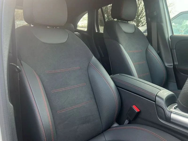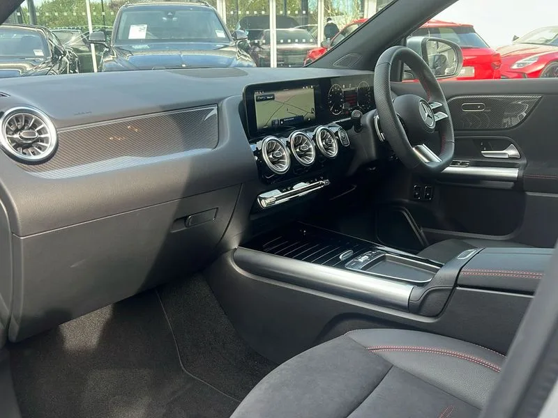 • 10.25 inch touchscreen central media display • 10.25" Digital instrument cluster display screen • Acoustic ambient protection • Attention assist • Blind spot assist • Direct steering • Driver monitoring camera • DYNAMIC SELECT with a choice of driving modes (ECO, Comfort, Sport and Individual) • ECO start/stop function • Fluid level warning indicator for fuel, oil, coolant and washer fluid • Hard-disk navigation • Hey Mercedes Voice activation • Lamp failure indicator • Lane keeping assist (LKA) • Mercedes me connect including emergency call system, accident recovery, breakdown and maintenance management • Mercedes me remote services • Multi function trip computer • Outside temperature gauge • Owners manual and service booklet in English • Pre-installation of private car share • Radio aerial integrated into front and rear windshields • Remote and charging services plus • Service indicator (ASSYST) • Smartphone integration with Apple CarPlay and Android auto • Speed limit assist • Wireless charging • Bluetooth connectivity including audio streaming • DAB Digital radio • MBUX multimedia system • Mercedes Benz sound system (100 W) with 6 speakers • Adaptive brake lights • Adaptive highbeam assist • Aluminium roof rails • AMG front apron with front splitter in the colour of the vehicle with chrome trim element • AMG rear apron with visible tailpipe trim and chrome trim element • AMG specific/dual flow exhaust pipes in chrome (non-functional) • Automatic headlamp activation • Beltline trim and window line trim strip in high gloss aluminium • Black grained side sill trim with chrome inlay • Car wash function • Dark privacy glass from B-pillar backwards • Electric front windows • Electric rear windows • Electrically adjustable and heated door mirrors with integrated LED indicators • Exhaust system with 2 Visible tailpipe trim elements and rear apron with trim in chrome • Heat insulating dark tinted glass • Heated glass rear windscreen + timer control • Interior mirror with black reading lamps and frameless • LED high performance headlamps with integrated LED daytime running lights • LED tail lights • LED third brake light • Rain sensor windscreen wipers • Rear fog lights • Rear side wing doors • Rear wiper • Wheel arch liners in the colour of the vehicle • 3 seat bench in 2nd row • 3 spoke flat bottom multifunction nappa leather steering wheel • 4 way lumbar support • 40:20:40 split folding rear seat backrests • Adjustable head restraints • Air conditioning - air vents with silver chrome surround • Air conditioning - One zone THERMATIC automatic climate control with automatically controlled air distribution • AMG floor mats • Artico man-made leather/Microcut microfibre upholstery with red contrast stitching • Auto Mercedes-Benz child seat recognition sensor • Black roof lining • Charging socket • Courtesy light in boot • Fluorescent jacket • Front centre armrest with stowage • Galvanished gear shift paddles on steering wheel in silver chrome • Heated front seats • Illuminated glovebox • Interior lighting - 64 colour Ambient lighting • Luggage net on driver/front passenger seat backrest • Manually height and reach adjustable steering column • Pre-entry climate control • Single front passenger seat • Sports pedals in brushed stainless steel with black rubber studs • Sports seats • Sports steering wheel • Stowage compartment in centre console • Stowage compartment with retractable cover • Sunvisors with illuminated vanity mirrors • Twin front cup holders • Two outer rear seat isofix and top tether child seat fixing points • 4m charging cable for wall box/public charging stations(mode 3) • Charging system - AC charging system rated at 11kW • Charging system - DC charging system rated at 22kW • Comfort suspension • Rear axle torsion beam • Comfort seat pack - GLA Class • Interior lighting with light and sight pack - GLA • Keyless go comfort package - GLA • Mirror pack - GLA Class • Parking package with reversing camera - GLA • USB package plus - GLA • Winter package - GLA • 3 rear 3 point seatbelts • ABS with Brake Assist • Active bonnet pedestrain safety measure which detects an impact and raises bonnet by 65mm • Active brake assist includes forward collision warning system with autonomous braking • Adaptive brake assist with hold function and hill start assist • Black seatbelts • Bonnet with power domes • Brake pad wear warning indicator • Childproof locks manually operated for rear doors and electrically operated for rear power windows • Crash responsive emergency lighting • Driver and passenger head and side airbags • Drivers knee airbag • Dual stage driver/passenger airbags • Electronic parking brake • ESP curve dynamic assist • ESP with ASR • Front and rear seatbelt reminder • Front brake callipers with Mercedes Benz logo lettering on front • Front brake discs internally ventilated and perforated • Front passenger seat occupancy sensor • Radar-based recuperation • Sports braking system • Tyre pressure monitoring system • Warning triangle and first aid kit • Window airbags • Alarm system with immobiliser and interior protection -Thatcham category 1 • Guard 360 degree vehicle protection • Remote central locking and crash sensor with emergency opening function • Light longitudinal grain aluminium trim • 19" AMG 5 twin spoke light alloy wheels aerodynamically optimised,painted in high-gloss black and with a high-sheen finish RTG • Summer tyres • Tirefit tyre sealant kit