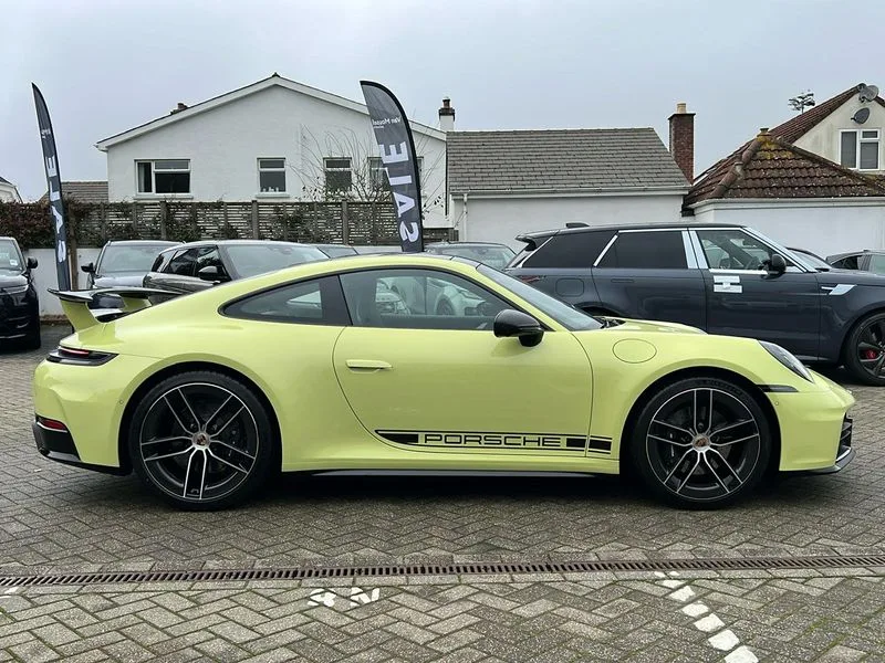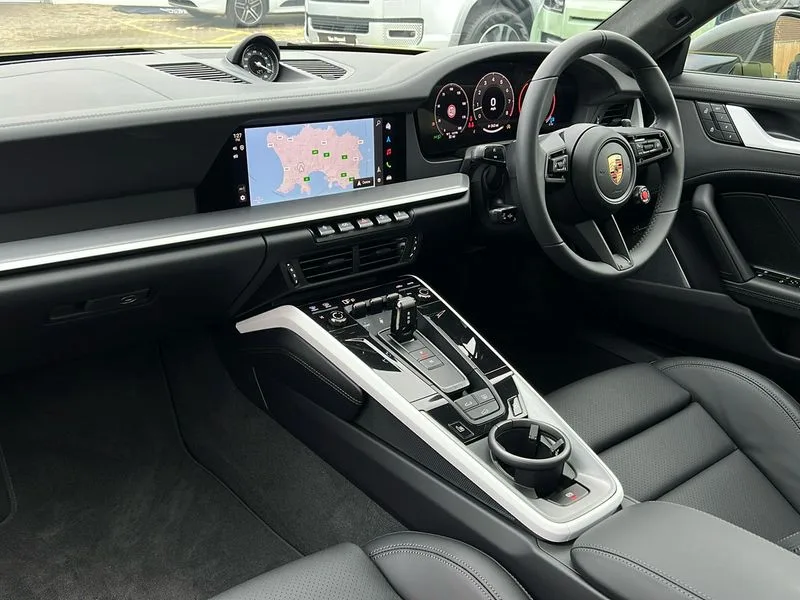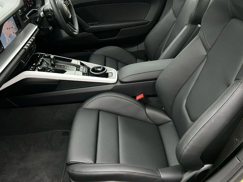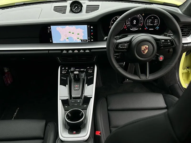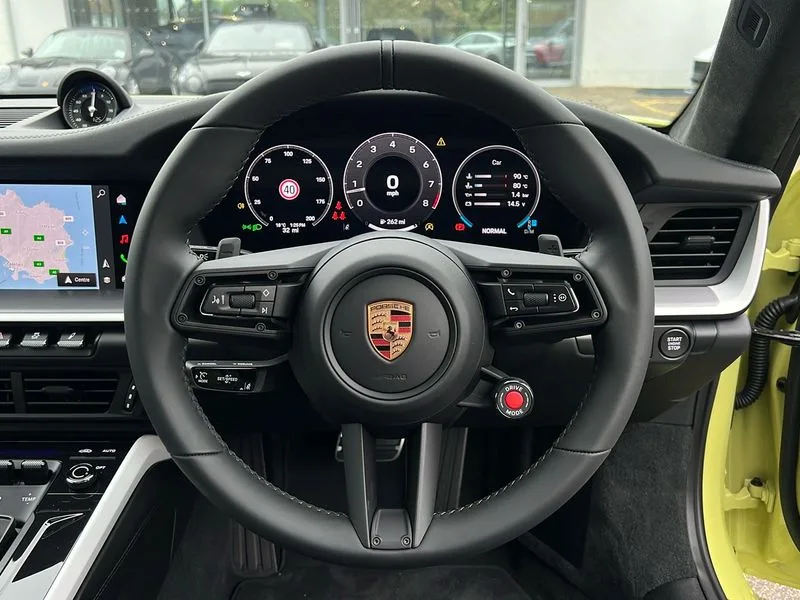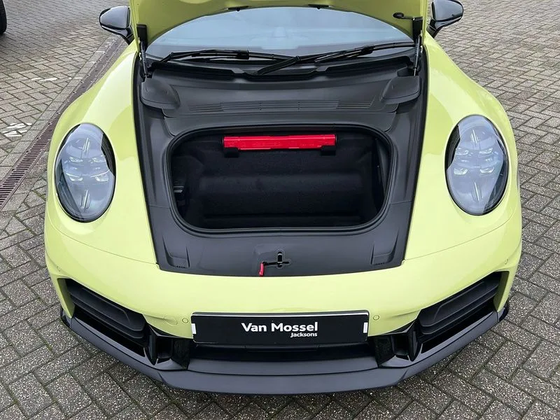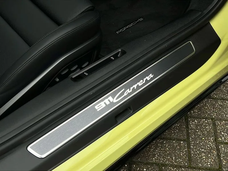 • 1 9921B2 911 Carrera • 2 D9 Cartagena Yellow Metallic • 3 AX Leather interior, Black • 4 0NA Deletion of Model Designation • 5 0P9 Sports exhaust system (tailpipes in Black) • 6 1N3 Power Steering Plus • 7 2PJ Heated GT Sports Steering Wheel Leather • 8 2W6 Exclusive Design Fuel Filler Cap • 9 3FE Electric slide/tilt glass sunroof • 10 3J7 Porsche Crest on Headrests • 11 3S4 Preparation for roof transport system • 12 3UG Rear Seats • 13 40X 20-/21-inch Carrera Exclusive Design Wheels with Carbon Blad • 14 4GP Windscreen with grey top-tint • 15 6FQ Exterior Mirror Upper Trims Carbon • 16 6NN Roof lining in Race-Tex • 17 7Y8 Lane Change Assist • 18 8JU Tinted HD-Matrix LED Main Headlights • 19 8LH Sport Chrono Package incl. Porsche Track Precision App & tyr • 20 8VH Exclusive Design Taillights • 21 9VJ Burmester® High-End Surround Sound System • 22 AMH Decorative Side Logo 'PORSCHE' black • 23 FT3 Surround View with Active Parking Support • 24 P0B Brushed Aluminium Interior Package with accent in Ceramica • 25 Q1J Adaptive Sports seats Plus, electrical 18-ways with memory p • 26 QJ4 Side Window Trims painted in Black (high-gloss) • 27 UD1 #PORSCHE# Logo LED Door Courtesy Lights • 28 VM3 Aerokit painted in Black (high-gloss) • 29 VT2 Door Sill Guards brushed Aluminium in Darksilver, illuminate • 30 VW4 Lightweight and noise insulated glass • Apple CarPlay • Automatic start/stop system • Driver awareness detection • Emergency call systems eCall and bCall • Gear indicator in rev counter • Lane keep assist • Navigation High • Smartphone compartment with wireless charging up to 15 W • Sports and WET Mode • Stationary management with HOLD function • Traffic sign recognition • Voice control • Warn and brake assist including pedestrian protection • DAB Digital radio • 3rd brake light • Automatic headlight activation including welcome home lighting • Automatically dimming interior and exterior mirrors with integrated rain sensor • Badge on air intake grille • Door handles painted in exterior colour • Electric folding door mirrors with courtesy lights • Fuel/charging cover • Heated rear windscreen • LED daytime running lights • Model designation on rear trim in Light silver • Rear boot • Rear diffusor in louvered design • Rear lid grille with vertical slats in high gloss black • Trim on side skirts in black • Windscreen washer system with aero wiper blades and washer jets • 2-seater with rear engine layout • Delete quilting • Deletion of model logo embossed on headrests • Driver and front passenger illuminated vanity mirrors • Front head restraints • Heated front seats • ISOFIX fastening system • Leather door panel and central armrests • LED footwell lights • LED glove compartment lighting • LED ignition light • LED luggage compartment lighting • LED orientation light • LED reading lights • Lockable glove compartment • Particle/pollen filter with active carbon filter • Single front passenger seat • Steering wheel with manual fore/aft and height adjustment • Two zone auto climate control • USB-C fast charging • 3.0 liters 6-cylinder boxer engine with twin-turbo • 63 litre fuel tank • 8 Speed Porsche Doppelkupplung (PDK) • Porsche Active Suspension Management (PASM) • Rear wheel drive • Two gasoline particulate filter • Light design package - 911 • 3 point automatic seatbelts • Airbags • Brake system with brake calipers in black • Electric parking brake • Passenger airbag deactivation • Pedestrian safety • Seat belt warning system for driver and front passenger and rear seat system • Seatbelt pretensioners • Tyre pressure monitoring system • Warning triangle • Alarm system with interior surveillance • Alcohol interlock preparation • Anti-theft wheel bolts • Comfort access system • Keyless drive • Porsche vehicle tracking system (PVTS Plus) • Preparation for Porsche Dashcam • TPM valve in silver • Tyre sealing compound and electric air compressor kit