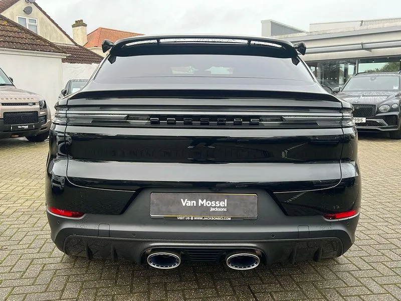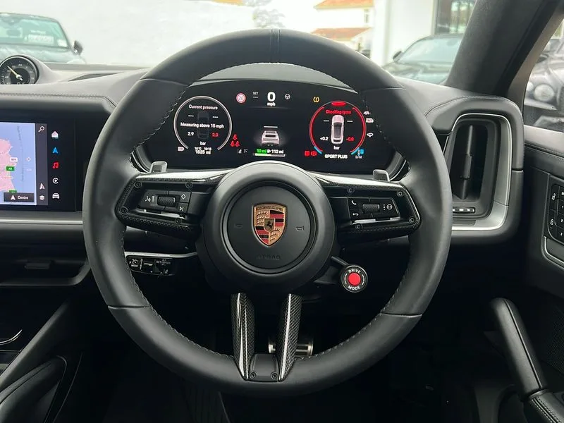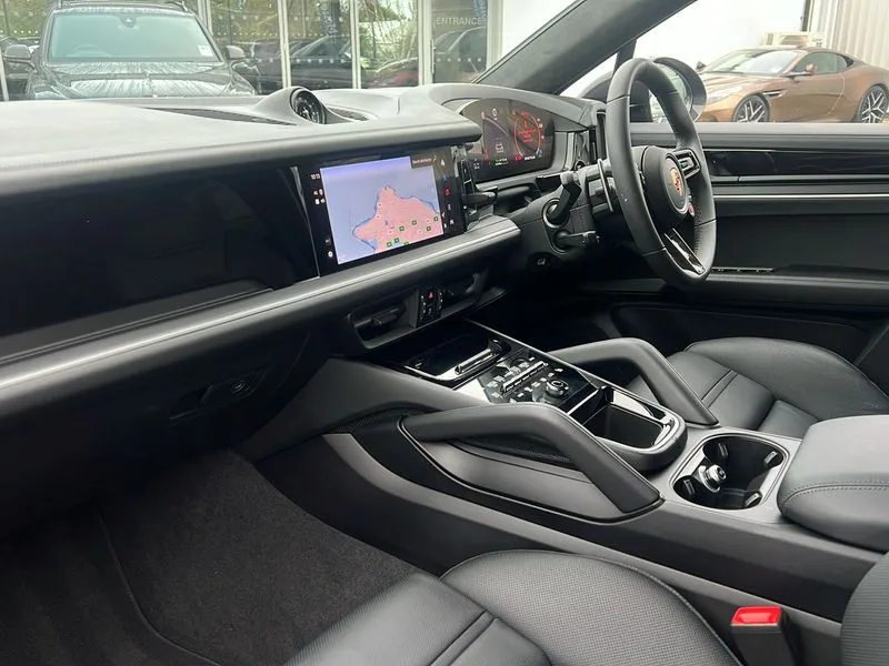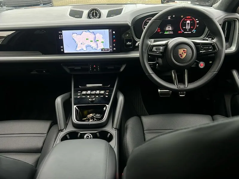 • Active parking assist and 360 camera • Active speed limit assist • Android Auto • Apple car play • Auto start/stop function and coasting • Brake pad wear indicator • Driver awareness detection • Driver personalisation for climate, audio and communication, assistance systems and other customisable car systems • E-call • Energy recuperating braking system • High resolution 12.3-inch touchscreen display in full HD resolution • Individual mode for individual selection of vehicle drive settings • Instrument cluster with 12.6" curved display • Instrument cluster with two high-resolution displays • Mobile phone preparation with Bluetooth interface for telephone and music • Mode switch • Porsche Communication Management (PCM) including online navigation module, mobile phone preparation, audio interfaces and voice control system • Power steering plus • Power tailgate • Reversible occupant protection measures • Smartphone integration • Speed limit indicator • Tailgate • Vehicle electrical system recuperation • Warn and brake assist including pedestrian protection • AM radio • Digital radio • Fast charging two USB-C PD connectivity and charging port in front storage compartment • Smartphone compartment with wireless charging • Two USB-C PD charging ports in the rear • Active air intake flaps • Air intake slats with inlays in high gloss Black • Auto dimming interior + exterior mirrors • Automatic headlight activation including welcome home functionality • Bumper system with high strength cross members and two deformation elements + Two receptacles with screw threads towing lug + onboard tool kit • Deletion of GTS logo on sideskirt inlays • Door handles painted in exterior colour • E-Hybrid logo on front wings with border in black • Electric windows + anti trap protection + one touch open/close drivers side • Electrically adjustable, folding and heated exterior mirrors, aspherical on drivers side including courtesy lights • Extensive aerodynamic underbody protection • Four point signature LED daytime running lights • Front end with integrated air intakes and airblades for the side air intakes • Front light modules including position lights and direction indicators in LED light guide technology • Front windscreen wipers with two speeds, intermittent wipe and rain sensor • Fully galvanised steel / aluminium hybrid lightweight bodyshell and Aluminium bonnet, tailgate, doors, side panels, roof and front wings • Heated rear window with automatic switch off • LED High level third brake light integrated into roof spoiler • Lightweight carbon roof • Lower valance • Porsche active aerodynamics (PAA) with adaptive roof spoiler • Porsche logo integrated into rear taillight strip • PORSCHE' lettering integrated in tailgate strip • Preparation for the roof transport system • Rear side wing doors • Rear window wiper with intermittent function and washer jet • Right fuel filler cover and left charging port cover • Roof spoiler painted in high gloss black • Side window trims high gloss black • Sport chrono stopwatch instrument dial and digital tachometer dark silver • Sport design carbon exterior mirror upper trims • Sport Design sideskirts • Sports exhaust system including titanium central tailpipes • Tinted HD matrix LED headlights • Wheel arch extensions in satin black • 2 seat bench in 2nd row • Ambient lighting • B-pillar clothes hooks on driver and passenger's side • Charge air cooling • Door interior with decorative surfaces and accent trims • Electric sound • Elevated centre console with handles • Front and rear bottle holders in door panels • Front head restraints • Heated front and rear seats • Height adjustable rear headrests • Illuminated make-up mirror in sun visors • Integrated front headrests • Isofix fastening system for child seats on outer rear seats • Leather door panel and central armrests • Leather gear selector • LED interior light with switchoff delay function, footwell + glove compartment light, ashtray + ignition lock illumination, front + rear reading light • Manual height adjust for driver and front passenger seat belt • Manual steering column with angle and reach adjustment • Particle/pollen filter with active carbon filter • PM 2.5 fine dust filtering • Race-Tex roof lining • Rear seat split folding design 40:20:40,Fold out centre armrest with integrated cup holder,manual fore/after adjust and backrest angle adjust • Rigid luggage compartment cover • Single front passenger seat • Soft close doors • Sports rear seat system • Stainless steel pedals • Storage compartments - Cooled glove compartment, front centre console, door and map pockets on front seat backrests + side luggage compartment • Sun visors for driver and front passenger • Three 12V power sockets - front below the glove compartment, centre console and at side of luggage compartment • Two integrated cup holders in front and rear with variable diameter • 11 kW on board AC charger • 32A 230V blue industrial supply cable and basic wall mount • 70 litre fuel tank • 8 speed automatic gearbox • Aluminium cylinder heads and engine block • Battery • Direct fuel injection (DFI) with central injector position • Front and rear aluminium multi link axles • Gasoline particulate filter • GTS Adaptive air suspension with Porsche Active Suspension Management (PASM) • Lithium-ion battery • Mode 3 charging cable • Porsche Torque Vectoring Plus (PTV Plus) • Sport mode • Standard charging cable length • Supply cable for domestic electrical socket (10A) • Twin turbocharger • VarioCam Plus • Water cooled with thermal management • Black sport design package - Cayenne • Driver memory pack - Cayenne • High gloss black exterior package - Cayenne • Sport Chrono Package including sports response button in red - Cayenn