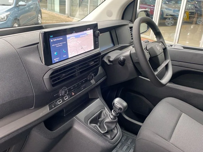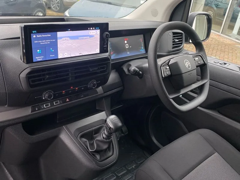 • 10" digital instrumental cluster • Citroen connect box with emergency and assistance system • Driver Attention Alert, level - 3 • Electronic power steering (EPS) • Intelligent speed assistant • Lane keeping assist • Locking fuel cap • Multi-function on-board trip computer • Rear parking distance sensor • Rev counter with maintenance and gear efficiency indicators (GEI) • TPMS (Tyre pressure monitoring system) • 10" Colour touchscreen + Citroen connect DAB radio, Apple CarPlay and Android Auto, Bluetooth handsfree, USB socket, bituner, coffee break alert • Audio controls mounted on steering wheel • Flexible multi-functional short antenna (200mm) • Two speakers and two tweeters • Automatic headlamps on/off • Automatic two speed and intermittent front wipers • Eco LED headlamps with integrated daytime running lights • Electrically adjustable + heated door mirrors • Front electric windows with one touch operation and anti-pinch • Front windows tinted to 30 percentage opacity • High beam assist • High level third brake light • Laminated acoustic windscreen • Offside and nearside sliding side access doors • Painted decor strips • Painted exterior door handles • Painted front bumpers • Painted rear bumper • Preparation for towbar-wiring and connector for towbar interface • Rain sensitive windscreen wipers • 12V socket in cabin • 12V socket in lower glove box (1 only in cabin) • Air recirculation facility • Chilled glovebox facility • Closed upper and open lower gloveboxes • Cloth upholstery • Cup holders for driver and passenger in top of dashboard • Dashboard storage areas • Ergonomic 6-way adjustable driver's seat with reach, rake, height and lumbar adjustment • Fixed floor mounted load restraint lashing eyes x6 • Front door pockets with 1.5L bottle holder • Hard plastic floor protection in cabin • Height adjustable head restraints for driver and front passengers seats • Height and reach adjustable steering wheel • Interior roof trim • Load through bulkhead and dual front passengers bench seat with under seat storage tray • Manual air conditioning • Overhead console with 1 ceiling lamp (dome type and 3 lamps) • TPO plastic flooring • USB socket in cabin (dashboard) • Connected nav pack with dynamic surround view - Dispatch • Automatic fuel cut-off and door unlocking in event of accident • Door opening warning and audible lights on warning • Driver and front passenger's airbags with passenger's airbag deactivate switch • Height-adjustable 3-point pre-tensioner seat belts with force limiter • Unfastened seat belt warning for driver and passengers • Dashboard mounted central locking push button and auto locking above 7mph • Perimeter and volumetric thatcham category 1 approved alarm • Remote central locking with deadlocking, selective cab and load area locking via 3 button plip remote control key • Rolling code transponder immobiliser • ABS • Advance emergency braking system • EBA • Electronic brake force distribution (EBFD) • ESC • Hill start assist • Mistral black dashboard trim with liquid paladium center decor • Michelin Agilis tyres - 215/60 R17C