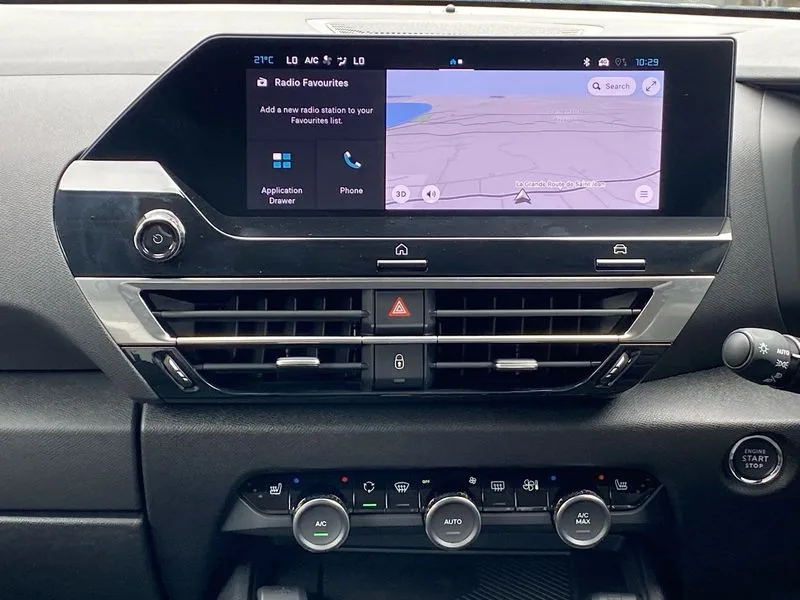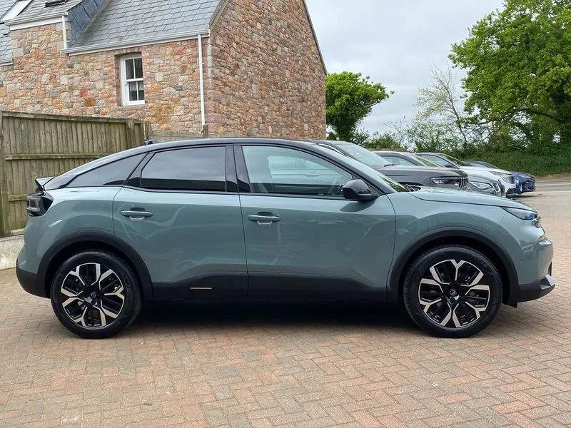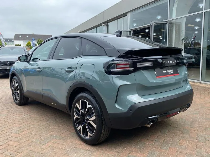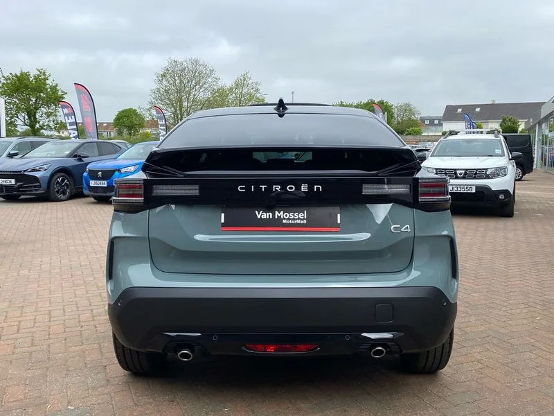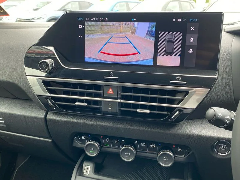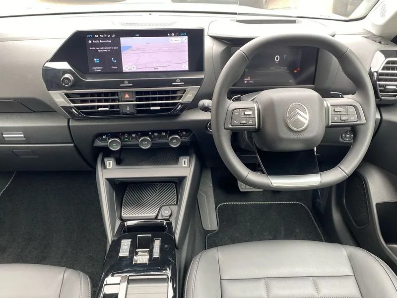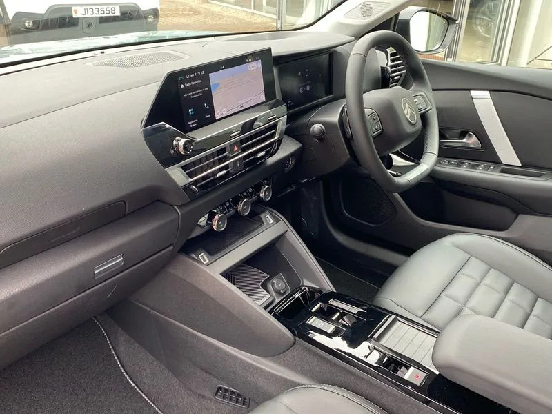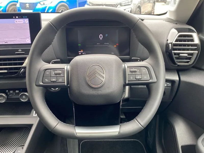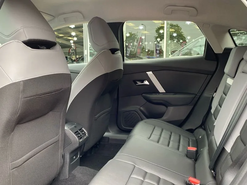 • 5.5 inch backlit full TFT driver's instrument cluster with LED ambient lighting • Active blind spot detection • Apple car play and Android auto • Citroen connect box emergency and assistance system • Citroen Smart Pad Support - integrated support for attaching a tablet computer for front passenger • Cruise control + speed limiter • Driver's head-up display • Electronic Power Steering (EPS) • Front, rear and lateral parking sensors • In-crash braking • My Citroen Drive Plus: 10" high-resolution touchscreen user interface, controlling media, connectivity, vehicle settings + connected nav • Tailgate • Top rear vision reversing camera • Voice commands • 6 speakers • Bluetooth telephone and audio streaming • DAB Digital radio • 3rd brake light • Automatic headlights • Body colour bumpers • Body colour door handles • Boot spoiler • C-Series badging on front wing • Dark tinted rear windows and side windows with chrome detail • Electrically heated, folding and adjustable external rear view mirrors with courtesy lighting • Electrochrome interior rear-view mirror with automatic day-night switching • Front and rear electric windows • Gloss black rear skirt • Intelligent beam headlights • LED daytime running lights in V signature • LED front fog lamps with static cornering function • LED front headlamps • Perla Nera black painted external rear view mirrors • Rain sensing automatic front windscreen wipers • Rear side wing doors • Rear wiper • Shark fin roof aerial • Welcome and goodbye lighting • 12V power outlet, 1x USB Type-C socket & data connection, 1x USB Type-A socket at 1st row + 1x USB Type-A socket , 1x USB Type-C socket in 2nd row • 3 rear headrests • 3 seat bench in 2nd row • Alcantara and black leather effect textile seats • Boot light • Dashboard tray in front cabin • Deluxe leather steering wheel with two command blocks • Driver and passenger sunvisors with illuminated vanity mirrors • Dual zone automatic air conditioning • Electrically heated front seats • Front and rear LED interior lighting • Front head restraints • Heated steering wheel • Height adjustable driver's seat with adjustable lumbar support • Height adjustable front passenger seat • Height and reach adjustable steering wheel • Map pockets in rear of front seats • Raised centre console with armrest and two cup holders • Rear central folding armrest with cupholders and ski hatch • Single front passenger seat • Split folding rear seats • Two position boot floor • XXL storage in front cabin • Advanced comfort suspension - double hydraulic stops on front and rear suspension • High level acoustic insulation pack - C4/C4 X/e-C4 X • Safety pack plus - C4/C-Series Edition/Max • 3x3 point rear seatbelts • ABS • Driver and front passenger airbags • Electric parking brake • ESP • Front seatbelt pretensioners • Hill start assist • Manual child lock in second row • Manual deactivation of front passenger airbag • Row 1 and 2 curtain airbags • Row 1 side thorax airbags • Seatbelt unfastened on the move warning • Tyre underinflation detection • Anti-theft alarm (volumetric protection) • Immobiliser • Keyless entry and start • Remote locking with deadlocks • 18" Bi-tone diamond-cut aeroblade alloy wheels with anti-theft locking wheel nuts • Puncture repair kit with compressor