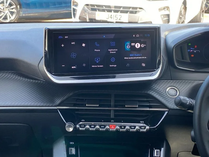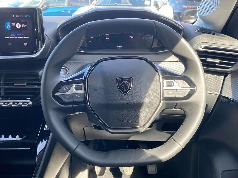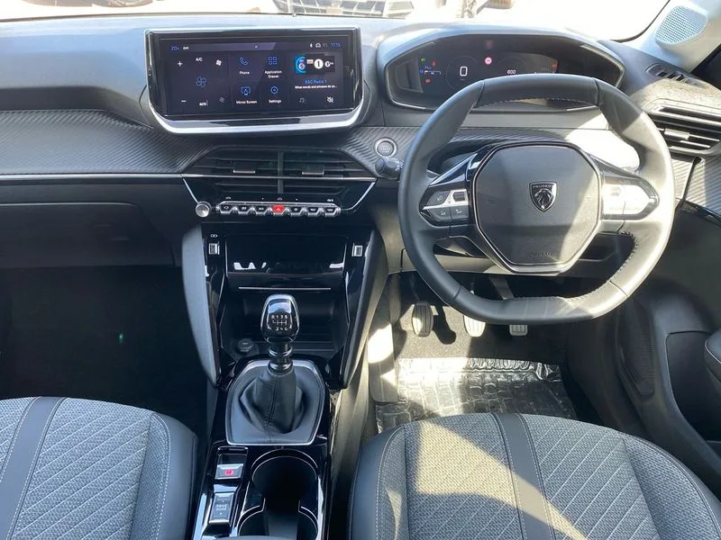 • Bluetooth telephone facility • Drive mode selection(Eco/Normal) • Driver attention warning • Emergency call service • Exterior temperature indicator with ice warning • Front and rear parking sensors • Lane keep assist • Multi function trip computer • PEUGEOT i-Cockpit with 10" configurable colour head up instrument panel • PEUGEOT i-Cockpit with 10" HD capacitive colour touchscreen • PEUGEOT i-Cockpit with compact steering wheel • PEUGEOT SOS and assistance • Push button start • Smart phone docking station • Speed limit recognition and recommendation • Start/stop system • Wireless mirror screen with apple carplay and android auto • 6 Speakers - 2 tweeters and 4 door speakers • DAB Digital radio • USB-A socket (x1) and USB-C socket (x1) - rear • USB-C data and charge socket and USB-C charge socket in front • Voice recognition for radio, navigation and telephony features • 2 X Rear number plate lights • Acoustic windscreen • Antenna - Gloss Black 'fin' design • Automatic hazard light activation upon heavy brake application • Body coloured exterior door handles • Dark tinted rear side and tailgate windows • Diamond black rear spoiler • Eco LED headlights with electric height adjustment • Electric heated and power folding door mirrors with courtesy floor lighting • Electrochrome rear view mirror • Gloss black B pillar • Gloss black door mirror shells • Gloss black rear cluster connecting strip • Grained black front bumper grille and chrome accents • Headlights left on audible warning • LED 3 claw horizontal rear lighting signature with daylight function and LED brake lights • LED daytime running lights with distinctive 3 claw signature • LED third brake light • Model designation badges front and rear in basalt grey • One touch electric front/rear windows with pinch protection • Rear bumper with gloss black finish • Rear reversing lights • Rear side wing doors • Rear windscreen wiper triggered automatically in reverse gear • Tailgate with heated rear windscreen and wiper blade • Variable front intermittent wipers • 1/3 to 2/3 split folding rear seats • 12V socket • 3 seat bench in 2nd row • Automatic mono zone climate control air condition • Boot lighting • Driver and front passenger comfort seats • Driver and front passenger seat manual adjustment in longitudinal and back rest angle • Driver seat mechanical height adjustment • Electric power steering with reach and rake adjustable steering column • Front centre armrest with storage compartment • Front interior light with 2 reading spotlights • Gear shift indicator • High centre console with 2 cup holders • Map pockets on the backs of the front seats • Multifunction leather steering wheel • Piano keys gloss black plated toggle switches to access main functions of the vehicle • Quartz contrast stitching to front and rear door armrest • Roof lining - light grey • Seatbelt unfastened on the move audible and visual alert for front and rear seats • Single front passenger seat • Tri material cloth/leather upholstery • Visibility pack - 208 • 2x Isofix child seat fitting on outer rear seats • 3 rear 3 point seatbelts • ABS (Anti-lock Braking System) with EBD (Electronic Brakeforce Distribution) and EBA (Emergency Braking Assistance) • Child locking functionality on rear doors • Driver and front passenger airbag with passenger airbag deactivation • Driver/front passenger side airbags • ESP with Hill Assist • Front and rear curtain airbags • Front and rear disc brakes • Front optimised safety headrests and 3 x rear retractable headrests with height adjustable • Front three point retractable seatbelts with force limiters • Manual parking brake • Remote plip(x2) for locking, unlocking, includes emergency key blade • Tyre pressure monitoring system • Alarm - Connected, volumetric ,perimetric, anti lift sensor • Automatic door locking when moving off • Deadlock • Electronic code immobiliser • General safety regulation • Remote central locking • Carbon effect dashboard facia trim • 16" Noma two tone diamond cut alloy wheels