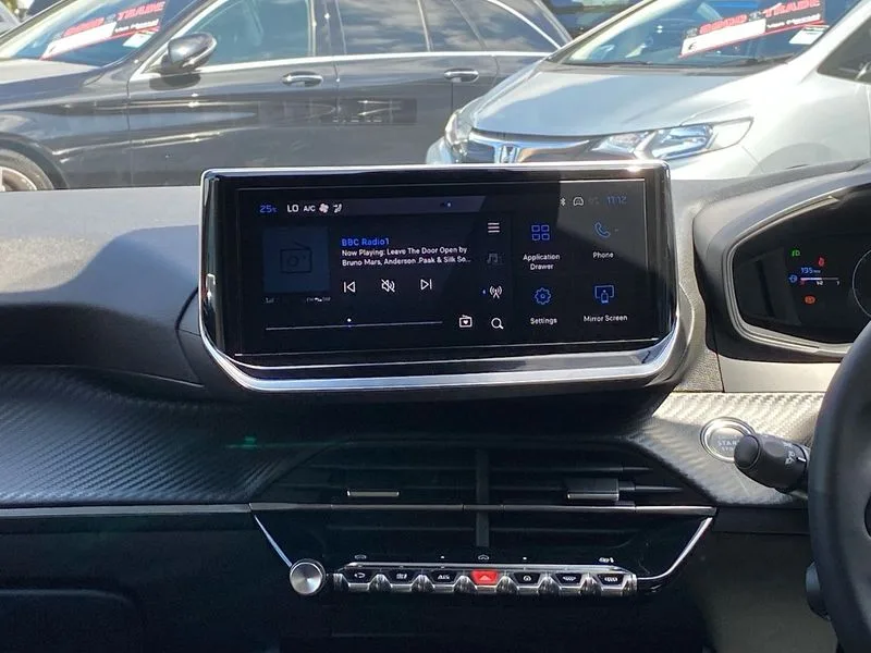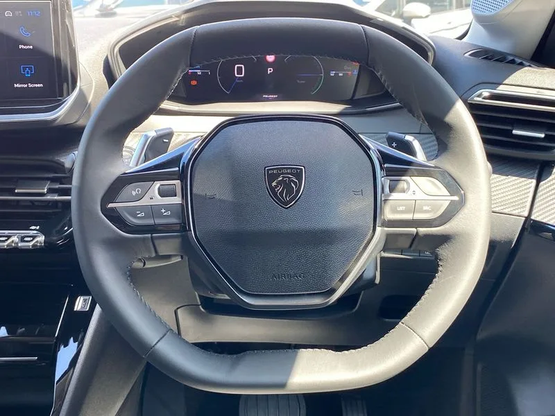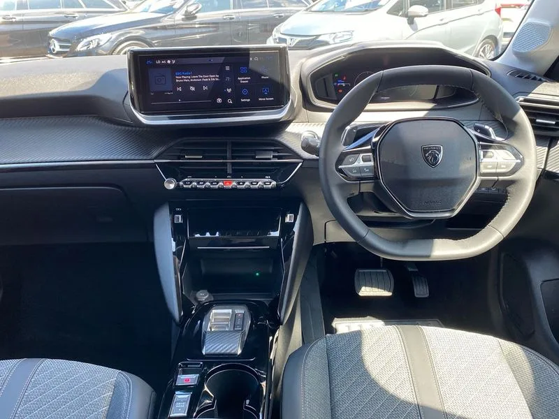 • Bluetooth telephone facility • Drive mode select (Eco/Normal/Sport) • Driver attention warning • Emergency call service • Exterior temperature indicator with ice warning • Front and rear parking sensors • Gear lever - e-Toggle • Multi function trip computer • PEUGEOT i-Cockpit with 10" configurable colour head up instrument panel • PEUGEOT i-Cockpit with 10" HD capacitive colour touchscreen • PEUGEOT i-Cockpit with compact steering wheel • PEUGEOT SOS and assistance • Push button start • Smart phone docking station • Speed limit recognition and recommendation • Start/stop system • Wireless mirror screen with apple carplay and android auto • 6 Speakers - 2 tweeters and 4 door speakers • DAB Digital radio • USB-A socket (x1) and USB-C socket (x1) - rear • USB-C data and charge socket and USB-C charge socket in front • Voice recognition for radio, navigation and telephony features • 2 X Rear number plate lights • Acoustic windscreen • Antenna - Gloss Black 'fin' design • Automatic hazard light activation upon heavy brake application • Body coloured exterior door handles • Dark tinted rear side and tailgate windows • Diamond black rear spoiler • Eco LED headlights with electric height adjustment • Electric heated and power folding door mirrors with courtesy floor lighting • Electrochrome rear view mirror • Gloss black B pillar • Gloss black door mirror shells • Gloss black rear cluster connecting strip • Grained black front bumper grille and chrome accents • Headlights left on audible warning • LED 3 claw horizontal rear lighting signature with daylight function and LED brake lights • LED daytime running lights with distinctive 3 claw signature • LED third brake light • Model designation badges front and rear in basalt grey • One touch electric front/rear windows with pinch protection • Rear bumper with gloss black finish • Rear reversing lights • Rear side wing doors • Rear windscreen wiper triggered automatically in reverse gear • Tailgate with heated rear windscreen and wiper blade • Variable front intermittent wipers • 1/3 to 2/3 split folding rear seats • 12V socket • 3 seat bench in 2nd row • Automatic mono zone climate control air condition • Boot lighting • Driver and front passenger comfort seats • Driver and front passenger seat manual adjustment in longitudinal and back rest angle • Driver seat mechanical height adjustment • Electric power steering with reach and rake adjustable steering column • Front centre armrest with storage compartment • Front interior light with 2 reading spotlights • High centre console with 2 cup holders • Map pockets on the backs of the front seats • Multifunction leather steering wheel • Piano keys gloss black plated toggle switches to access main functions of the vehicle • Quartz contrast stitching to front and rear door armrest • Roof lining - light grey • Seatbelt unfastened on the move audible and visual alert for front and rear seats • Single front passenger seat • Tri material cloth/leather upholstery • Visibility pack - 208 • 2x Isofix child seat fitting on outer rear seats • 3 rear 3 point seatbelts • ABS (Anti-lock Braking System) with EBD (Electronic Brakeforce Distribution) and EBA (Emergency Braking Assistance) • Child locking functionality on rear doors • Driver and front passenger airbag with passenger airbag deactivation • Driver/front passenger side airbags • Electric parking brake • ESP with Hill Assist • Front and rear curtain airbags • Front and rear disc brakes • Front optimised safety headrests and 3 x rear retractable headrests with height adjustable • Front three point retractable seatbelts with force limiters • Remote plip(x2) for locking, unlocking, includes emergency key blade • Tyre pressure monitoring system • Acoustic vehicle alert system (AVAS) • Alarm - Connected, volumetric ,perimetric, anti lift sensor • Automatic door locking when moving off • Deadlock • Electronic code immobiliser • General safety regulation • Remote central locking • Carbon effect dashboard facia trim • 16" Noma two tone diamond cut alloy wheels