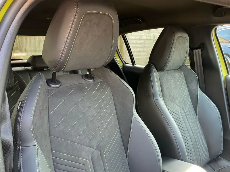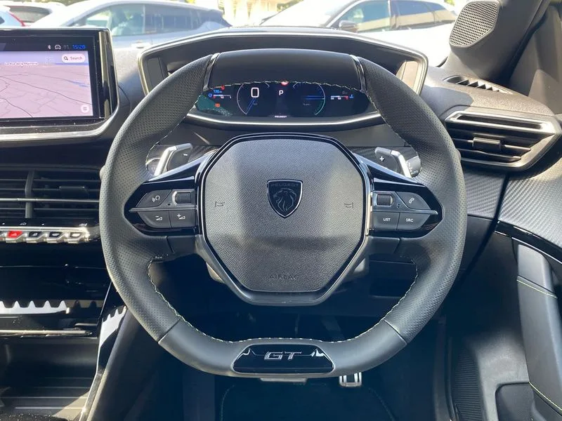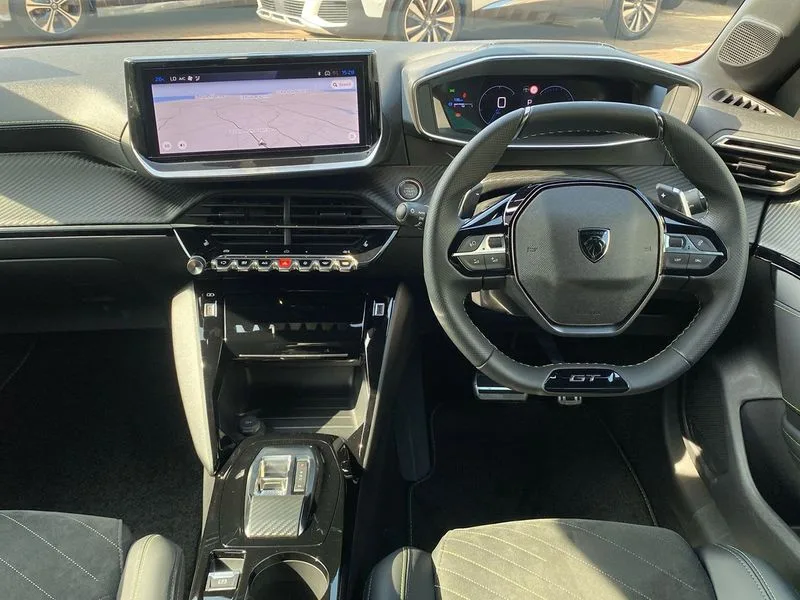 • Bluetooth telephone facility • Drive mode select (Eco/Normal/Sport) • Driver attention warning • Emergency call service • Exterior temperature indicator with ice warning • Front and rear parking sensors • Multi function trip computer • PEUGEOT i-Cockpit with 10" configurable 3D colour head up instrument panel • PEUGEOT i-Cockpit with 10" HD capacitive colour touchscreen • PEUGEOT i-Cockpit with compact steering wheel • PEUGEOT SOS and assistance • Push button start • Smart phone docking station • Speed limit recognition and recommendation • Start/stop system • Wireless mirror screen with apple carplay and android auto • 6 Speakers - 2 tweeters and 4 door speakers • DAB Digital radio • USB-A socket (x1) and USB-C socket (x1) - rear • USB-C data and charge socket and USB-C charge socket in front • Voice recognition for radio, navigation and telephony features • 2 X Rear number plate lights • Acoustic windscreen • Antenna - Gloss Black 'fin' design • Automatic hazard light activation upon heavy brake application • Body coloured exterior door handles • Dark tinted rear side and tailgate windows • Diamond black rear spoiler (roof) • Door sills protection with PEUGEOT signature lettering • Electric heated and power folding door mirrors with courtesy floor lighting • Electrochrome rear view mirror • Full LED headlights with automatic height adjustment and PEUGEOT smartbeam assist • Gloss black B pillar • Gloss black door mirror shells • Gloss black front bumper grille with body colour accents • Gloss black rear cluster connecting strip • Gloss black wheel arch extensions • GT model designation badging on C pillar • Headlights left on audible warning • LED 3 claw horizontal rear lighting signature (with daylight function) and LED brake lights, indicators and reversing lights • LED daytime running lights with distinctive 3 claw signature • LED front indicators • LED third brake light • Matt black window weatherstrips • Model designation badges front and rear • One touch electric front/rear windows with pinch protection • Rear bumper with gloss black finish • Rear reversing lights • Rear side wing doors • Rear windscreen wiper triggered automatically in reverse gear • Tailgate with heated rear windscreen and wiper blade • Variable front intermittent wipers • 1/3 to 2/3 split folding rear seats • 12V socket • 3 seat bench in 2nd row • 8 Colour personalisable ambient lighting • Adamite green contrast stitching to front and rear armrest, front centre console, dashboard facia • Alcantara upholstery with 3 level heated front seats + Driver seat multi-way electric adjust with lumbar support and multi-point massage function • Aluminium pedals • Automatic mono zone climate control air condition • Boot lighting • Driver and front passenger dynamic seats • Driver and front passenger seat manual adjustment in longitudinal and back rest angle • Driver and front passenger seat mechanical height adjustment • Driver and passenger sun visors, front footwells and central storage with LED lighting • Electric power steering with reach and rake adjustable steering column • Front centre armrest with storage compartment • Front LED interior light, front LED reading spotlights(x2), rear manual push ECO LED reading spotlight(x2) • High centre console with 2 cup holders • Luxury carpet mats • Map pockets on the backs of the front seats • Multi function full grain perforated leather steering wheel with adamite green stitch detail and 'GT' emblem • Piano keys gloss black plated toggle switches to access main functions of the vehicle • Roof lining - Mistral black • Seatbelt unfastened on the move audible and visual alert for front and rear seats • Single front passenger seat • Drive assist pack plus - 208 • Navigation and vision pack with wireless charging - 208 • Visibility pack - 208 • 2x Isofix child seat fitting on outer rear seats • 3 rear 3 point seatbelts • ABS (Anti-lock Braking System) with EBD (Electronic Brakeforce Distribution) and EBA (Emergency Braking Assistance) • Active safety brake with night function/cyclists/pedestrians • Child locking functionality on rear doors • Driver and front passenger airbag with passenger airbag deactivation • Driver/front passenger side airbags • Electric parking brake • ESP with Hill Assist • Front and rear curtain airbags • Front and rear disc brakes • Front optimised safety headrests and 3 x rear retractable headrests with height adjustable • Front three point retractable seatbelts with force limiters • Remote plip(x2) for locking, unlocking, includes emergency key blade • Tyre pressure monitoring system • Acoustic vehicle alert system (AVAS) • Alarm - Connected, volumetric ,perimetric, anti lift sensor • Automatic door locking when moving off • Deadlock • Electronic code immobiliser • General safety regulation • Peugeot Open and Go System • Remote central locking • Carbon effect dashboard facia trim • 17" Yanaka two tone diamond cut alloy wheels wheels includes gloss black inserts • Space saver spare wheel