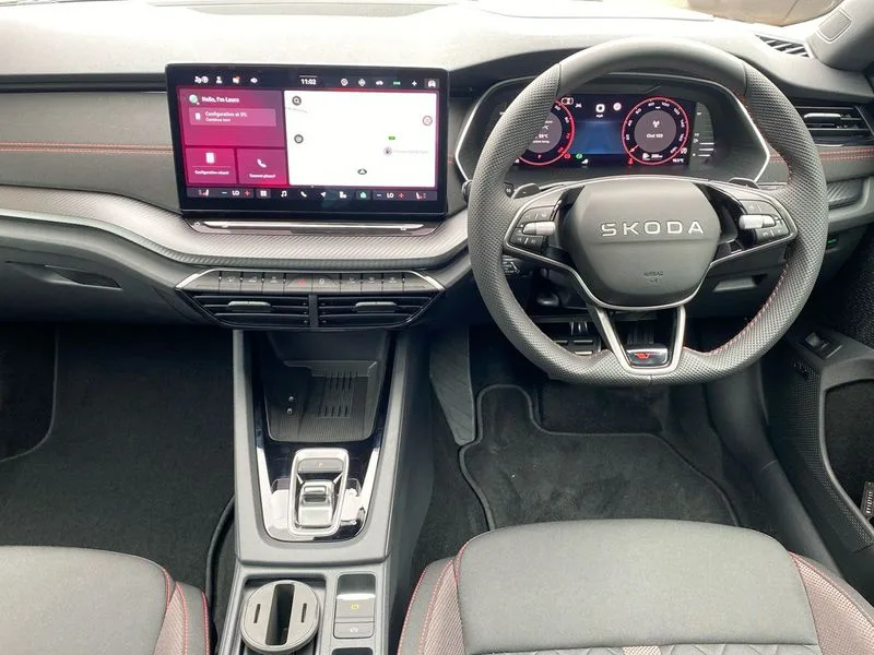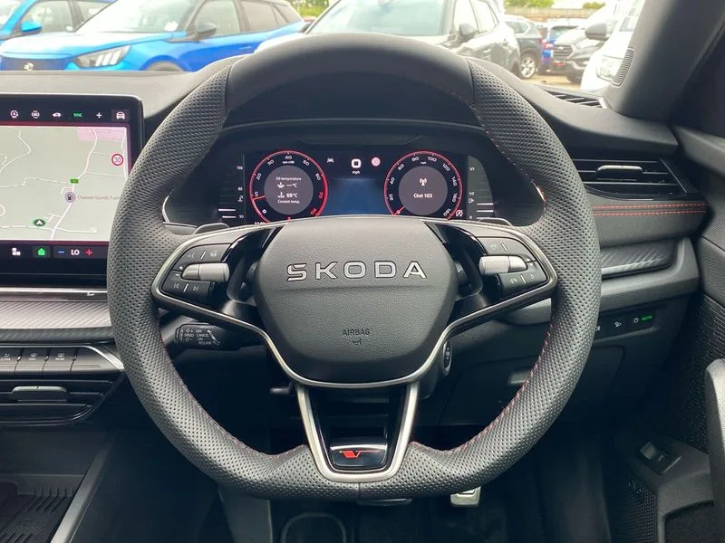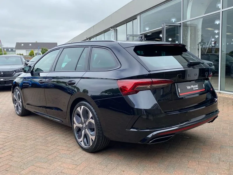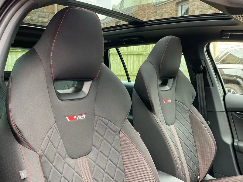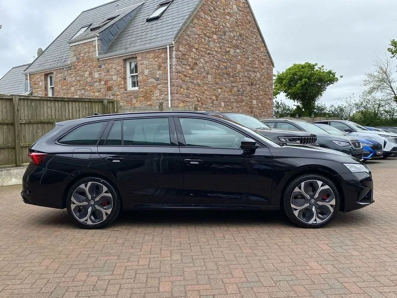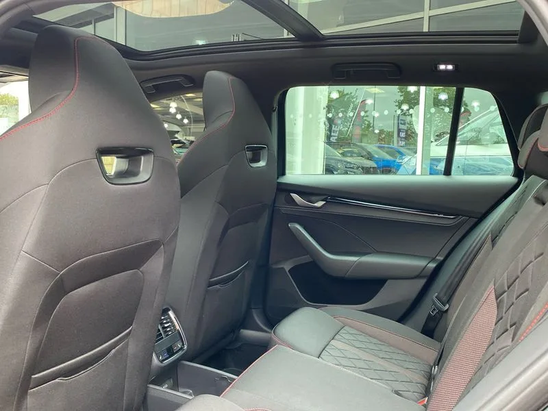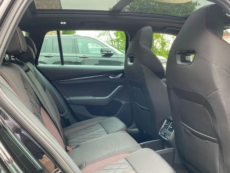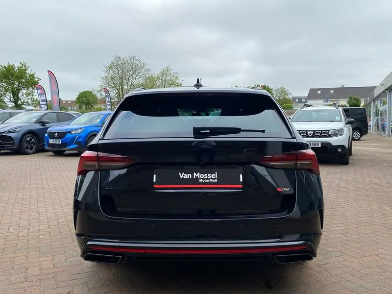 • 1x USB Typc C port in rear view mirror • 4x USB Type C ports - 2x in front centre console and 2x in rear (45W) • Drive mode selection • Driver fatigue sensor • eCall emergency system • Electronic engine sound • Front assist system • Progressive dynamic steering • Traffic sign recognition • Turn Assist • Virtual Cockpit - 10.25" digital display • Voice control system • Wireless charging (15W) with cooling function • Wireless SmartLink for Apple CarPlay and Android Auto • 13" touchscreen display with navigation • DAB Digital radio • Aero front windscreen wipers with intermittent function • Auto dimming rear view mirror • Black sport exhaust pipes • Body colour bumpers • Body colour door handles • Bumpers with rear red reflector strip • Electric front and rear windows • Exterior gloss black sports styling including front grille, window surrounds, door mirrors and badging • Gloss black diffuser • Gloss black roof rails • Gloss black spoiler • Heated rear windscreen • High beam control • High level third brake light • Ice scraper in fuel cap • LED daytime running lights • Logo projection in front doors • Rain and light sensors • Rear fog light on one side and reversing lights on both sides • Rear privacy glass • Rear side wing doors • Rear window wiper • Unique vRS bumpers and exterior styling • 12 volt socket in boot • 2x umbrella in door • 3 rear headrests • 3 seat bench in 2nd row • 4 foldable roof handles • Aluminium pedals • Front head restraints • Front sport seats • Heated front seats • Illuminated glovebox • Interior door handles in dark chrome • Jumbo Box storage • Luggage compartment lighting x2 lights • Mechanical rear seat release from boot • Single front passenger seat • Steering wheel in black leather with black stitching • Storage compartments in left and right of boot • Sun visors with mirrors • Sunglasses storage • Three spoke leather sports multifunction steering wheel with paddles • Ticket holder • Unsplit rear bench seat, split folding backrest with centre armrest with cupholder • Waste bin in door panel • Electronically controlled limited slip differential • vRS suspension • Comfort package - Octavia Estate • Family package - Octavia • Light and view package plus - Octavia • vRS Design Selection pack - Octavia • 3x3 point rear seat belts • Alarm with interior monitoring, tilt sensor and back up horn • Curtain airbags and front side airbags • Driver and front passenger airbags • Drivers knee airbag • Electronic parking brake • ESC including ABS, EBV, MSR, ASR, EDS, HBA, DSR • Front central airbag • Hill hold assist • ISOFIX on front passenger seat and outer rear seats • Passenger airbag deactivate switch • Red brake calipers • Three point seat belts in front and rear • Two tone horn • Tyre pressure monitor • Visual and acoustic seat belt reminder • Warning reflectors in front door • Anti-theft wheel bolts • Keyless entry and start/stop • Remote central locking • Gloss black air vent surrounds • 19" Elias anthracite alloy wheels