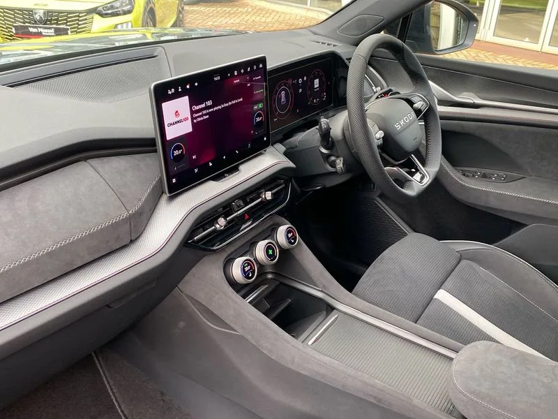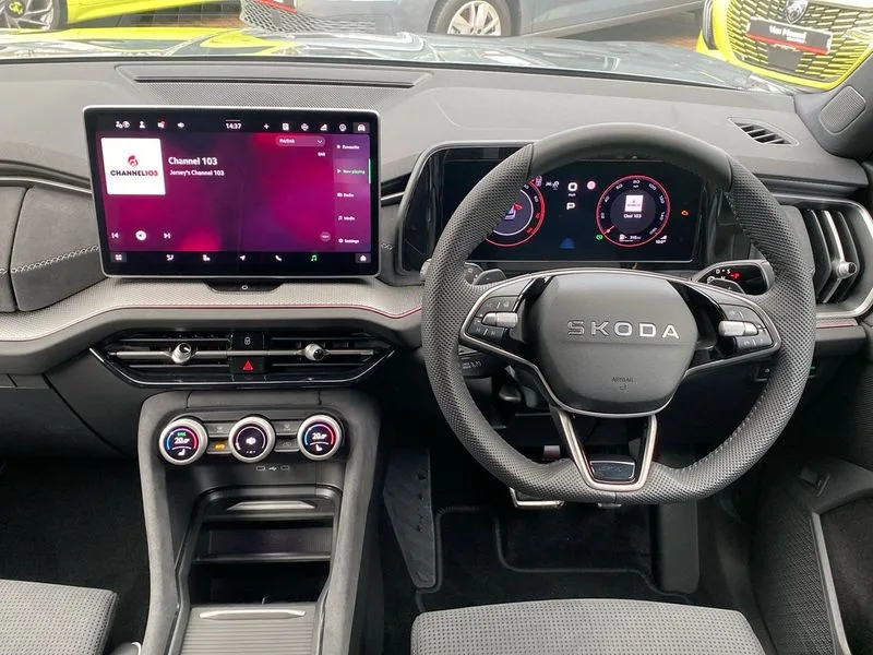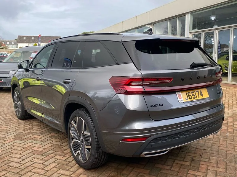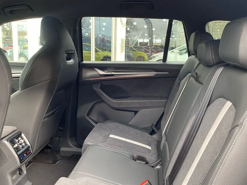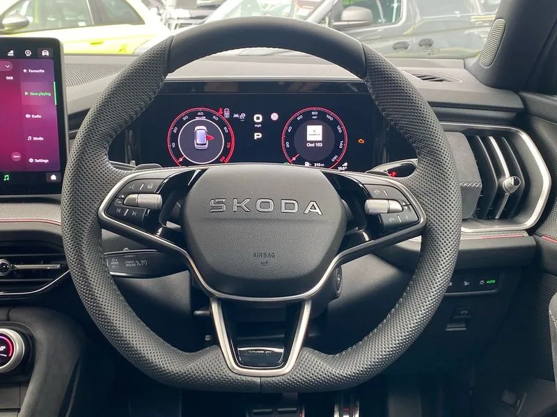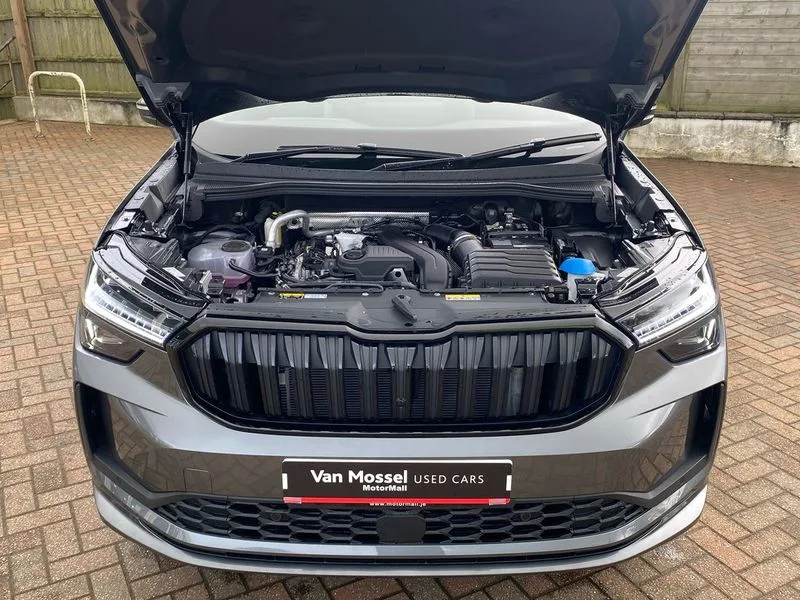 • 13" satellite navigation touchscreen display • Blind spot detection with door exit warning • Bluetooth system • ChatGPT functionality • Driver alert - Fatigue and drowsiness monitor • Dry display cleaner • Emergency call • Front and rear parking sensors • Front cross traffic assist • Lane assist • PAS • Rear traffic assist • Tailgate unlocking from outside • Traffic sign recognition • USB C Port x 2 in front centre console • Virtual Cockpit - 10.25" digital display • Voice control system • Wireless charging for two smartphones (15W) with cooling function • Wireless SmartLink for Apple CarPlay and Android Auto • 2x USB-C in the rear • DAB Digital radio • Aero front windscreen wipers with intermittent function • Auto dimming rear view mirror • AWL (all weather lighting) and all weather light with cornering function • Black diffuser and decorative tailpipe with a unique dark chrome finish • Black roof rails • Black sports styling including front grille and window surrounds • Black wheel arch surrounds • Body colour door handles • Cornering light and poor weather light • Electric folding /adjustable/separted heated/folding door mirrors, auto dimming with boarding sports and memory function • Electric front and rear windows • Exterior black decorative trims • Front and rear sports bumpers including lower rear chrome strip • Front grille with horizontal light strip • Gloss black door mirrors • Gloss black window frame and D pillar • Heat insulating glass in windshield • Heated rear window • Ice scraper in fuel tank cap • LED daytime running lights • LED matrix headlights with AFS and LED fog lights • LED rear light with welcome effect and dynamic turn signals • LED third brake light in rear spoiler • Light assistant with automatic headlight control and coming home feature • Logo projection in door mirrors • Multiple matrix beam • Privacy glass • Rear roof spoiler • Rear side wing doors • Rear window wiper • Red decorative strip between rear LED lights • Safety reflectors on front and rear doors • Sportline badge on front fenders • Tailgate lettering in Black • Unique dark chrome design logo on alloy wheels • Window control switches with black trim • Windscreen wipers with rain sensor • Without engine designation • 1.5l bottle holder points in all door • 1x centre rear reading light • 2 seat bench in 3rd row • 3 configurable smart dials with 32mm coloured display • 3 seat bench in 2nd row • 3 spoke multi-function heated leather sports steering wheel with paddle shift • 4 foldable roof handles with rear coat hooks • Aluminium pedals • Ambient interior lighting - Dashboard, front-door stowage compartments, front and rear door panels and footwell lighting • Automatic gear selector on steering column • Chrome interior door handles • Driver/front passenger reading lights • Fabric headlining • Fixed bench 40:60:40 split folding backrests • Front and rear floor mats • Front centre armrest with jumbo box storage compartment, cup holder and 12V socket • Front sport seats • Height adjustable front headrests • Interior black decorative trims • Isofix child seat fittings in outer middle row rear seats and front passenger with top tether • Manually adjustable steering column • Pollen filter • Rear centre armrest with cupholders • Rear seat boot backrest release • Single front passenger seat • Skoda lettering on steering wheel • Storage pocket including mobile phone pockets on the backs of the front seats • Sunvisors with illuminated vanity mirrors • Three rear height adjustable headrests • Ticket holder on A Pillar • Tri zone climate control • Umbrella in door panel x1 made from sustainable materials • Upper and lower glovebox with card holder and coin compartment • USB C port by rear view mirror for charging only (15W) • Stop/start function • Acoustic package - Kodiaq • Performance package - Kodiaq • Sportline design selection pack - Kodiaq • Auto door release and activation of warning lights in the event of an accident • Driver and front passenger airbag with knee airbag and front passenger airbag deactivation • Electric child locks • Electronic parking brake • ESC (incl. ABS+EMD+MSR+ASR+EDL+HBA+DSR+RBS+ESBS+MCB+TSA+XDS) • Front assist with braking reaction to vehicles, pedestrians and cyclists • Front disc brakes • Fuel cut off safety device • Height adjustable front 3 point seatbelts + pretensioners • Hill hold assist • Junction assist with automatic emergency braking • Rear disc brakes • Safety vest holder in door • Seat belt reminder for all seats • Three point rear seat belts • Two tone horn • Tyre pressure monitor • Alarm with interior monitoring and tilt sensor with safe function • Anti-theft wheel bolts • Immobiliser • Remote central locking with 2 keys • 20" Rila anthacite polished alloy wheel with black matte aero covers