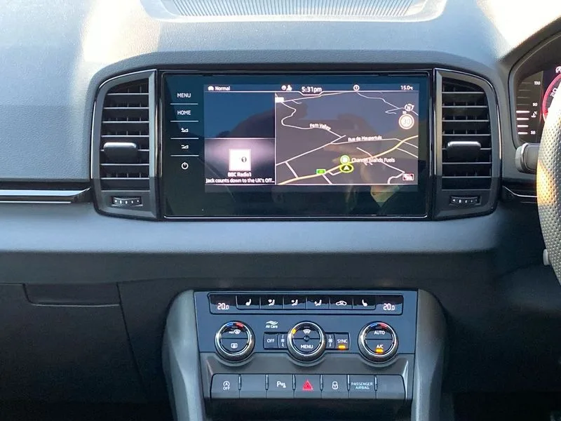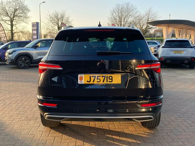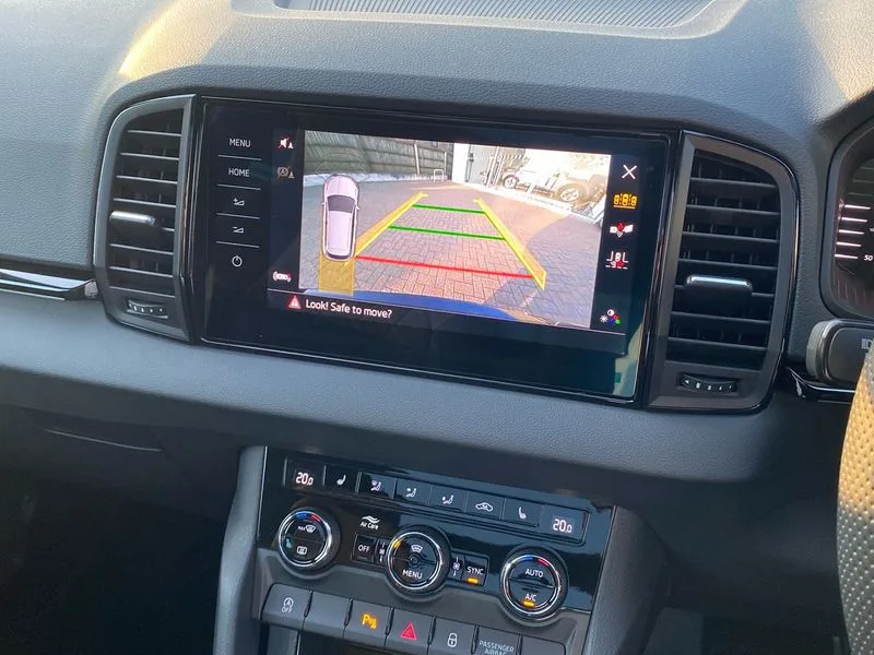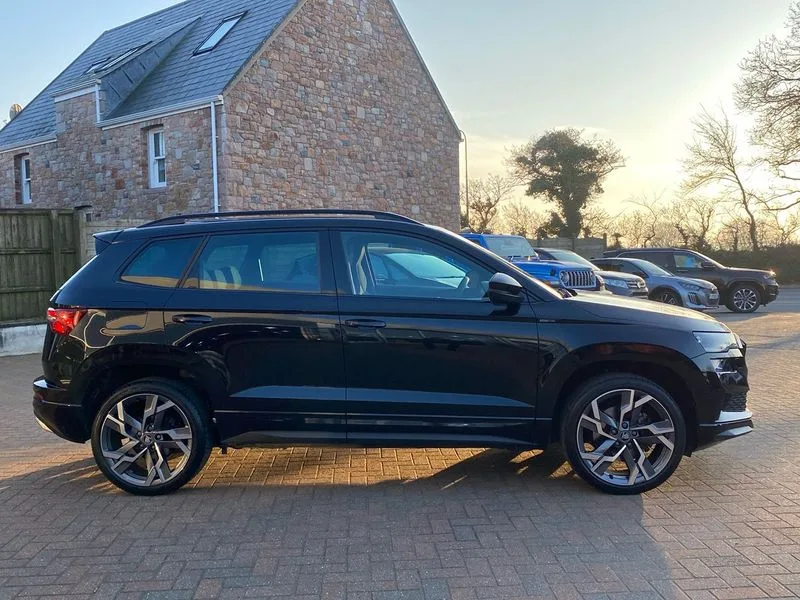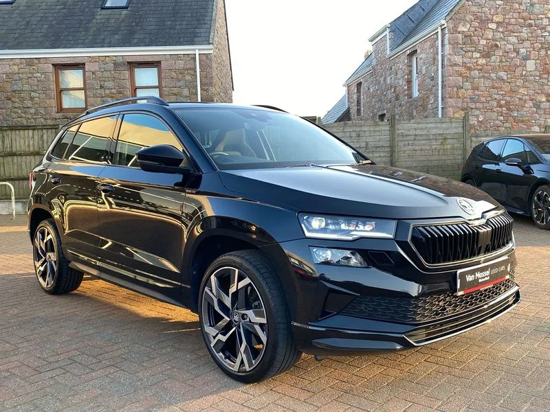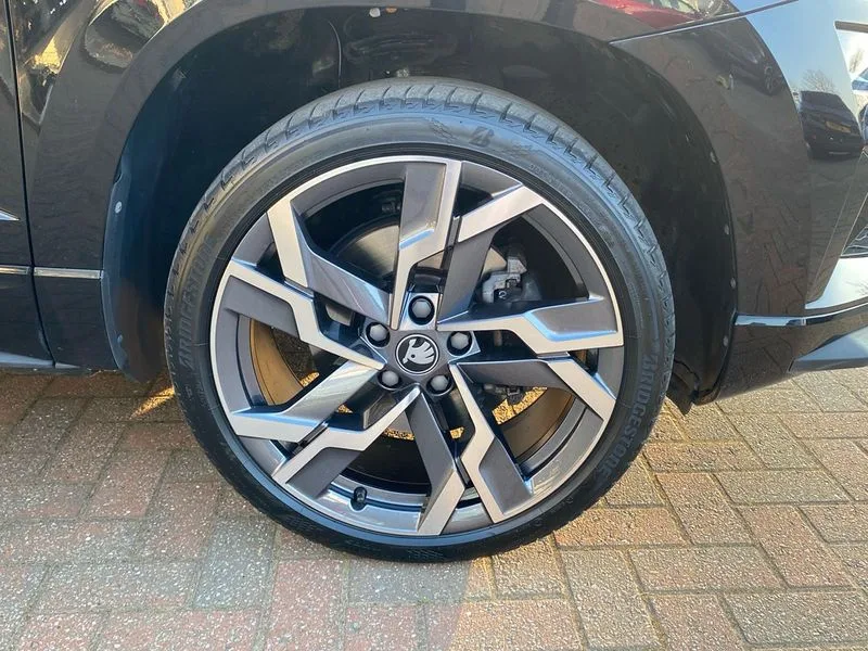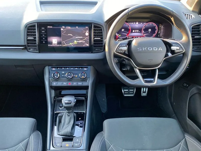 • Advanced driver attention and drowsiness monitor • Emergency services call system • Outside temperature gauge • Sensor for driver assistance systems • Service interval indicator • SmartLink wireless for Apple and wired for Android • Start/stop system with regenerative braking • Traffic sign recognition • USB C Port x 2 in front centre console • Virtual Cockpit - 10.25" digital display • Virtual pedal with electrically operated boot door • Wireless smartphone charging • DAB radio with Bluetooth • USB connection • Acoustic glass • Aero front windscreen wipers with intermittent function • Auto dimming rear view mirror with light and rain sensors • Black door mirrors • Black electric window control buttons • Black radiator grille • Black roof rails • Body colour door handles • Electric front and rear windows with child proof lock • Extended rear roof spoiler • Front door steps with SportLine logo • Heated rear windscreen • LED daytime running lights • LED rear lights with high functionality welcome effect and dynamic indicators • Light assistant (coming/leaving home/tunnel light) • Panoramic sliding sunroof • Plastic scuff plates in door apertures • Privacy glass • Protective door side sills in body colour • Rear diffuser • Rear side wing doors • Rear window wiper with washer system and intermittent control • Safety reflectors on front doors • Skoda lettering on tailgate in black • Sportline badge on front fender • Sports front and rear bumpers • Third brake light • Unique dark chrome design logo on alloy wheels • 1.5 litre bottle holders in driver and front passenger door panels • 12V socket in boot • 12v socket in front centre armrest with storage compartment and rear air vents • 2 x Tablet holder • 3 rear height adjustable headrests • 3 seat bench in 2nd row • 3 spoke sports leather heated multifunction steering wheel with DSG paddles • 4 foldable roof handles with rear coat hooks • Black floor carpet • Cargo elements in boot • Chrome inner door handles • Foldable hooks in the boot • Front head restraints • Height adjustable front three point seats belts with tensioners • Height/reach adjust steering wheel • Ice scraper • Illuminated glovebox • Illuminated luggage compartment • Isofix child seat preparation for front passenger seat • Isofix child seat preparation outer rear • Manual lumbar support for front seats • Pen holder • Pollen filter • Rear backrest release from boot • Rear boot cover • Rear package tray • Rear reading lights • Rear seats fixed folding and divided 60:40 • Rubbish bin door • Safety vest holder • Single front passenger seat • Skoda lettering on steering wheel • Sportline decorative inserts • Storage box in upper central dashboard closed • Sunvisors with illuminated vanity mirrors • Textile floor mats • Ticket holder • Titan black interior ceiling • Umbrella under passenger seat • Under passenger seat storage compartment • Columbus pack - Karoq • LED Interior lighting pack with Skoda welcome logo - Karoq • Light Pack - Karoq • Non Smokers pack • Performance pack - Karoq • Winter plus pack with heated front and rear seats - Karoq • Automatic door unlocking in case of crash • Automatic fuel cut off in case of crash • Driver airbag • Electronic parking brake with auto hold function • Emergency rear braking signal • ESC (incl. ABS+MSR+ASR+EDS+HBA+DSR+RBS+MKB) • Front side airbags • Head airbags • Hill hold control • Knee airbags • Passenger airbag with switch-off function • Pedestrian monitor • Power operated child safety locks • Seatbelt reminder signalisation and pretensioner for all seats • Three point seatbelts rear • Two tone horn • Tyre pressure monitor • Alarm with interior monitoring, back up horn and tilt sensor with safe function • Electronic engine immobiliser • Keyless entry and start/stop • Remote central locking with 2 remote folding keys • Black air vent surround • Black centre console • carbon door decor • Satin black dashboard • Satin black door trim • 19" Sagittarius anthracite alloy wheels • Anti-theft wheel bolts protection • Breakdown and tool kit