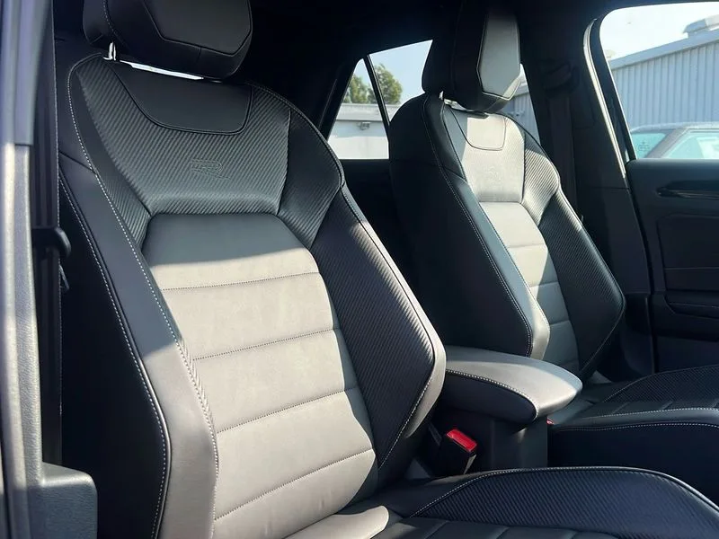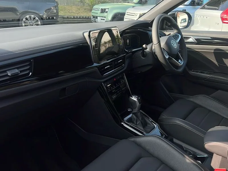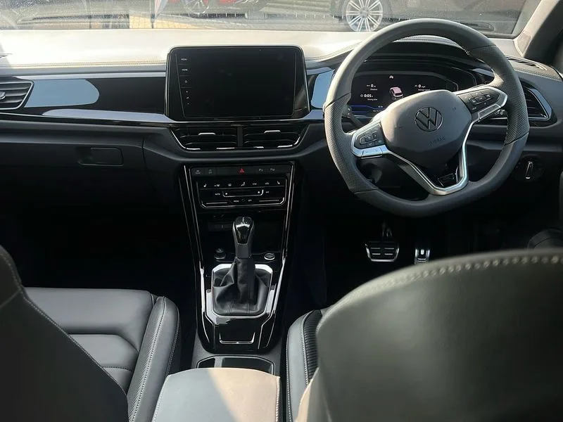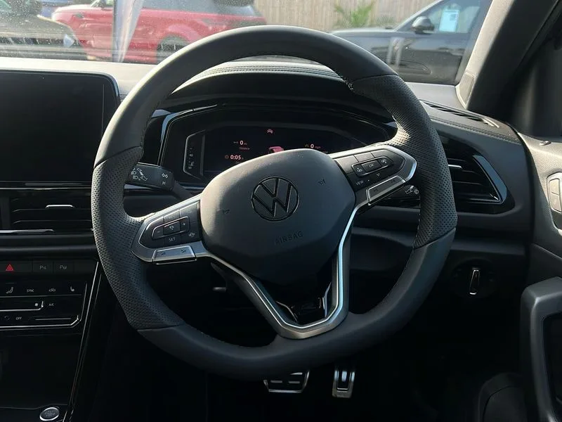 • 10.25" Digital cockpit pro • Advanced driver attention and drowsiness monitor • Emergency call service • Lane keeping system Lane Assist • Mobile phone interface • Modified key software - reduce switch off time for key status change to Long no motion • Online services • Park assist including front and rear parking sensors • Power assisted speed sensitive steering • Service interval indicator • Tailgate/trunk lid release from outside • Think blue trainer driver tips and journey analysis • Warning sound and light for front seatbelts unfastened • Wireless app connect • DAB Digital radio • Diversity antenna for FM reception • Front and rear 6 speakers • Music playback - MP3, WMA and AAC files • Premium USB cable in choice of either Apple or Android smartphone compatibility • SD card slot • Simultaneous pairing of 2 compatible mobile devices • Title and cover art display • We Connect and We Connect Plus functionality • Auto dimming interior rear view mirror • Automatic hazard lights activation under emergency braking • Automatic headlight control with LED separate daytime running lights with coming/leaving home function • Dynamic cornering light • Electrically adjustable and heated door mirrors • Extended roof spoiler • Exterior mirrors aspherical on driver side, convex on front passenger side • External USB type C socket and charging sockets • Front windscreen wiper with intermittent wipe and 4 position delay • Heated rear window • Illuminated front grille • IQ LED matrix headlights • LED 3rd brake light • LED rear number plate lights • LED rear tail lights with dynamic turn signal • Light mode for poor weather, rain, fog or snow • Power windows with comfort operation and circuit breaker • R-Line design body coloured bumpers • Rain sensor • Rear exhaust tailpipe • Rear fog light on one side and reversing lights on both sides • Rear side wing doors • Rear wash/wipe with intermittent wipe setting • Remote electrically foldable door mirrors, puddle lights and reverse activated passenger's door mirror • 12V power socket in centre console • 3 rear head restraints • 3 seat bench in 2nd row • 4 load lashing points in luggage compartment • Air care climatronic air conditoning system with active combination filter and 2-zone temperature control • Artvelours cloth upholstery • Black roof lining • Chrome plated radiator grille inserts, air vent surrounds and light switch surrounds • Door and side trim panel with leatherette insert • Drawer under drivers seat • Driver seat height adjust • Driver's seat lumbar support • Front + rear carpet mats • Front centre armrest • Front comfort sports seats • Front cupholders x 2 • Front footwell illumination • Front reading light • Front scuff plates with R Line logo • Front seat back storage pockets • Glove compartment door with light • Instrument lighting, white adjustable panel illumination • Interior ambient lighting and surround lighting • Interior light delay • Isofix child seat preparation • Leather gearshift handle • Leather wrapped multifunction steering wheel with paddle shift • Load-through provision with cup holder when folded down ('Unsplit rear seat bench, split folding backrest, with centre armrest) • Luggage compartment lighting • Non-folding front passenger seat backrest • Passenger seat height adjuster • Passenger seat lumbar support • Single front passenger seat • Stainless steel pedals • Storage compartment in left and right luggage area • Storage compartment in rear doors • Storage compartments in driver and front passenger doors • Sunvisors with illuminated vanity mirrors • Variable boot floor, height adjustable and removable • Battery regeneration during braking • Rear shock absorption chassis with increased ride height • Start/stop function with battery regeneration • Winter pack without heated windscreen washer jets - T-Roc • 3 point height adj front seatbelts + pretensioners • 3 point seatbelts in outer rear with ECE label • ABS • Child locks on rear doors • City emergency braking and pedestrian monitoring • Driver and front passenger airbag with front passenger airbag deactivation • Driver and front passenger safety-optimised head restraints • Drivers seatbelt reminder • Electronic parking brake • Electronic Stability Control (ESC) inc EDL (Electronic Differential Lock) and ASR (Traction Control) • Front and rear passengers curtain airbag system including front side airbags • Front disc brakes • Hill start assist • Predictive pedestrian protection • Rear disc brakes • Two tone horn • Tyre pressure loss indicator • Volkswagen roadside assistance • Tool kit • Trims for alloy wheels • Tyre mobility kit including compressor and sealing foam