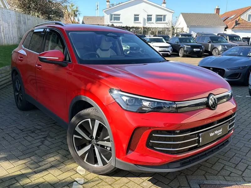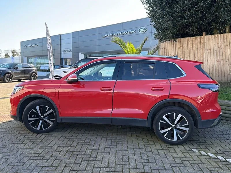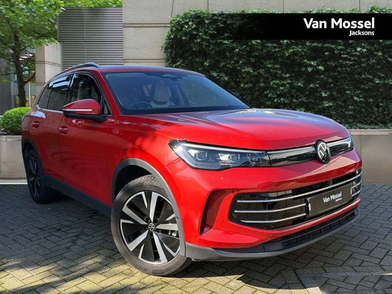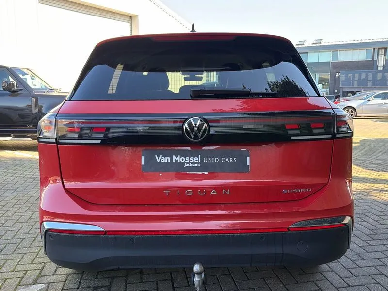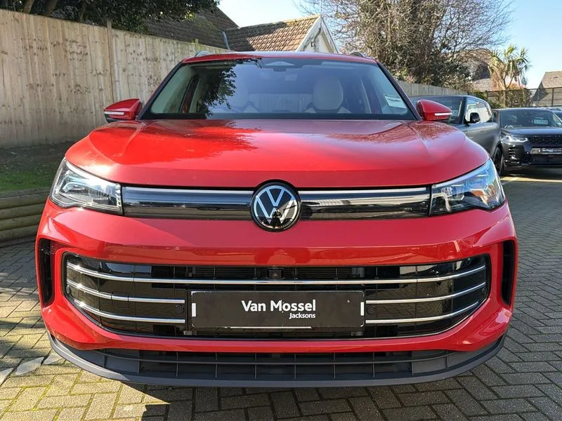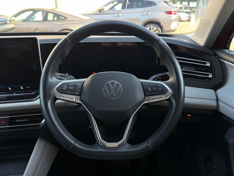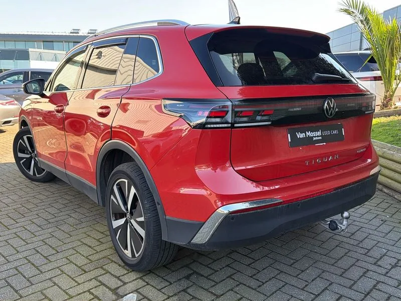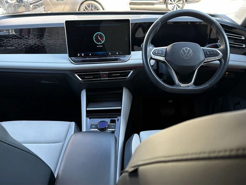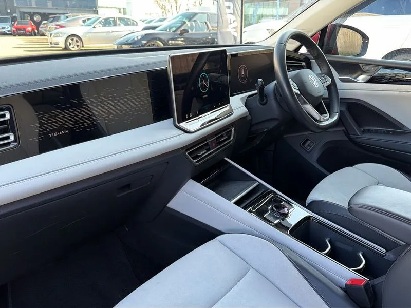 • Adaptive cruise control (ACC) • Advanced driver attention and drowsiness monitor • Bluetooth mobile phone interface • Car2X technology • Comfort drive travel assist, lane keeping system, lane assist and emergency assist • Digital Cockpit Pro - 10.25" high resolution dash display screen with customisable menus and information • Dynamic road sign display • E-Sim card for online connectivity • eCall emergency call service • Front Assist - Autonomous emergency braking with pedestrian and cyclist monitoring • Lane change system, Side assist, Rear traffic alert and Exit warning system • Multifunction front facing camera • Oncoming vehicle braking when turning including swerve support • Park assist pro with park distance control (Remote park assist) • Power assisted steering with speed sensitive • Start/stop system with regenerative braking • Warning signal and warning light for front and rear seatbelts not fastened • Wireless App-Connect • Digital radio reception (DAB) • Diversity antenna for FM reception • Air intake with Chrome trim • Ambient lighting with logo projection • Auto dimming interior rear view mirror • Automatic headlight control system • Body colored bumpers in R-Line style • Body coloured door handles • Body-coloured exterior mirror housings • Chrome moldings on the side windows • Coming/leaving home lighting function • Heat insulating glass in side and rear windows • Heated rear window • Heated windscreen washer jets • High level 3rd brake light • Illuminated door handle recesses • Illuminated lightline between headlamps • Laminated safety glass from B-pillar backwards 90% tinted • Laminated safety glass windshield • LED Day time running light • Rain sensor windscreen wipers • Rear fog light on one side, reversing light on both sides • Rear side wing doors • Rear wiper • Silver roof rails • 12V outlet in center console rear and in luggage compartment • 12V socket in centre console • 3 bench rear seats in 2nd row • Air care climatronic 3 zone air conditioning system with rear air conditioning control panel • Carpet mats, front and rear • Centre console with illuminated storage compartment with sliding cover and two drinks holders • Ceramique headlining • Chrome elements on the mirror switch and power window switches and door pulls • Door and side trim panel with leatherette insert • Door sill protectors • Front centre armrest • Interior ambient lighting with 30 colour options • ISOFIX anchors for child seats on outer rear seats and front passenger seat compatible with i-Size • Mechanical rear seat release • Power adjustable lumbar support in front • Rear bench seat, split folding, longitudinally movable and folding with load-through hatch and centre armrest • Safety optimised front head restraints • Single front passenger seat • Sports comfort seats in front • Sun visors with illuminated vanity mirrors • Three rear head restraints • Variable luggage compartment floor • Adaptive chassis control DCC pro includes driving mode selection • Charging cable Mode 3 Type 2 / 3 (16A) • Front shock absorption • Front wheel drive • Rear shock absorption • Comfort package with park assist plus and Safelock - Tiguan • Driver assistance package - Tiguan • 3 point seat belt for centre rear seats • 3 Point seat belts in front with pretensioners • 3 point seatbelts in outer rear with ECE label • Driver and front passenger airbag with front passenger airbag deactivation • Electronic parking brake with auto hold • Front and rear curtain airbags • Front and rear side airbags • Front centre airbag • Front disc brakes • Hill start assist • Manual child proof rear door locks • Rear disc brakes • Two tone horn • Warning triangle • Decorative inserts Cross in dash and front door panels • Interior door handle in matte chrome • Soul instrument panel • Tyre mobility kit including compressor and sealing foam